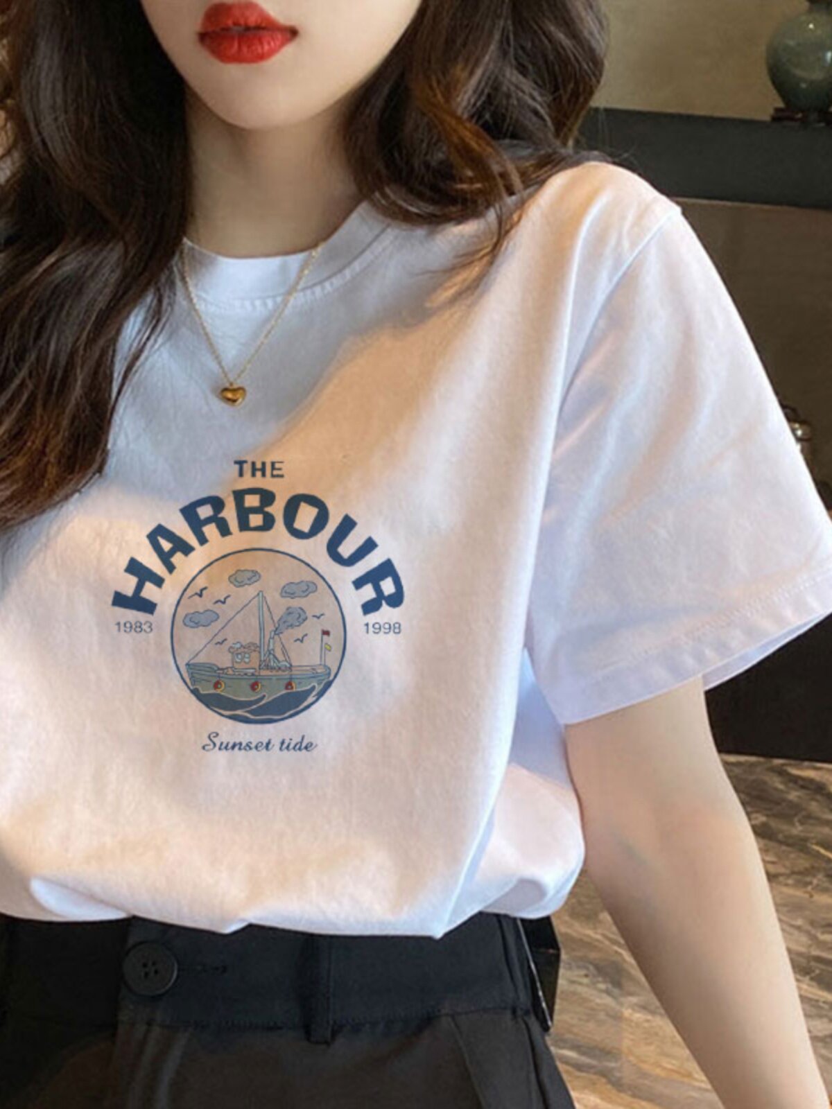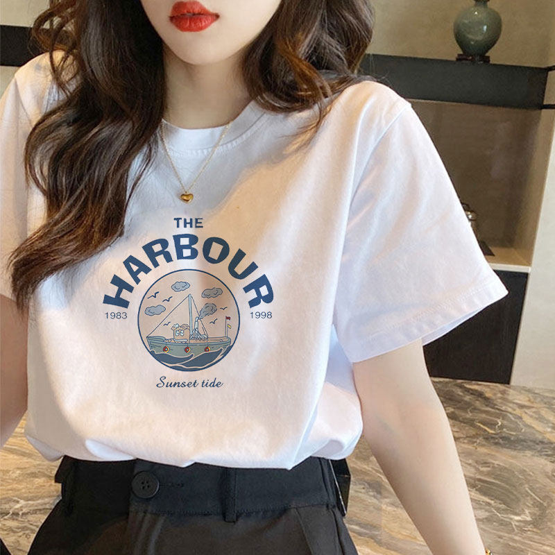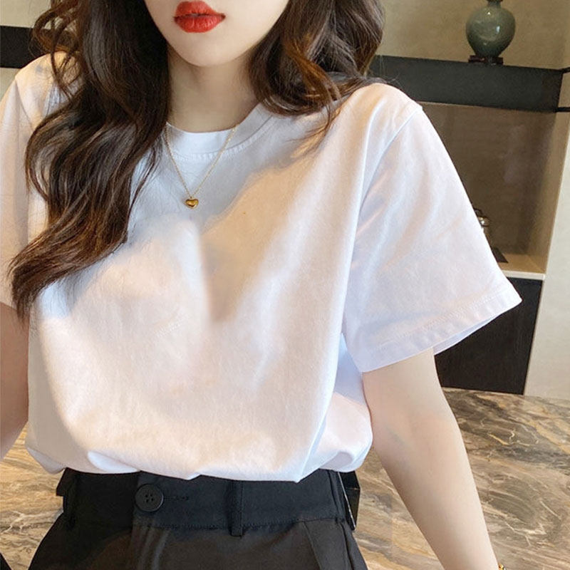 白色纯棉短袖t恤女2026新款夏季复古港味chic小众设计感正肩上衣