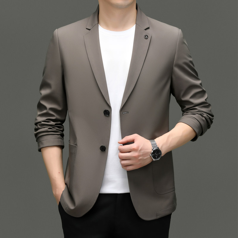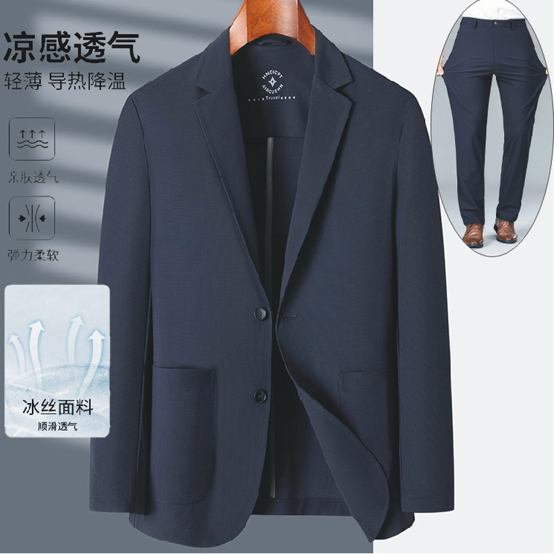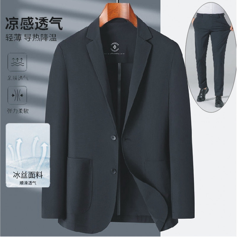 时尚男士冰丝西服 轻奢压胶无痕高档商务休闲高级感西装外套春夏