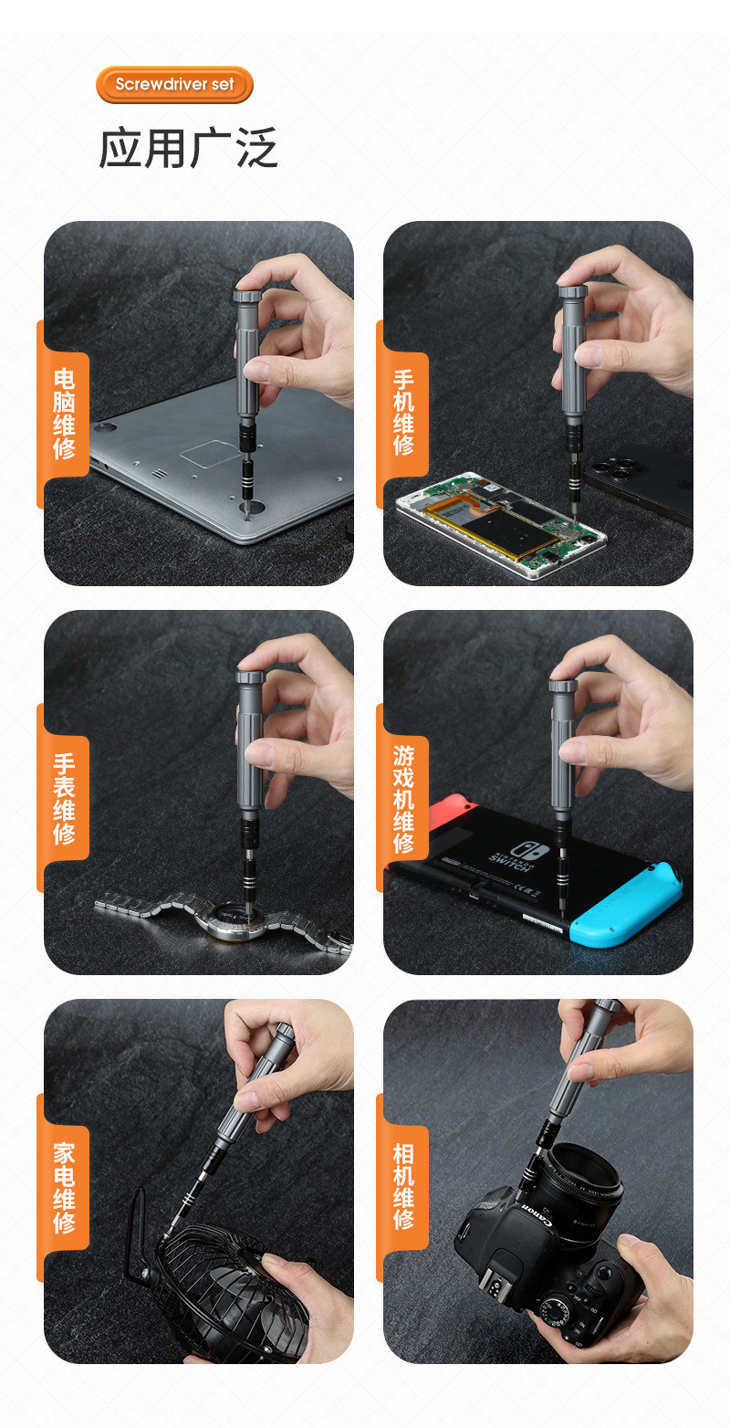 HomeProducts多功能金属手柄维修拆机手表手机电脑多功能异形精密螺丝批套装
