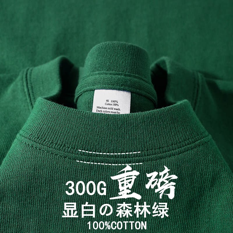 300g纯棉重磅夏季圆领美式短袖t恤男女潮牌纯色厚实不透宽松休闲