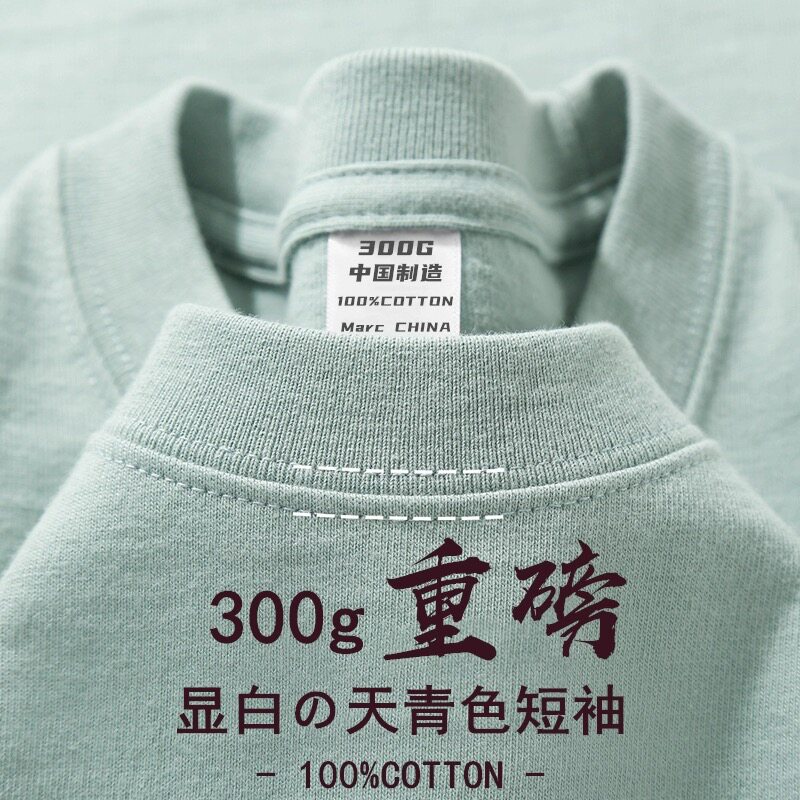 HomeProducts300g纯棉重磅夏季圆领美式短袖t恤男女潮牌纯色厚实不透宽松休闲