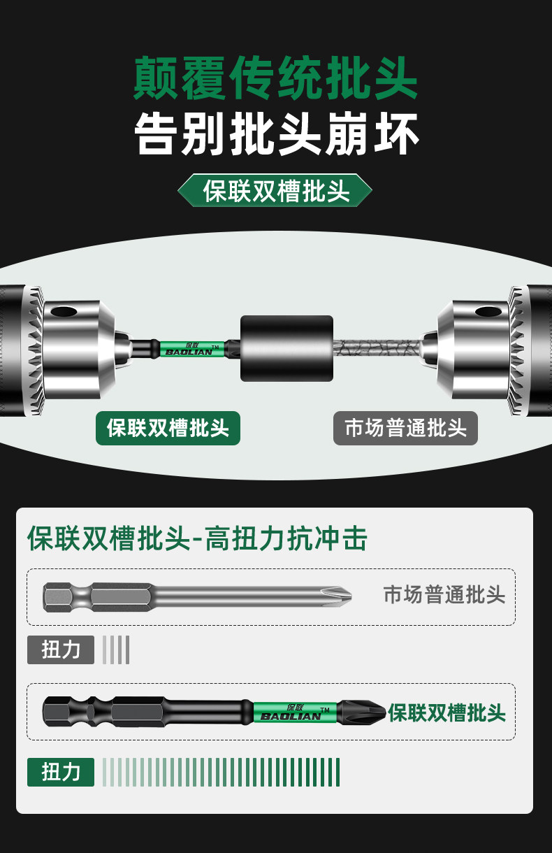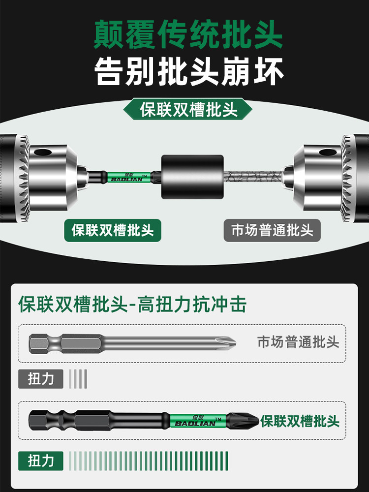 保联双槽扭力批强磁十字防滑批头手电钻电动螺丝刀磁性高硬风披头