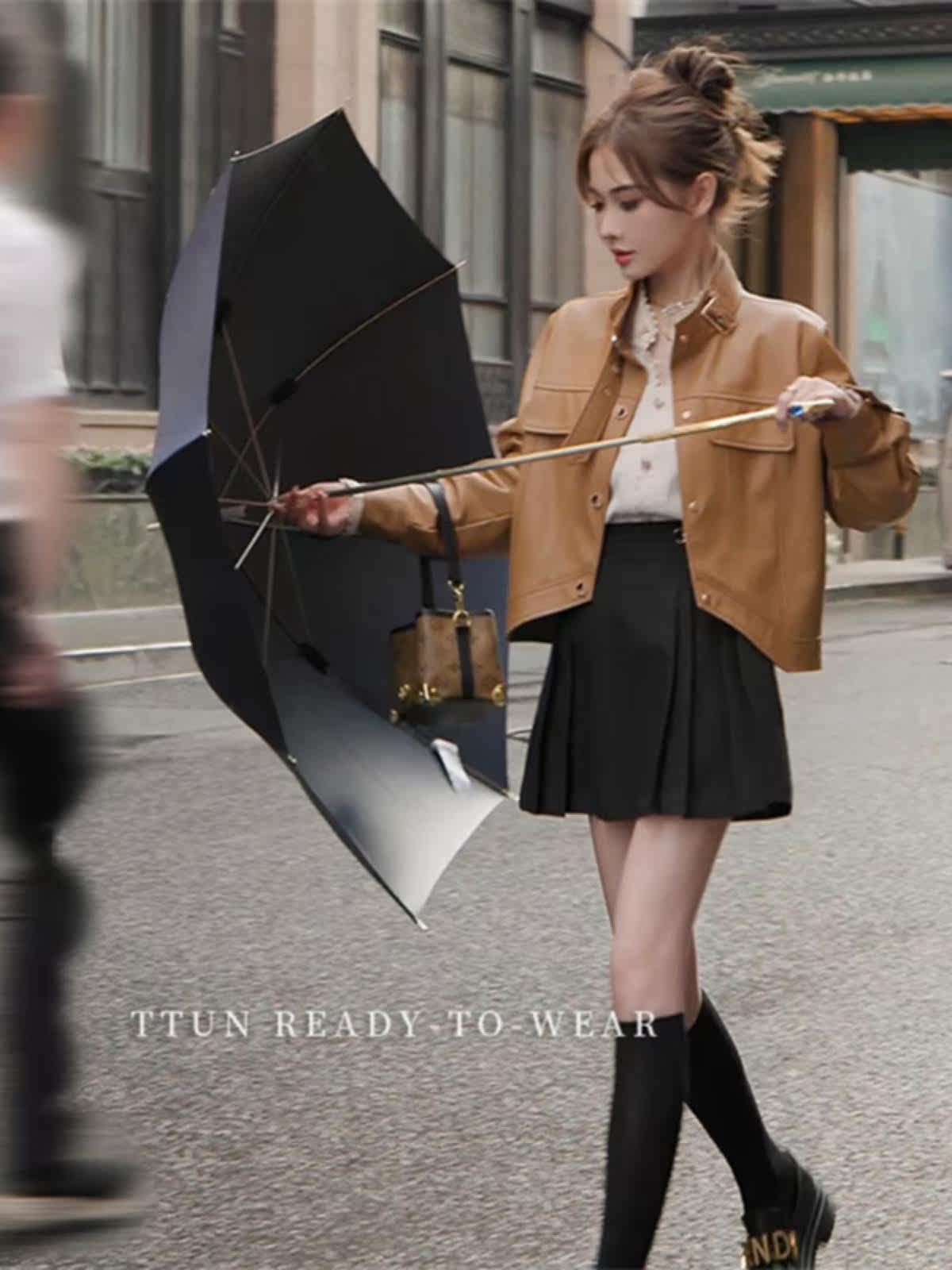 秋装气质港味复古风立领长袖皮衣女百搭短款外套时尚小众减龄开衫
