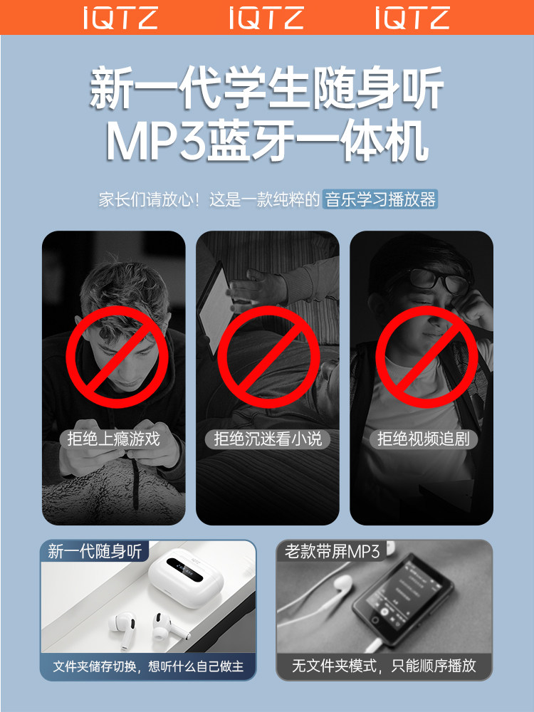 iQTZ MP3随身听学生版无线蓝牙耳机一体式听歌专用高中生小型真
