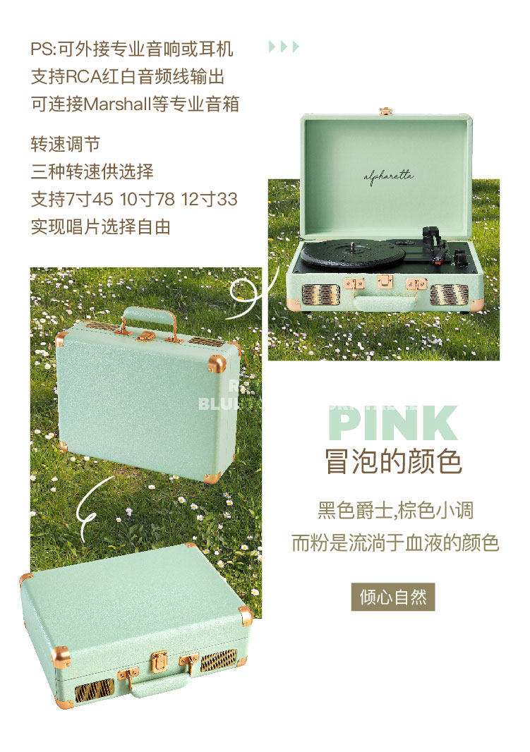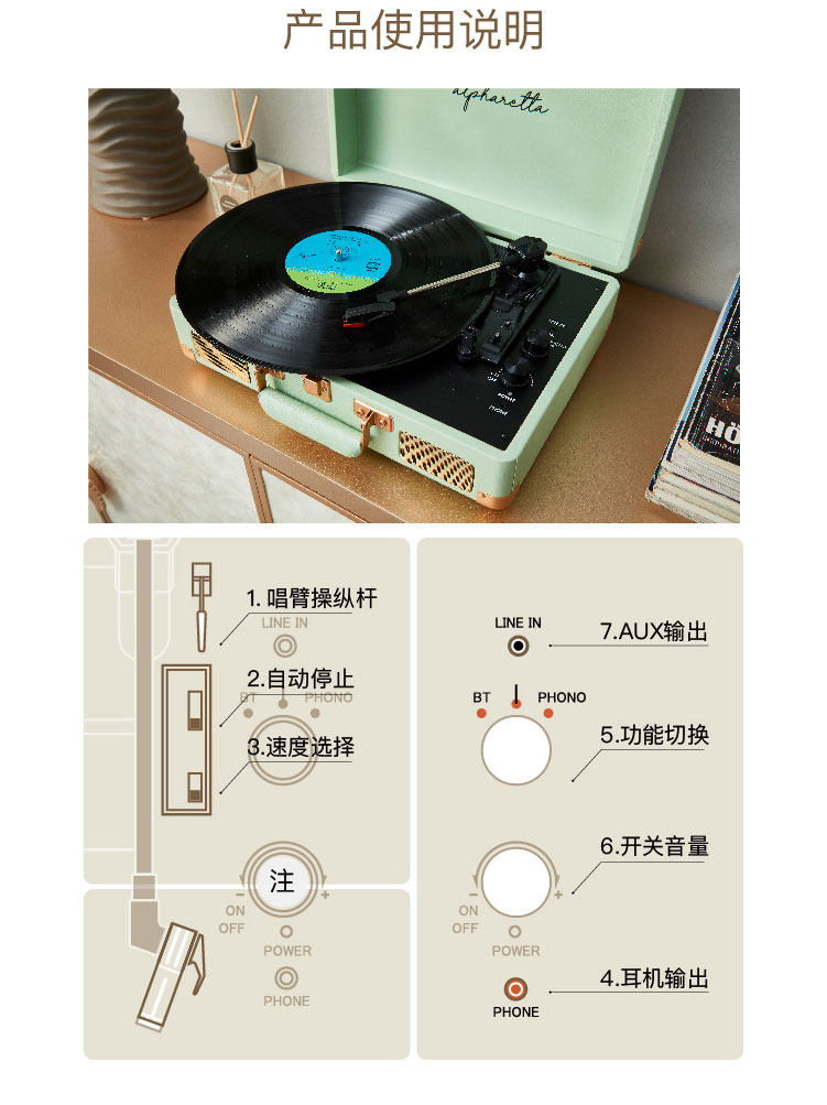 Alpharetta/艾法瑞塔黑胶唱片机唱盘便携一体式复古高级蓝牙音响