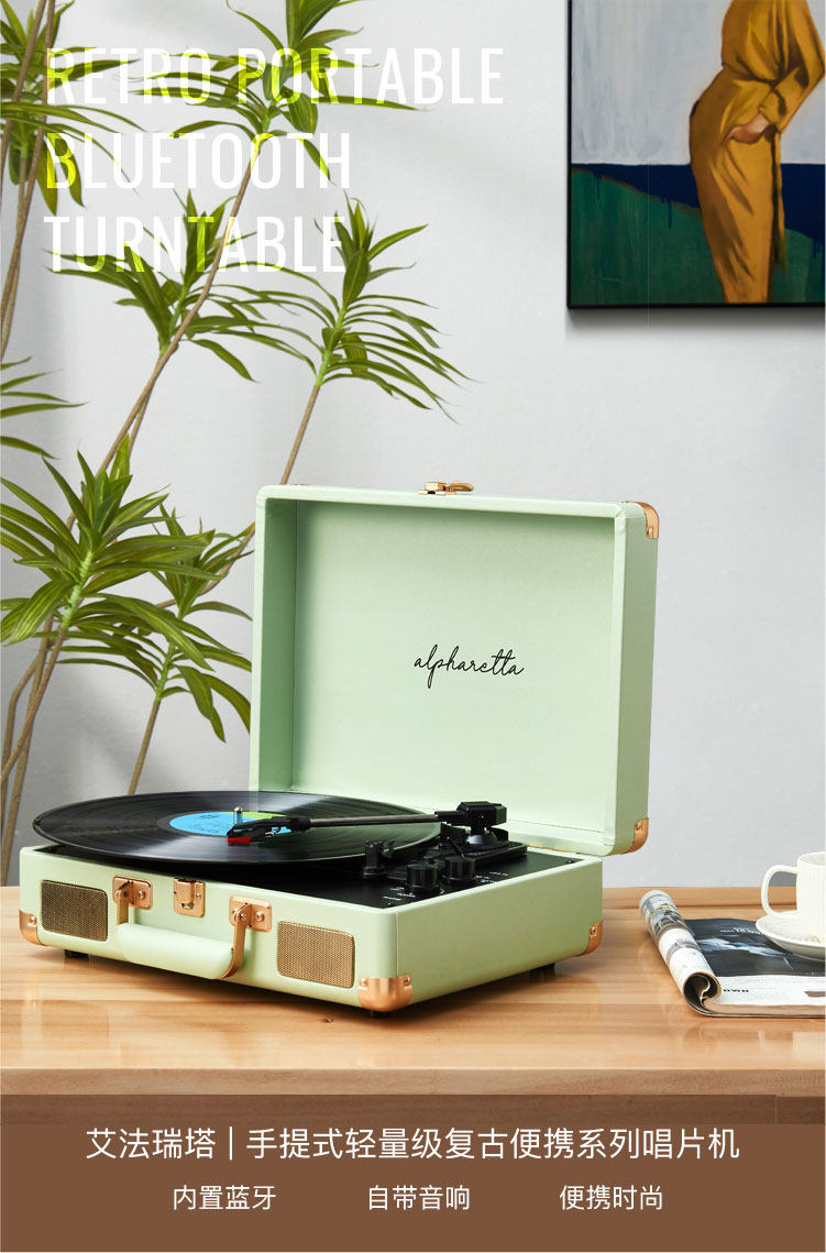 HomeProductsAlpharetta/艾法瑞塔黑胶唱片机唱盘便携一体式复古高级蓝牙音响