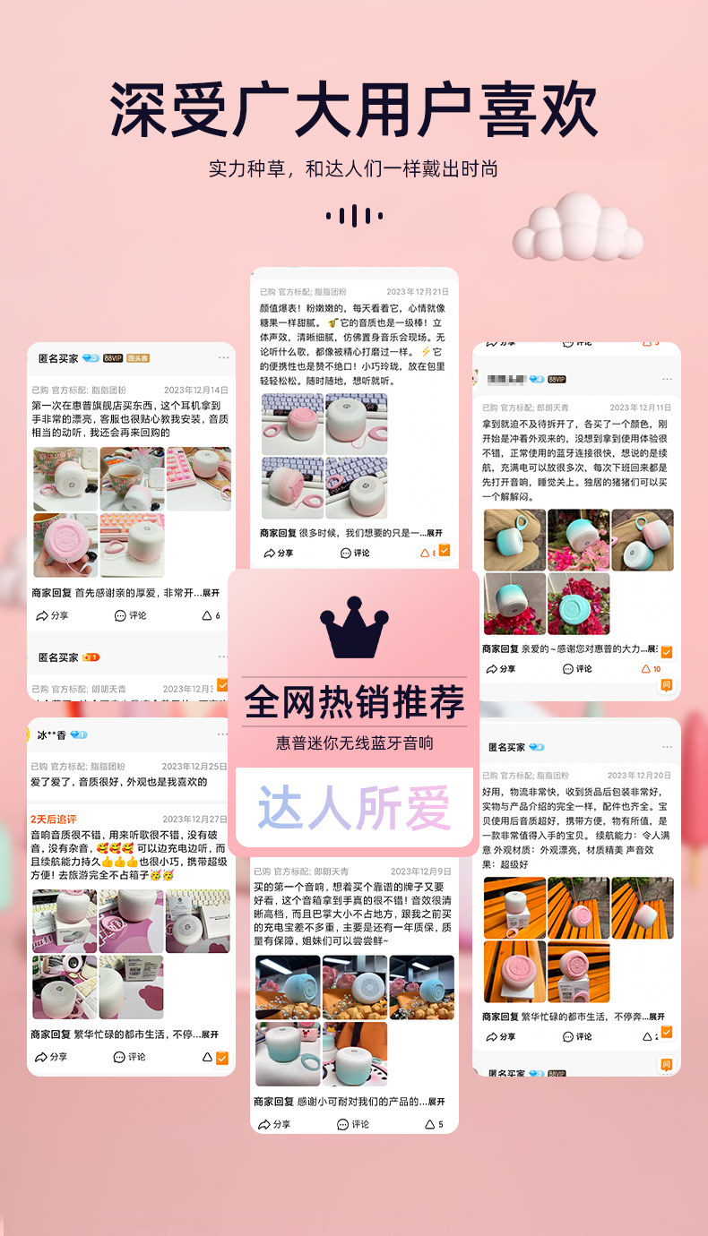 惠普音响蓝牙音箱高音质家用迷你无线音响便携式户外枕边音响礼品