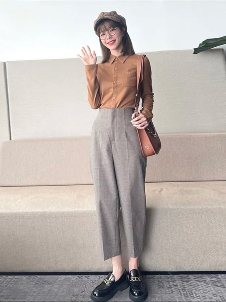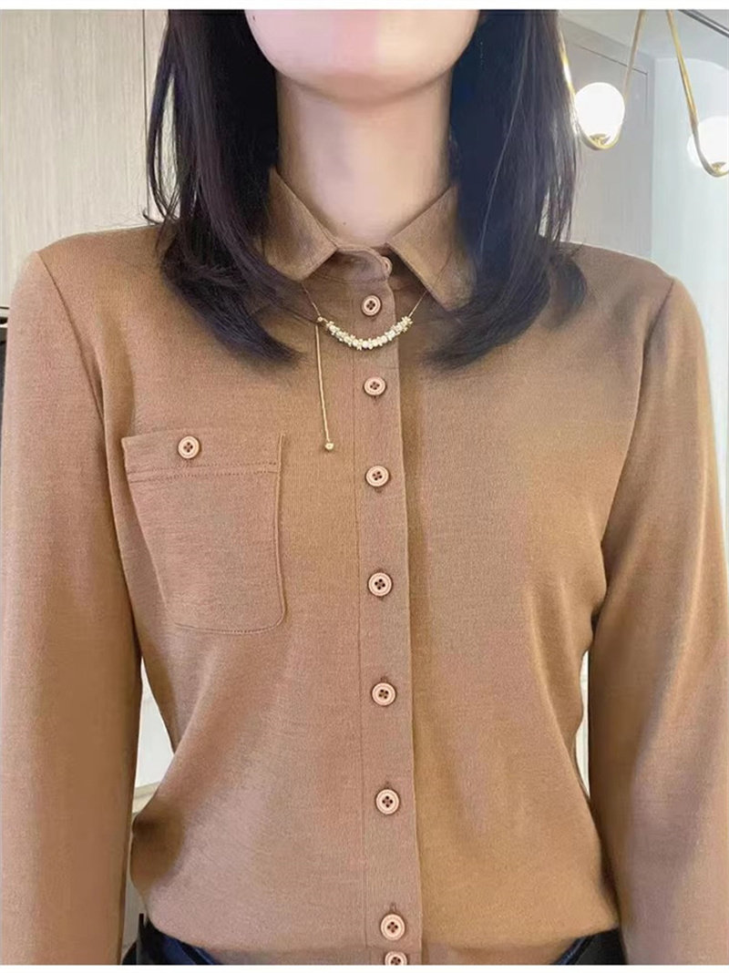 衬衫女2024年秋季新款韩版百搭时尚洋气POLO领长袖上衣打底衫衬衣