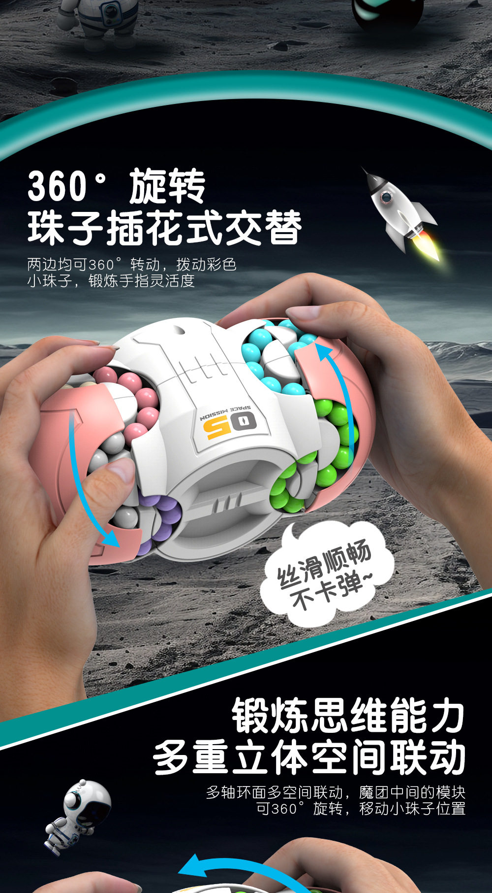 HomeProducts新款小学生智力开发魔方玩具无聊解压旋转魔豆儿童脑力玩具6-14岁
