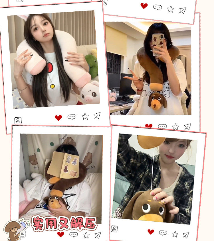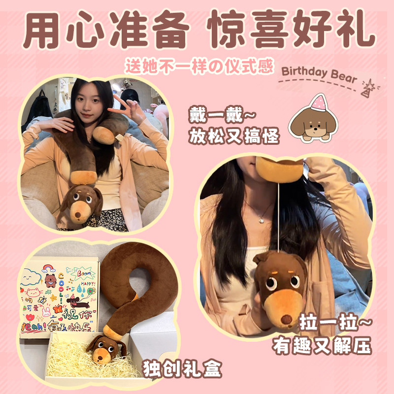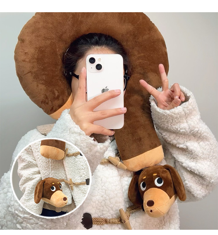 【❤️热卖爆款】棕色腊肠狗颈枕【狗头拉出可自动收回】