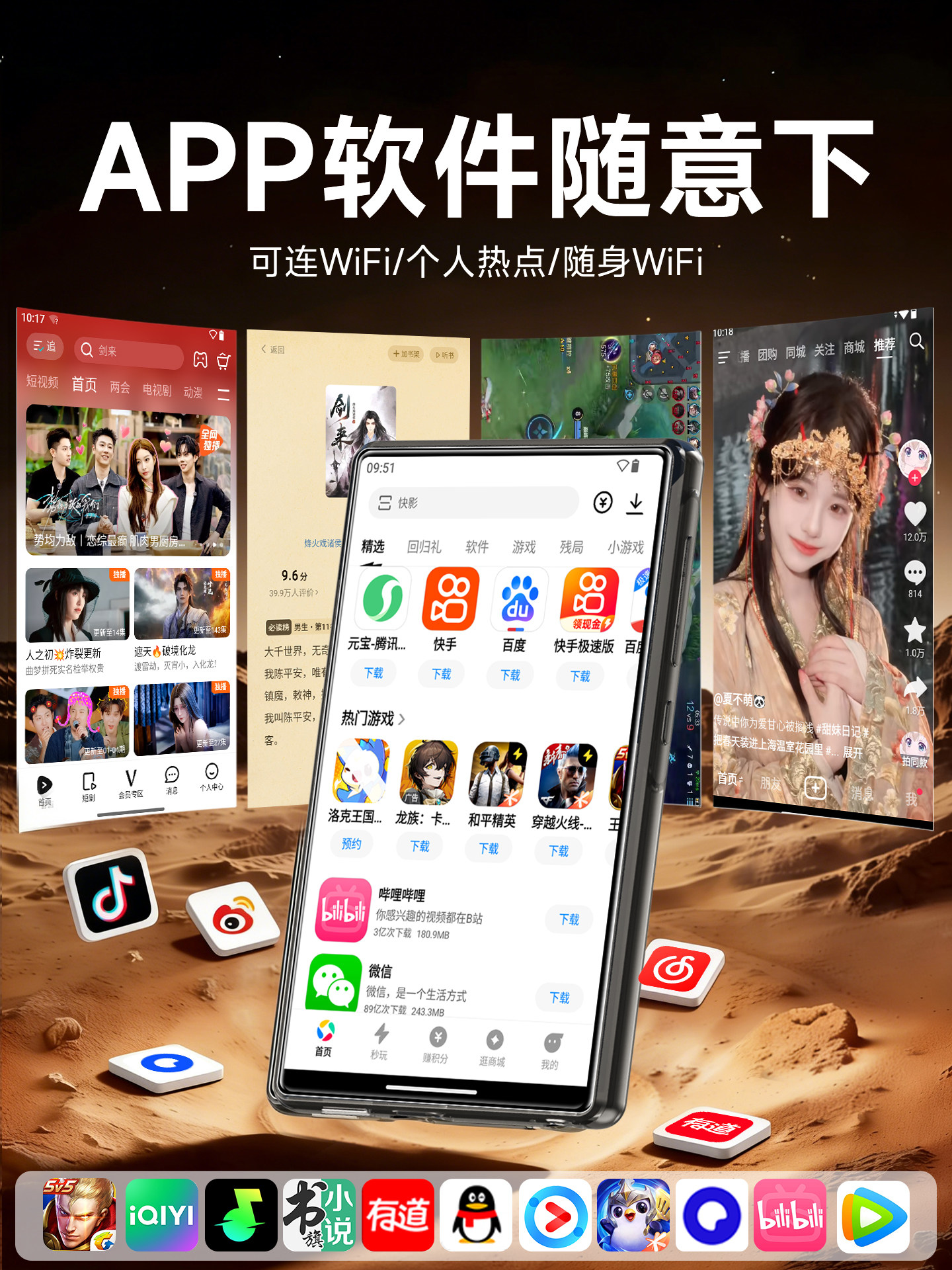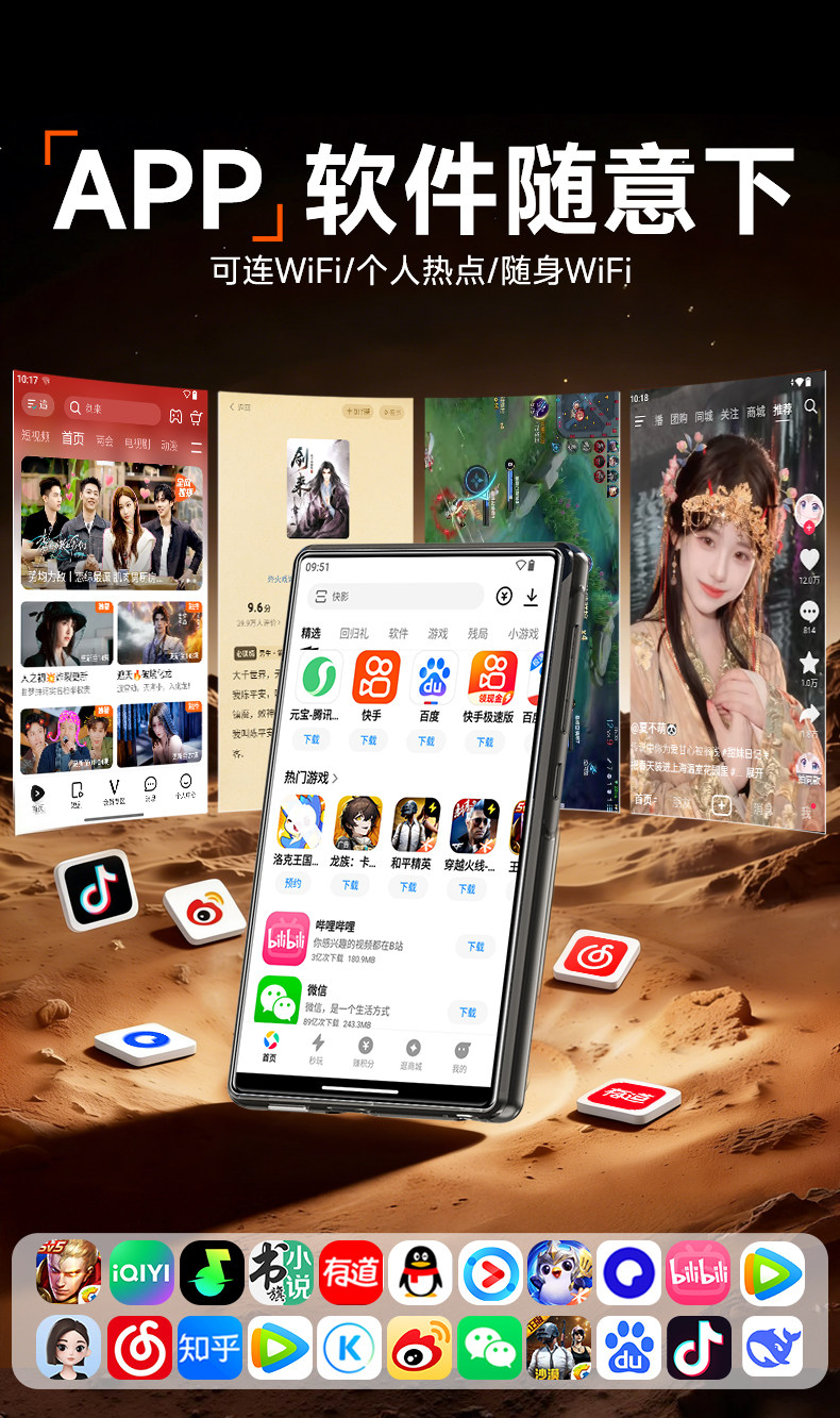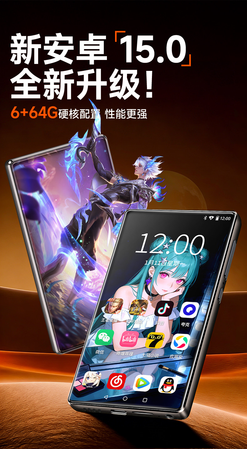 梵沐mp4mp5wifi可上网播放器听歌小说专用随身听全面屏看视频mp9