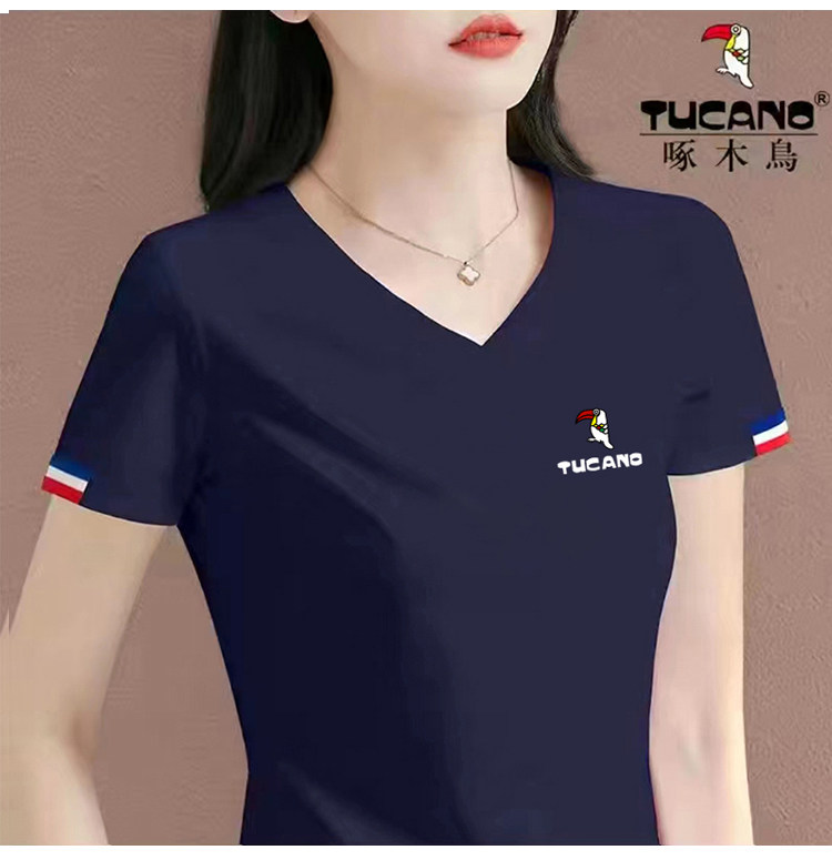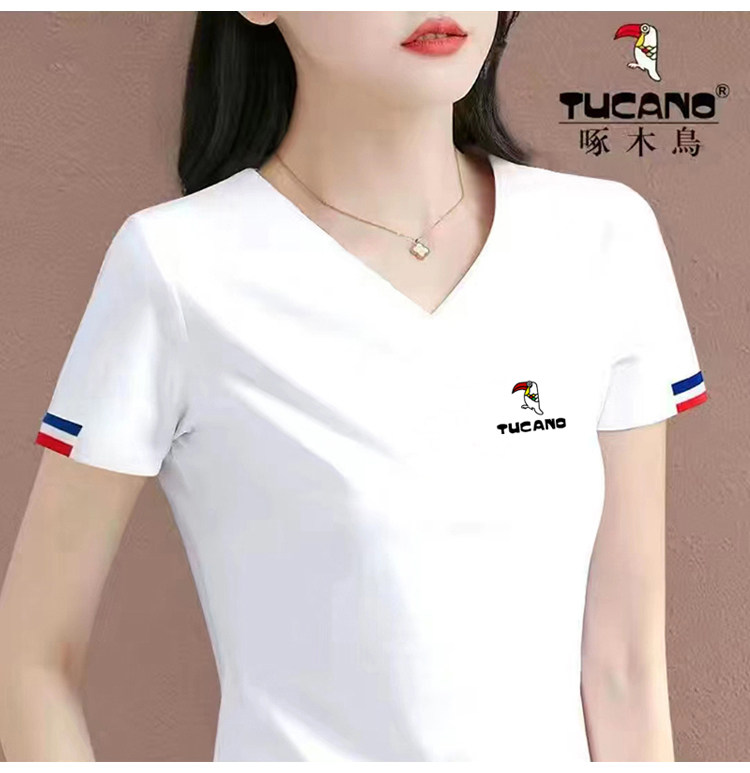 HomeProducts啄木鸟纯棉修身百搭短袖T恤女2026年新款夏季大码薄款短款v领上衣