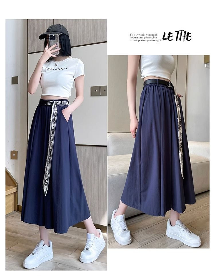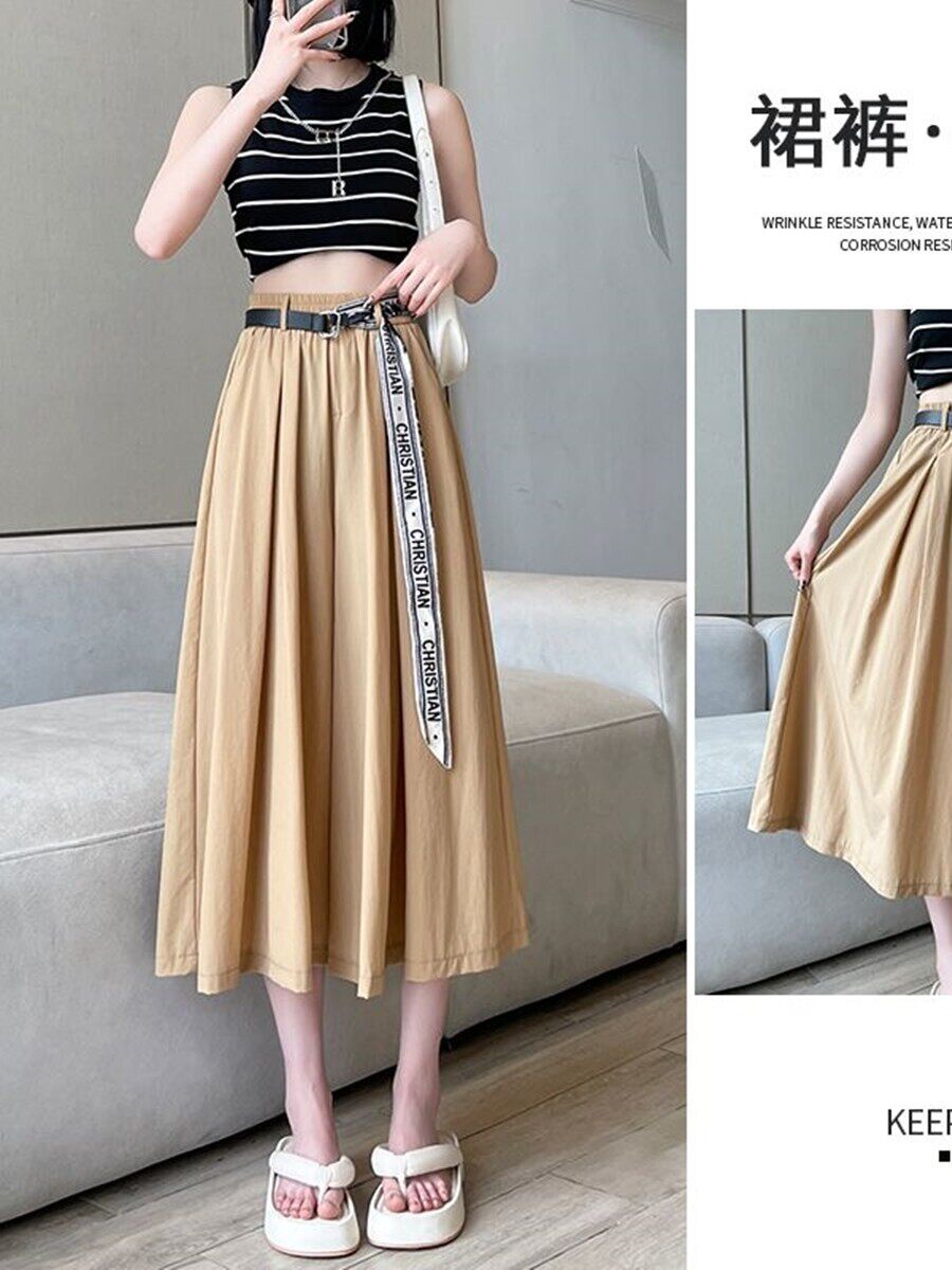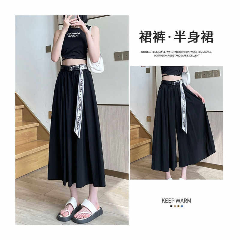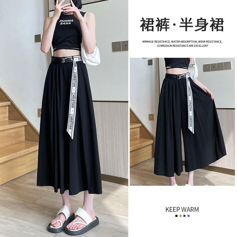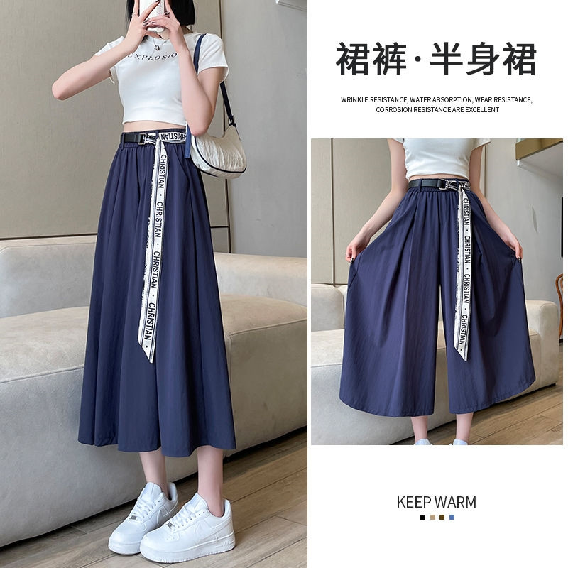 HomeProducts冰丝阔腿裤女小个子夏季薄款大码胖妹妹高腰休闲垂感半身裤裙子