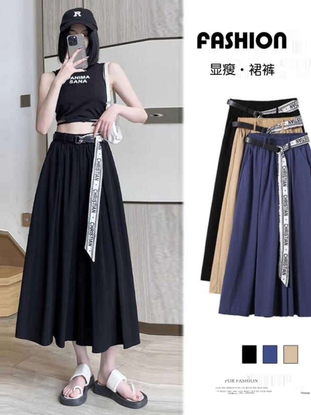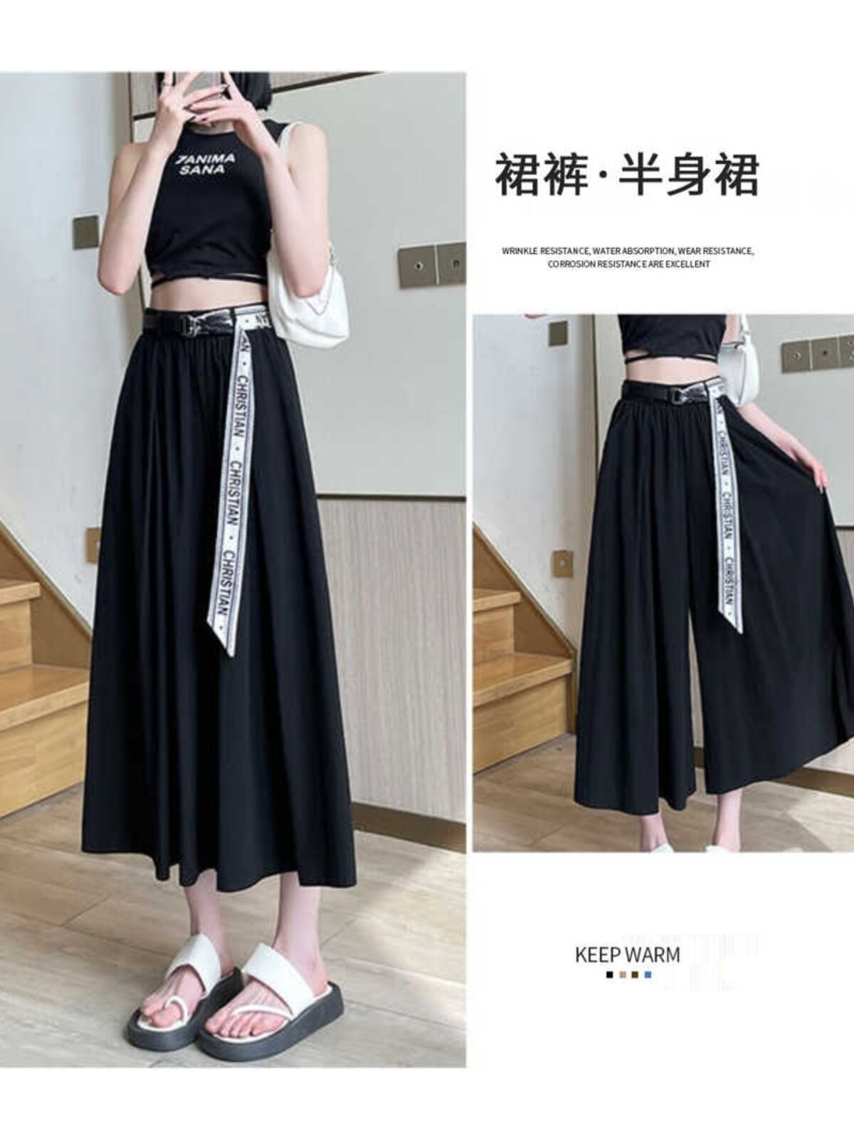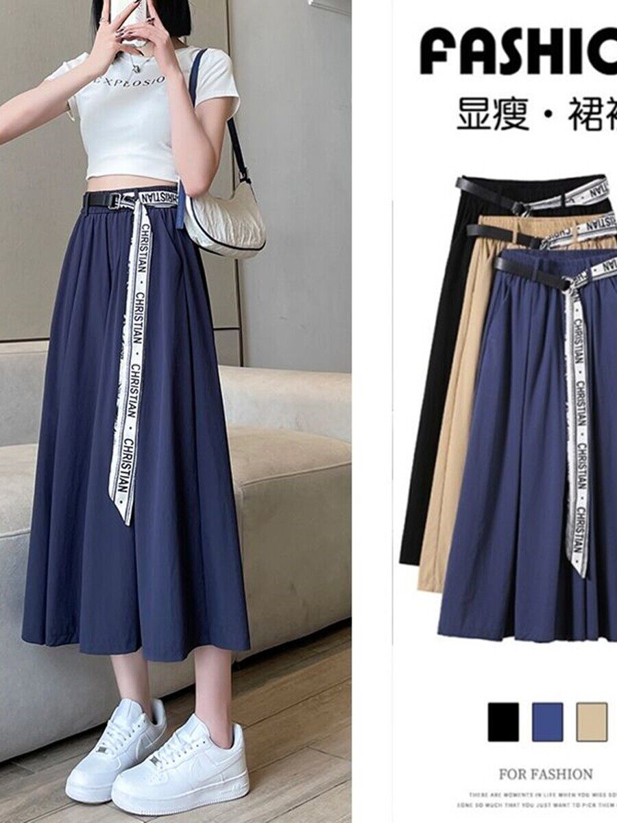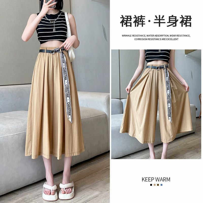 HomeProducts冰丝阔腿裤女小个子夏季薄款大码胖妹妹高腰休闲垂感半身裤裙子
