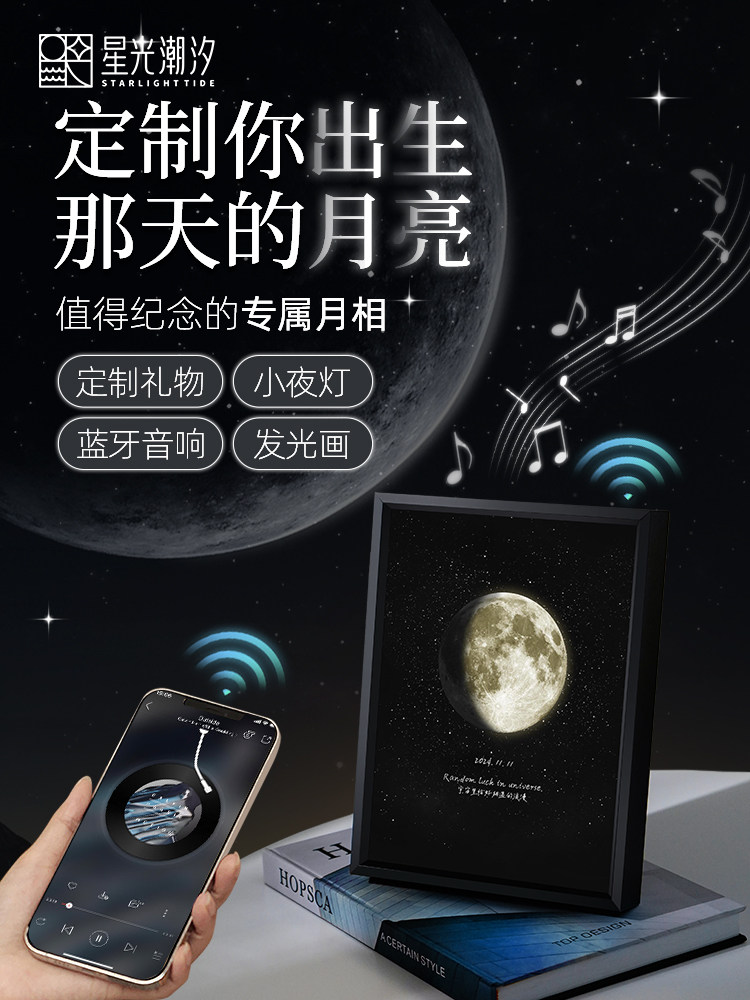 星光潮汐定你出生那天的月亮生日礼物男女生蓝牙音响相摆件音乐盒