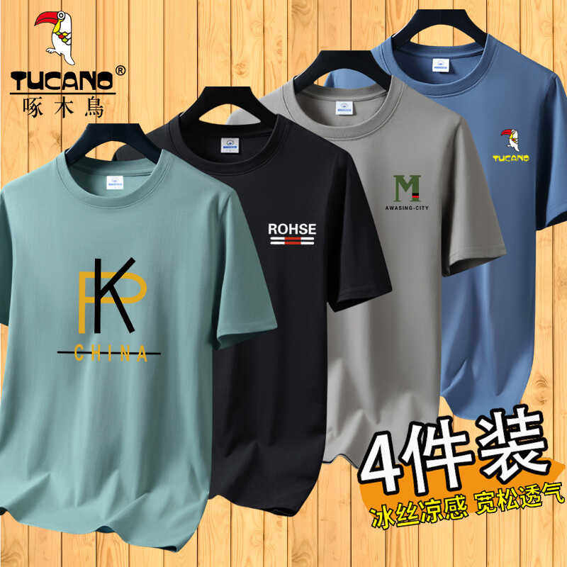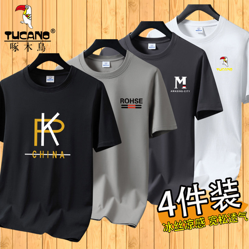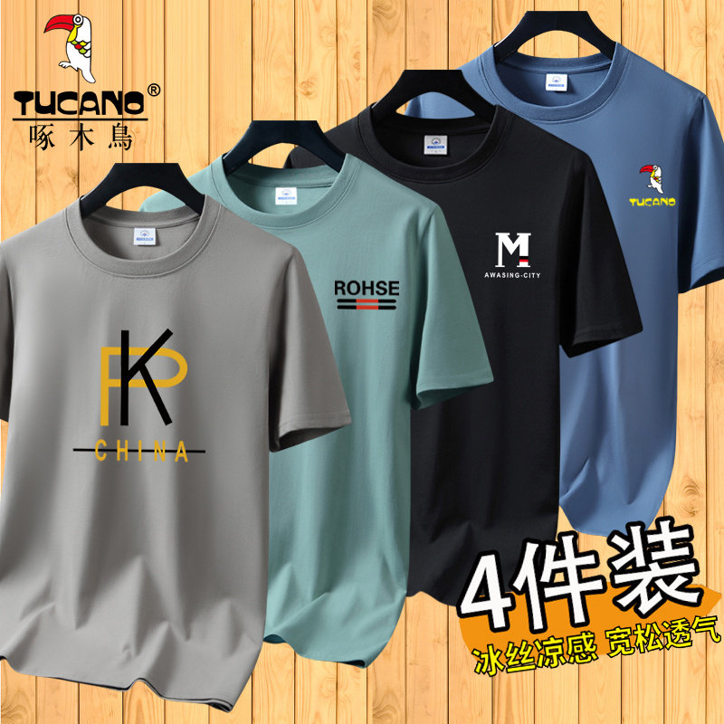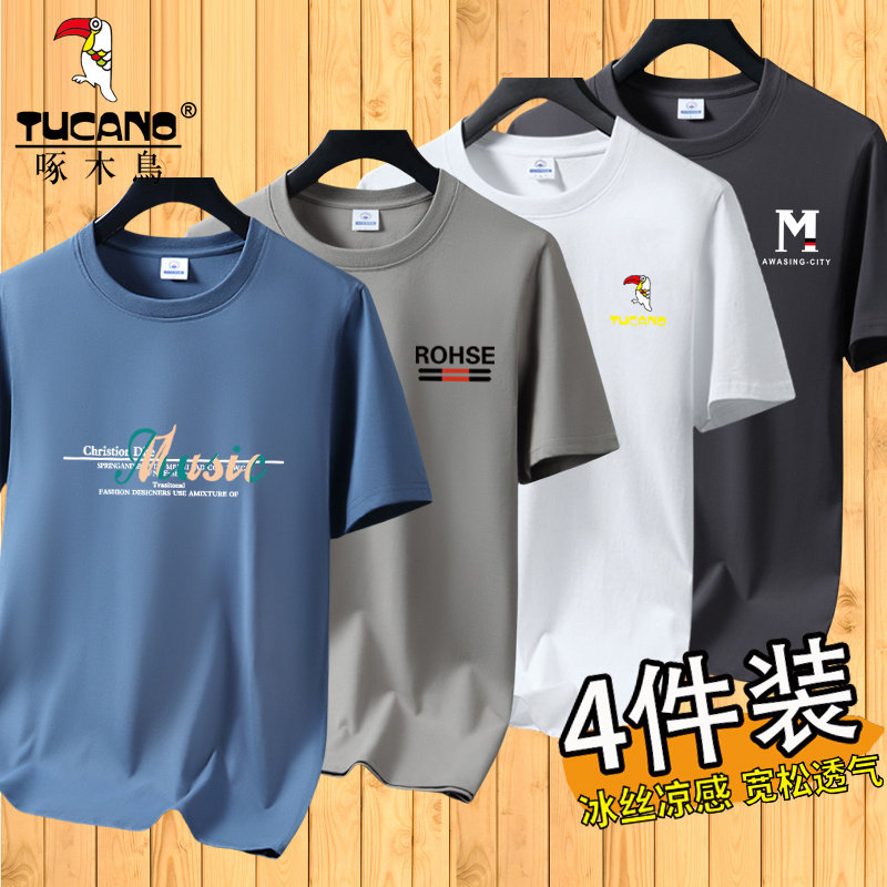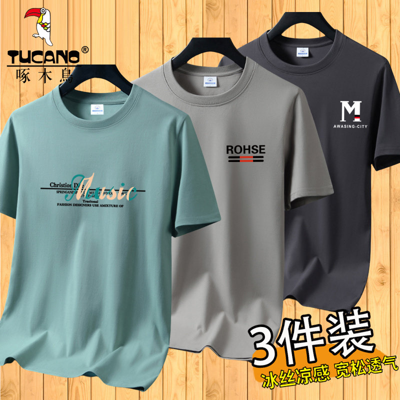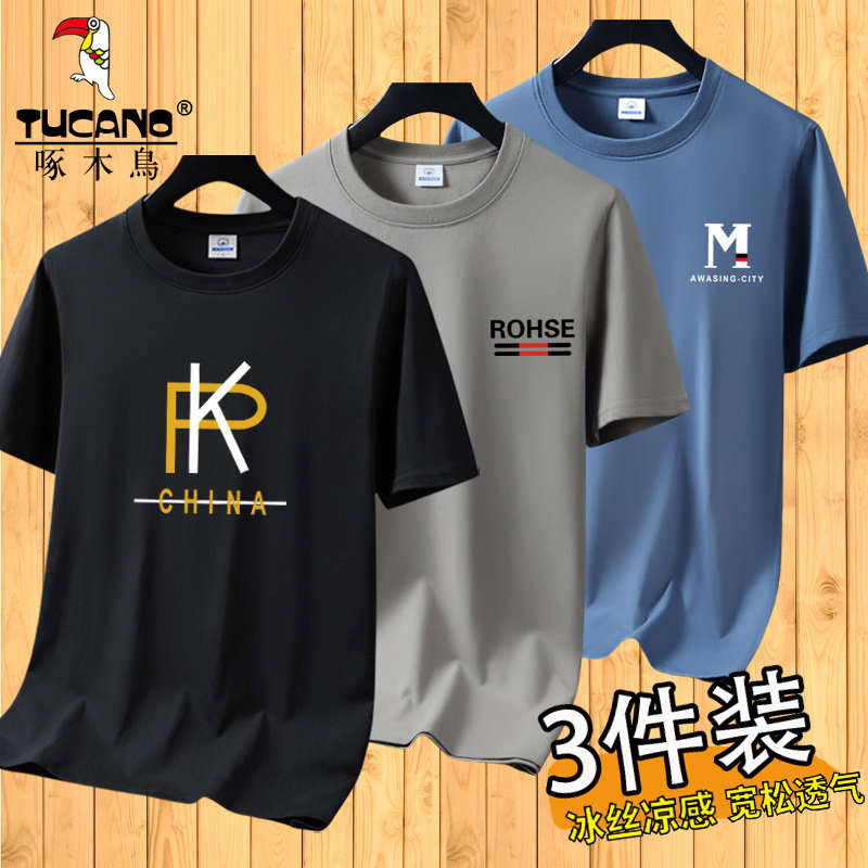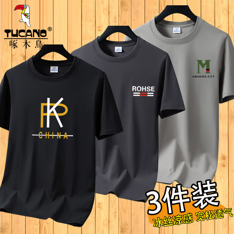 啄木鸟夏季冰丝短袖t恤男士宽松半袖男装体恤青年透气打底上衣服