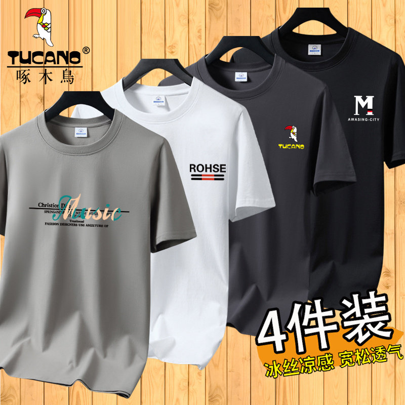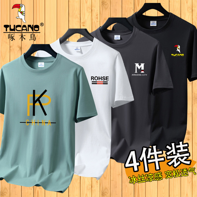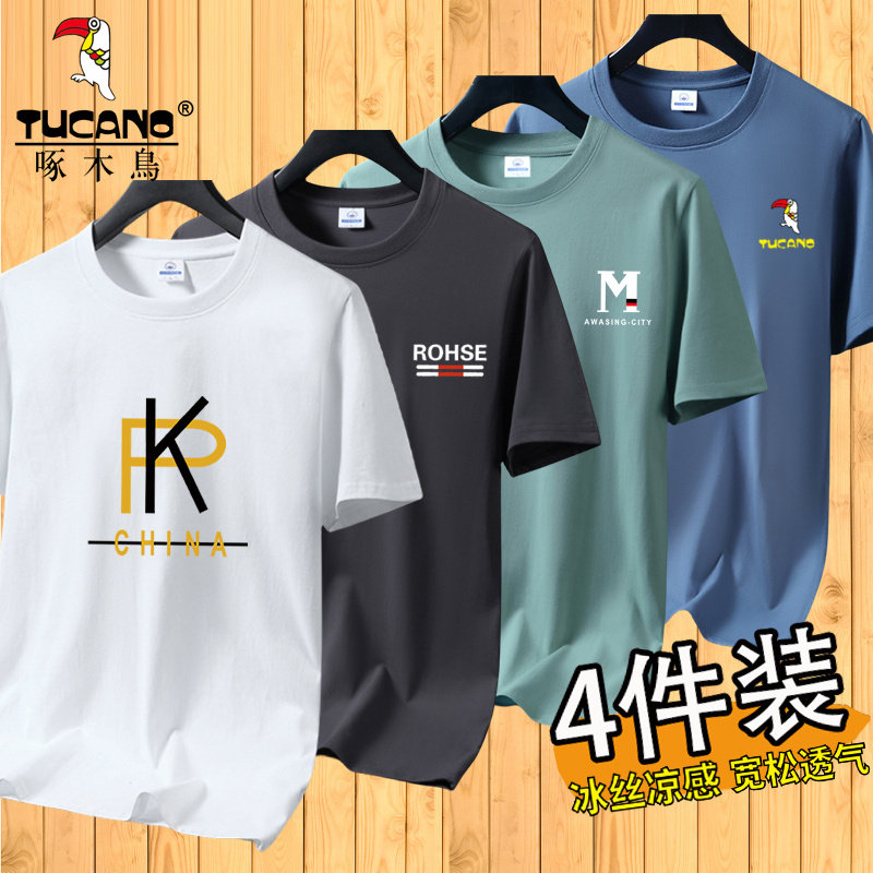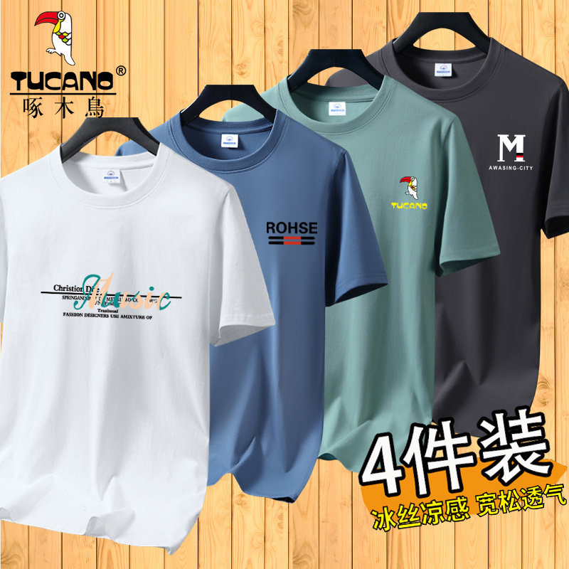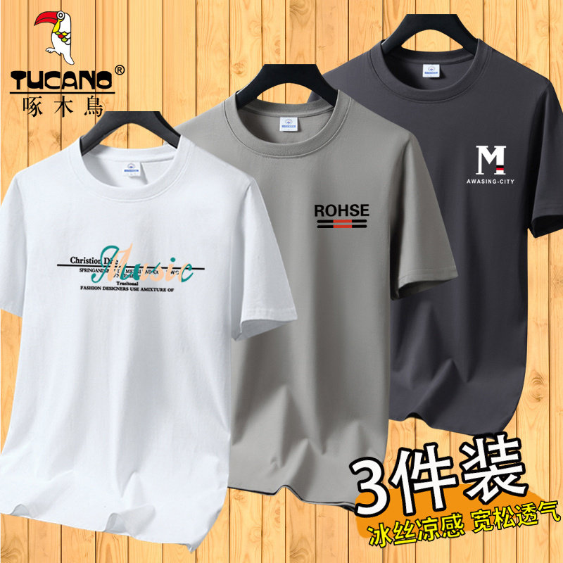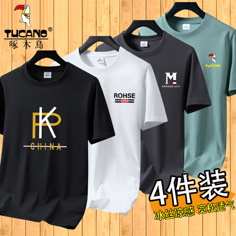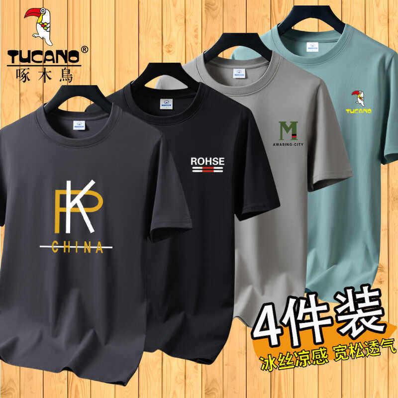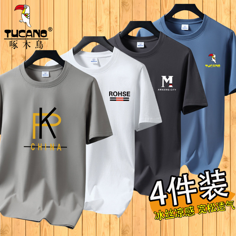 啄木鸟夏季冰丝短袖t恤男士宽松半袖男装体恤青年透气打底上衣服
