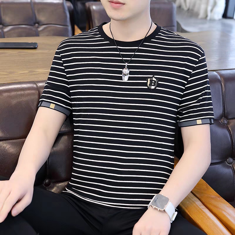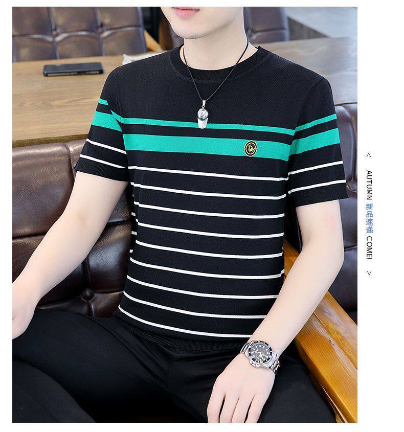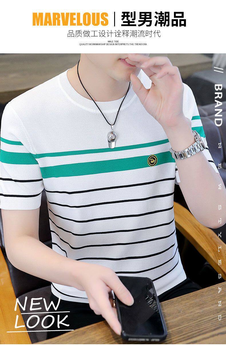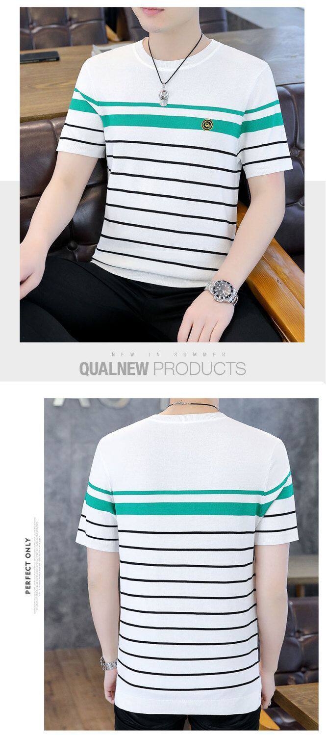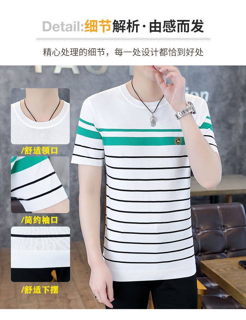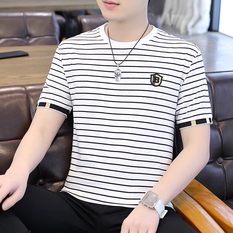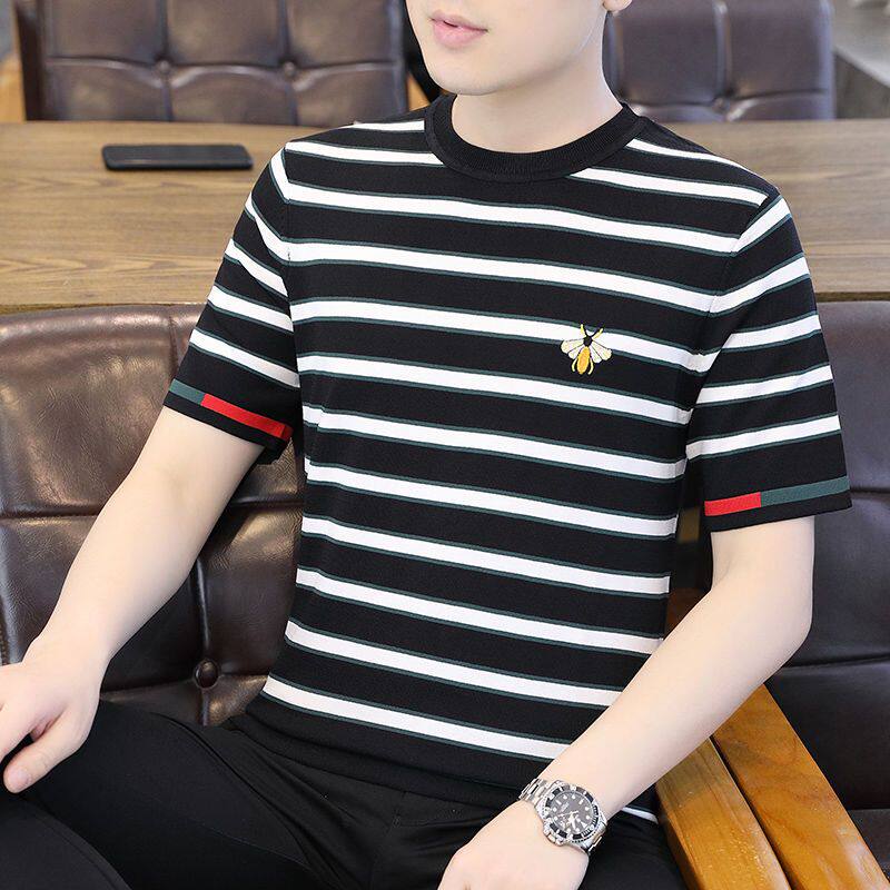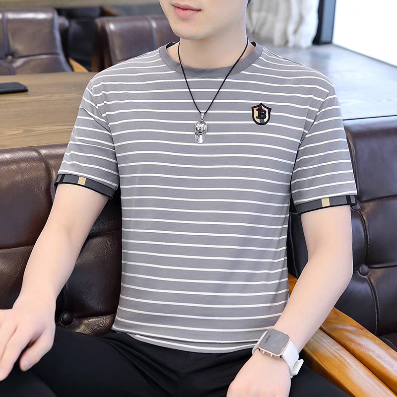 HomeProducts清仓捡漏~专柜撤回尾单大牌外贸欧洲站条纹短袖t恤男冰丝半袖上衣