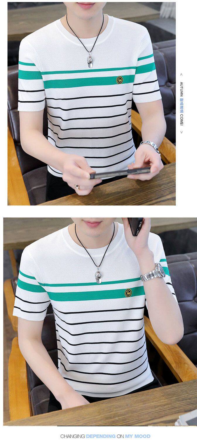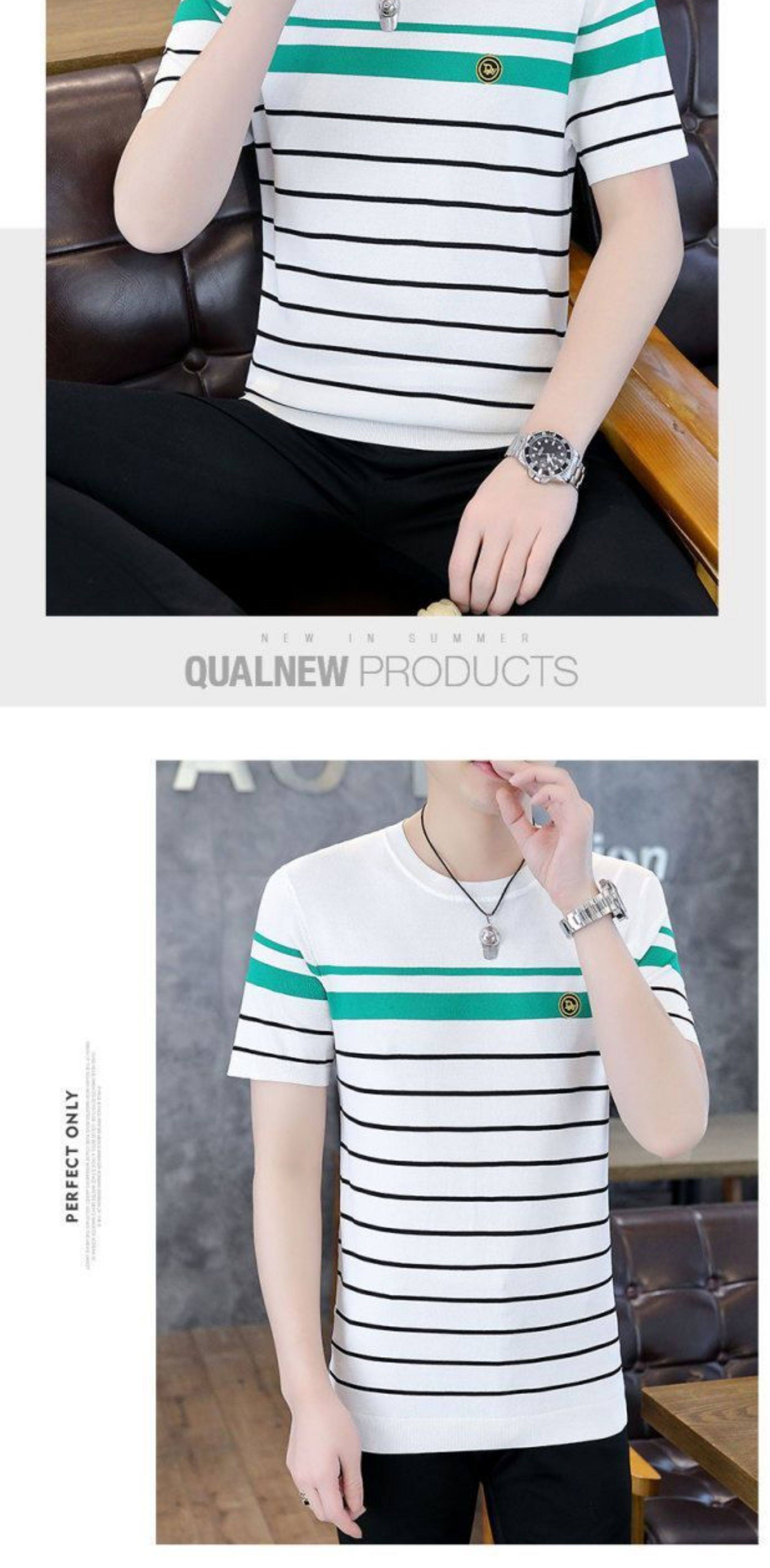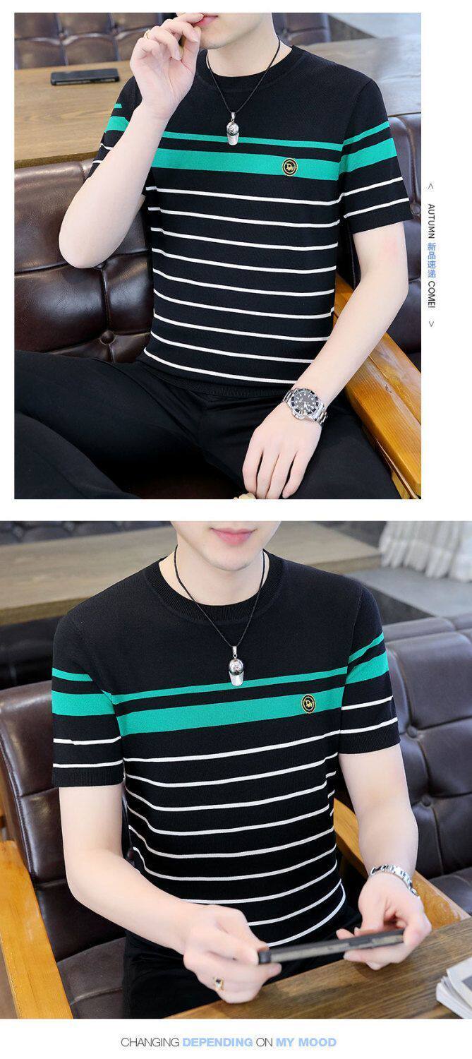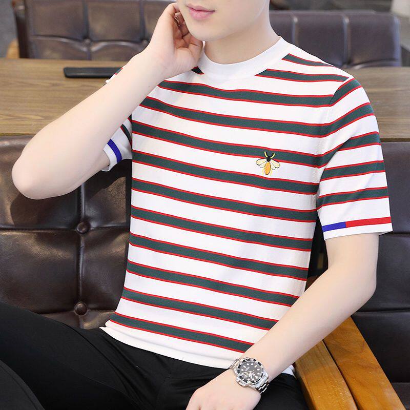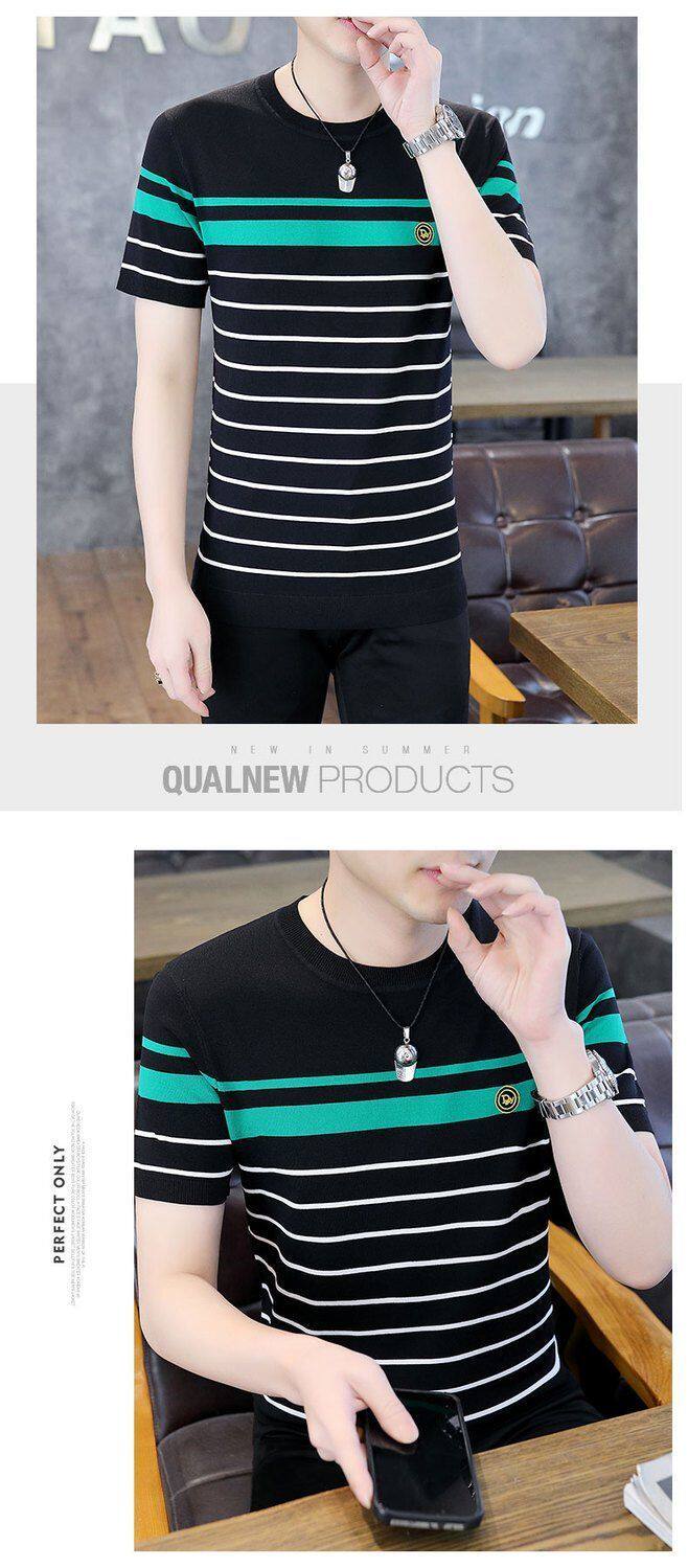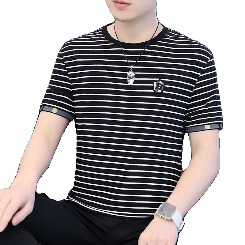 HomeProducts清仓捡漏~专柜撤回尾单大牌外贸欧洲站条纹短袖t恤男冰丝半袖上衣