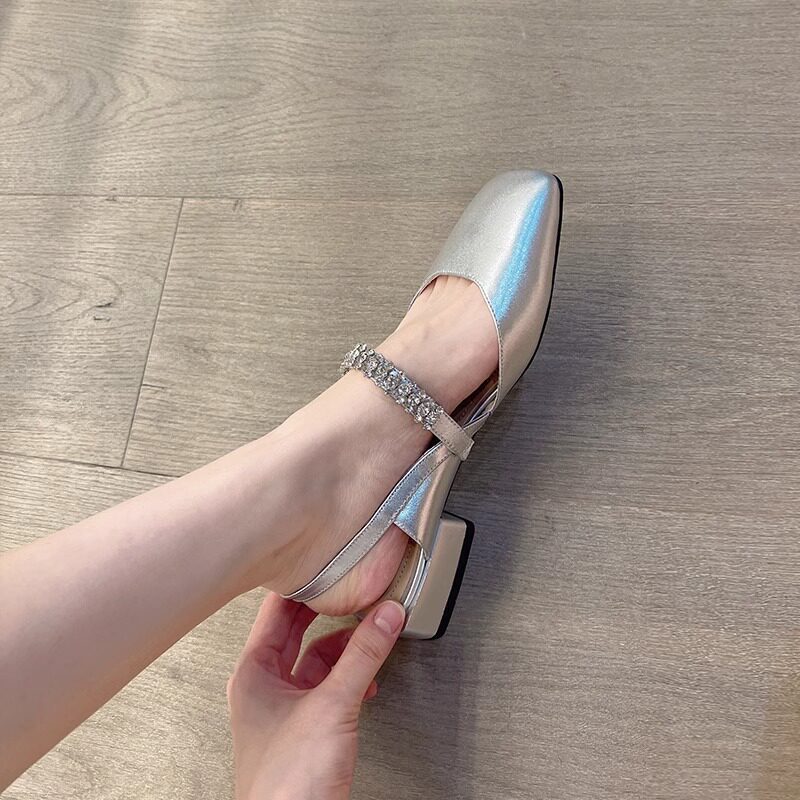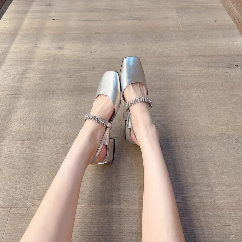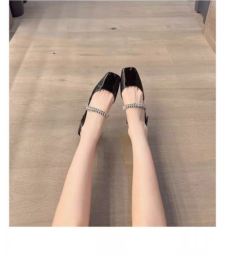包头凉鞋女夏季2024年新款时尚漆皮仙女风水钻方头粗跟玛丽珍单鞋