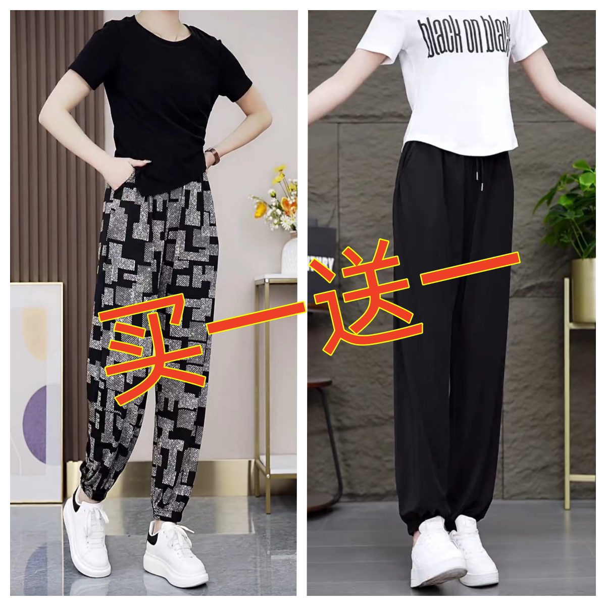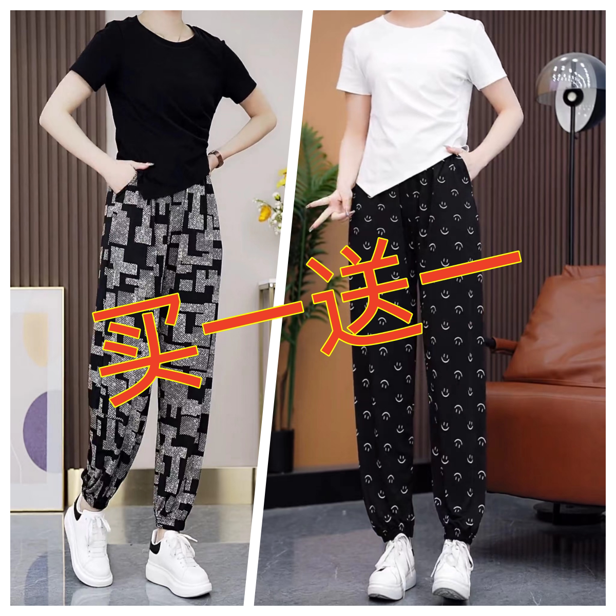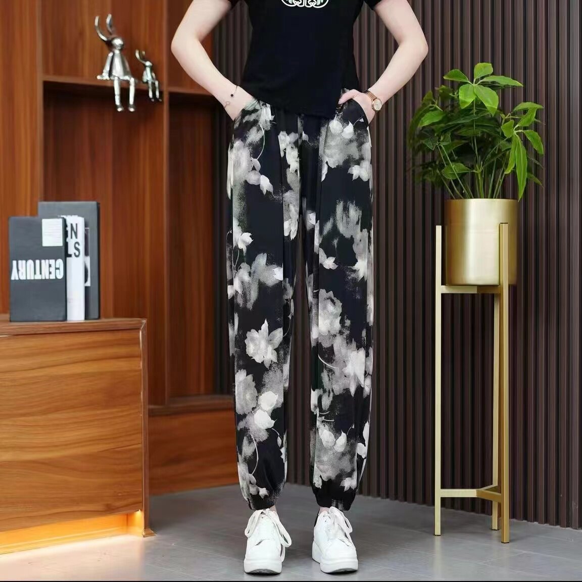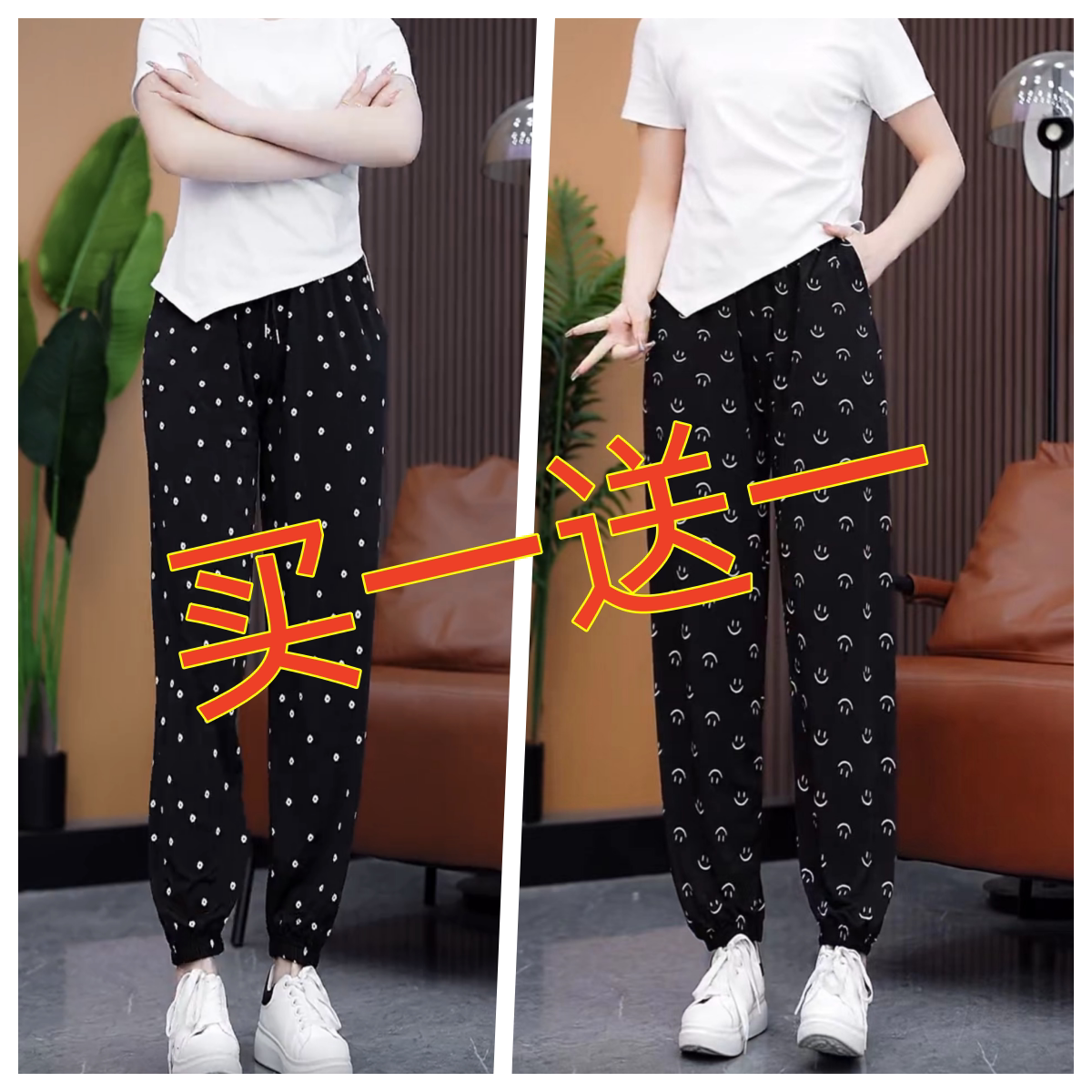 【买1送1】冰丝裤女夏季新款垂感宽松九分束脚休闲裤防蚊凉凉花裤