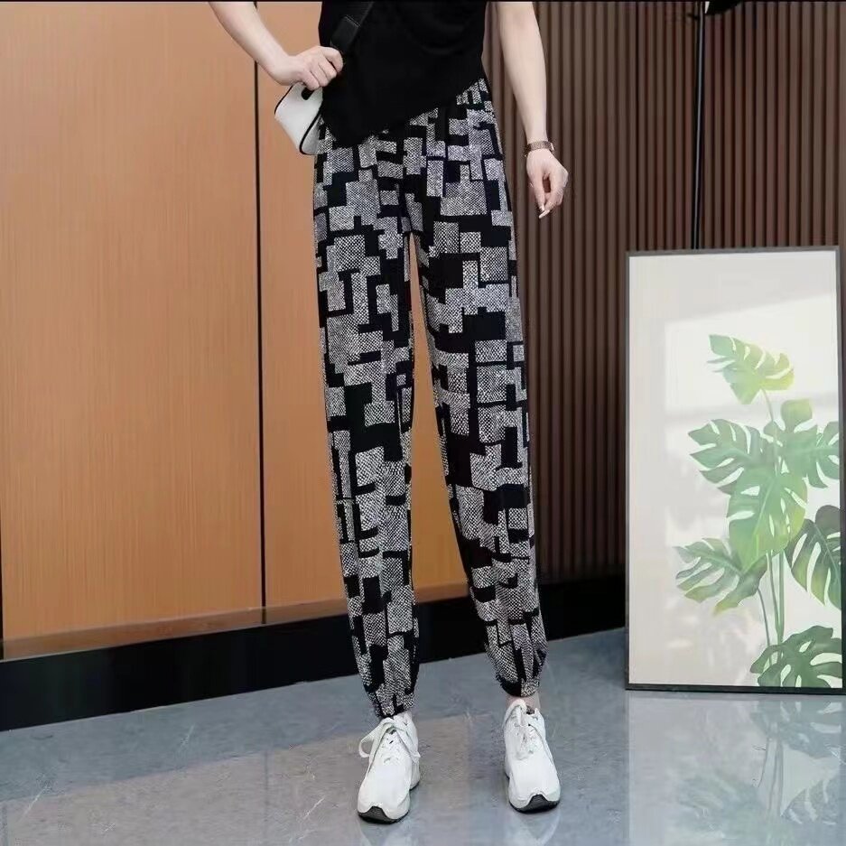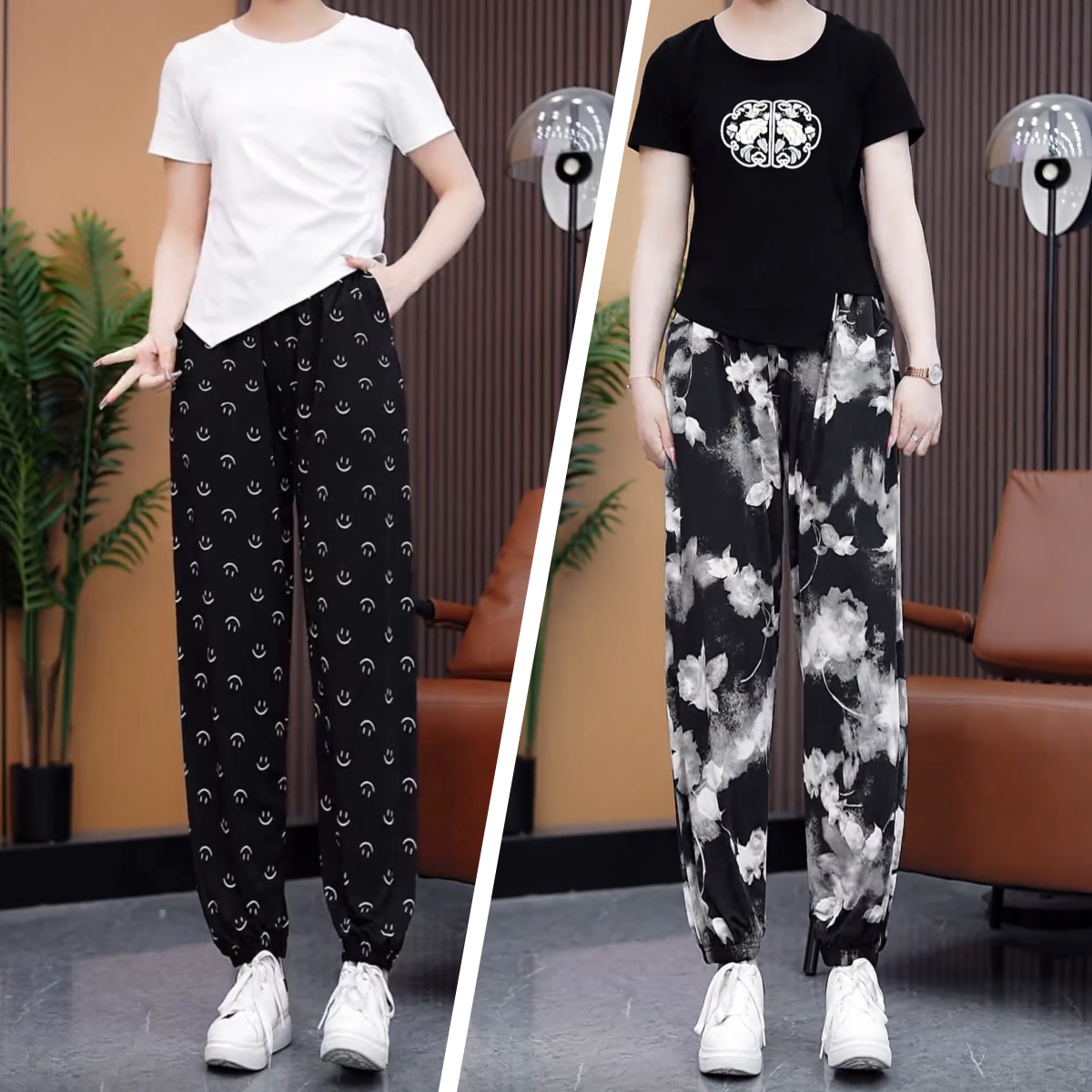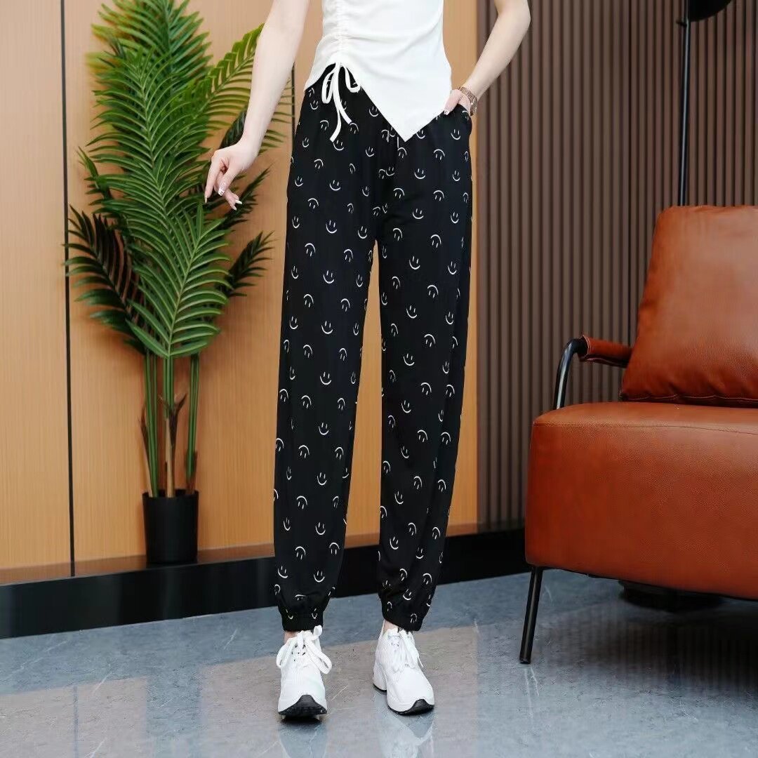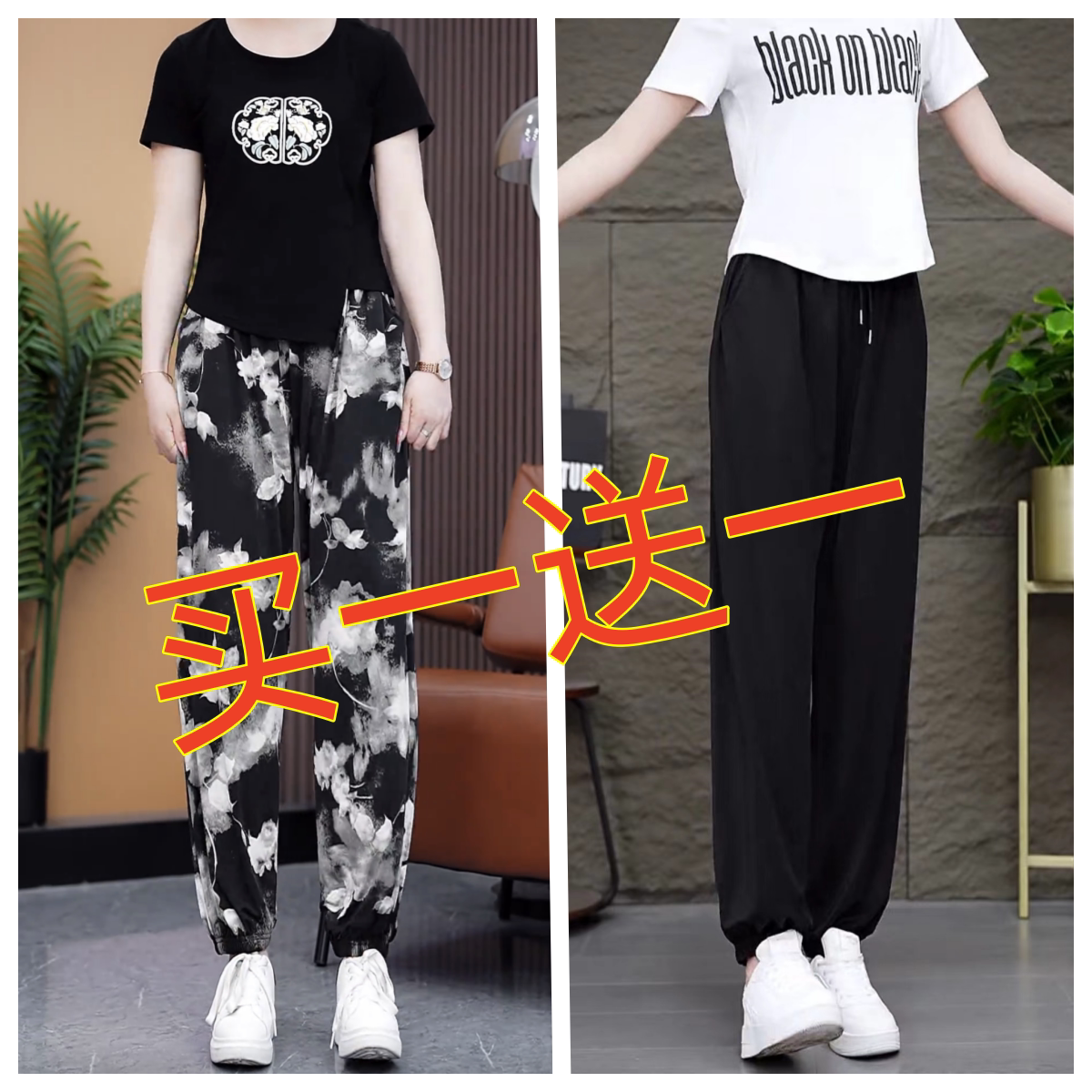 【买1送1】冰丝裤女夏季新款垂感宽松九分束脚休闲裤防蚊凉凉花裤
