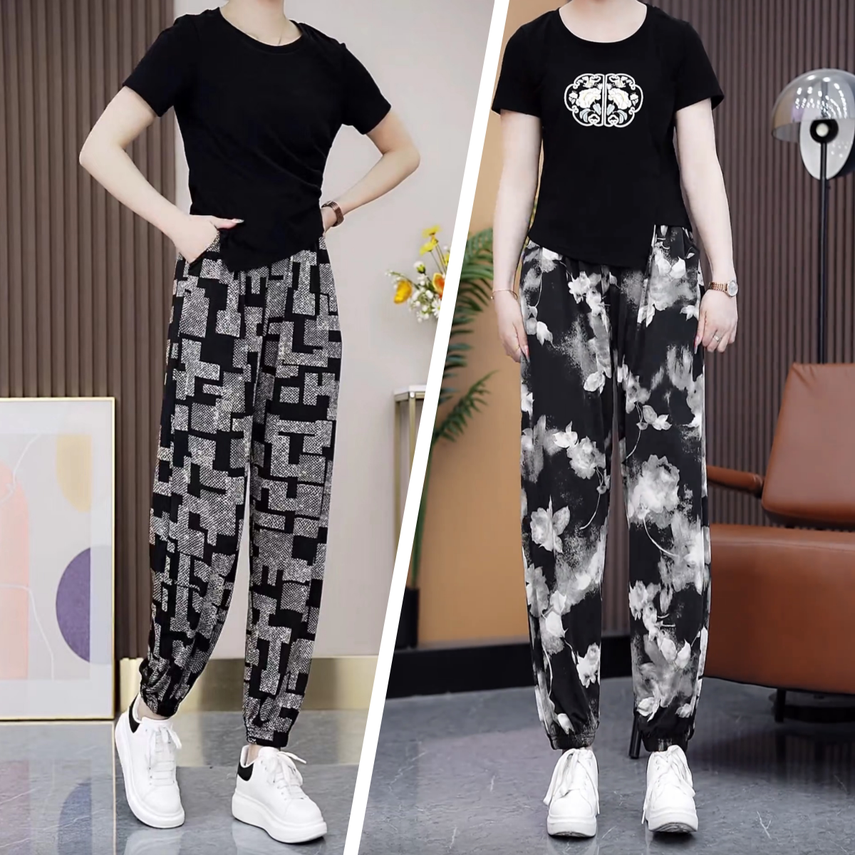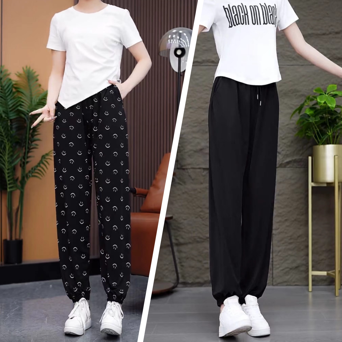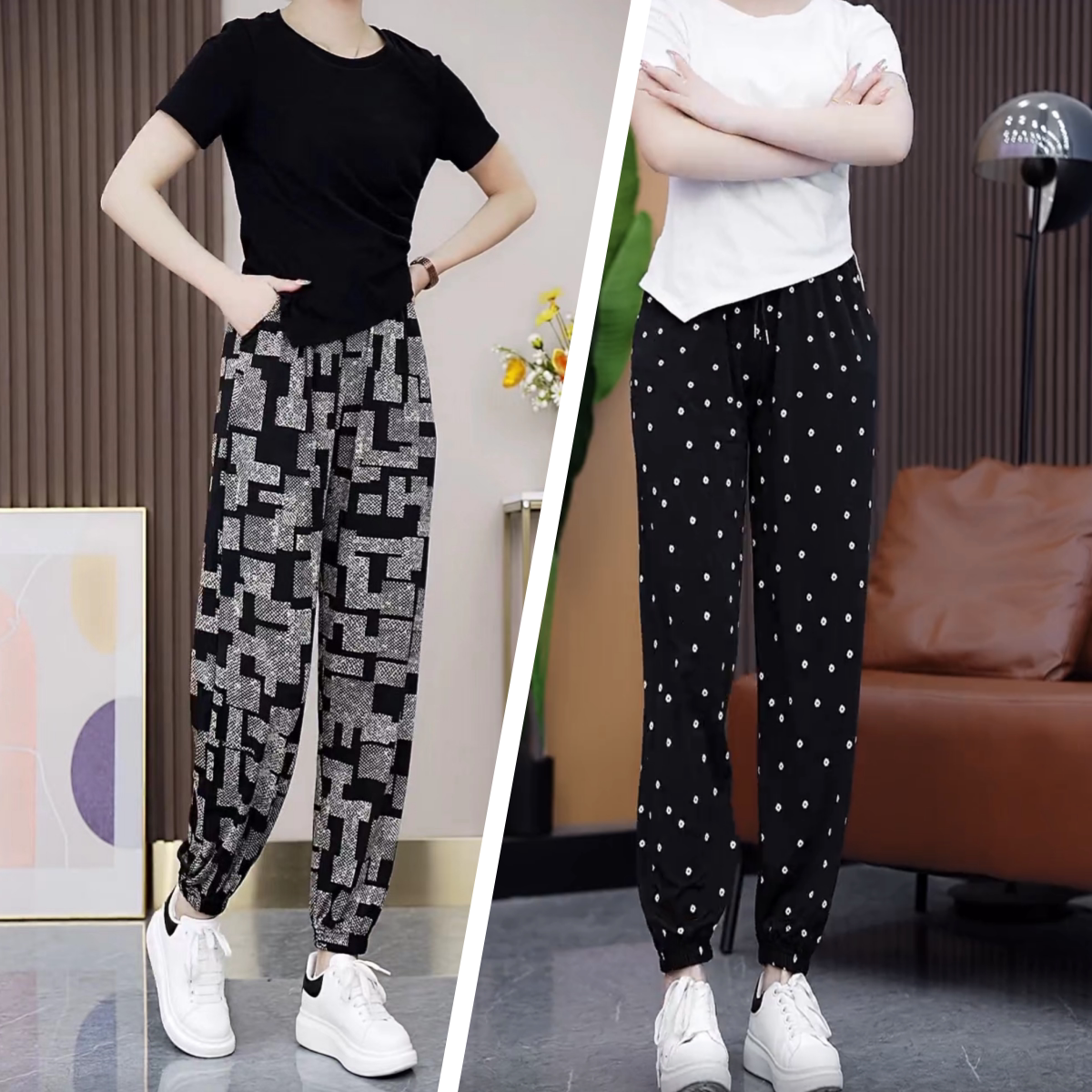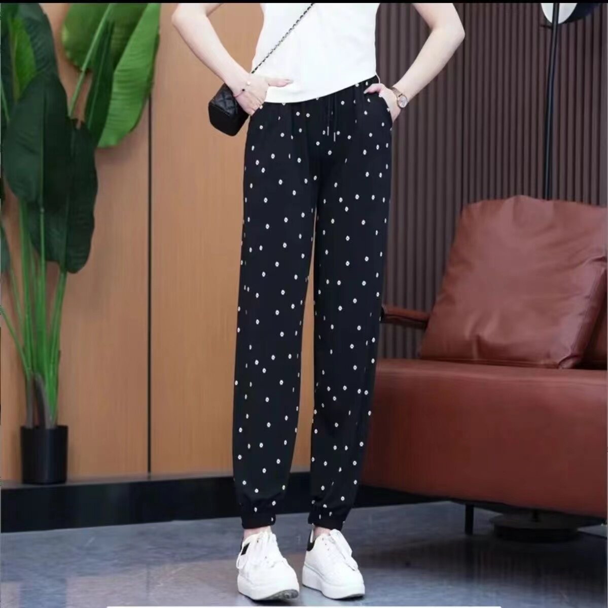 【买1送1】冰丝裤女夏季新款垂感宽松九分束脚休闲裤防蚊凉凉花裤
