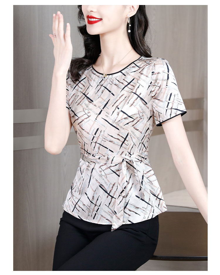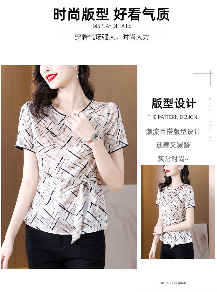 声雨竹重磅真丝t恤女上衣2026夏新款妈妈系带缎面丝绸桑蚕丝小衫