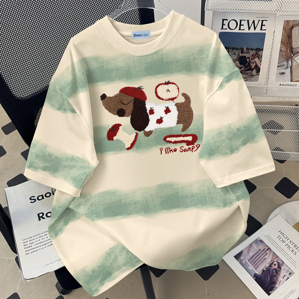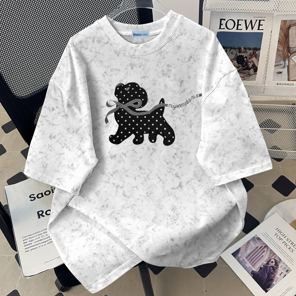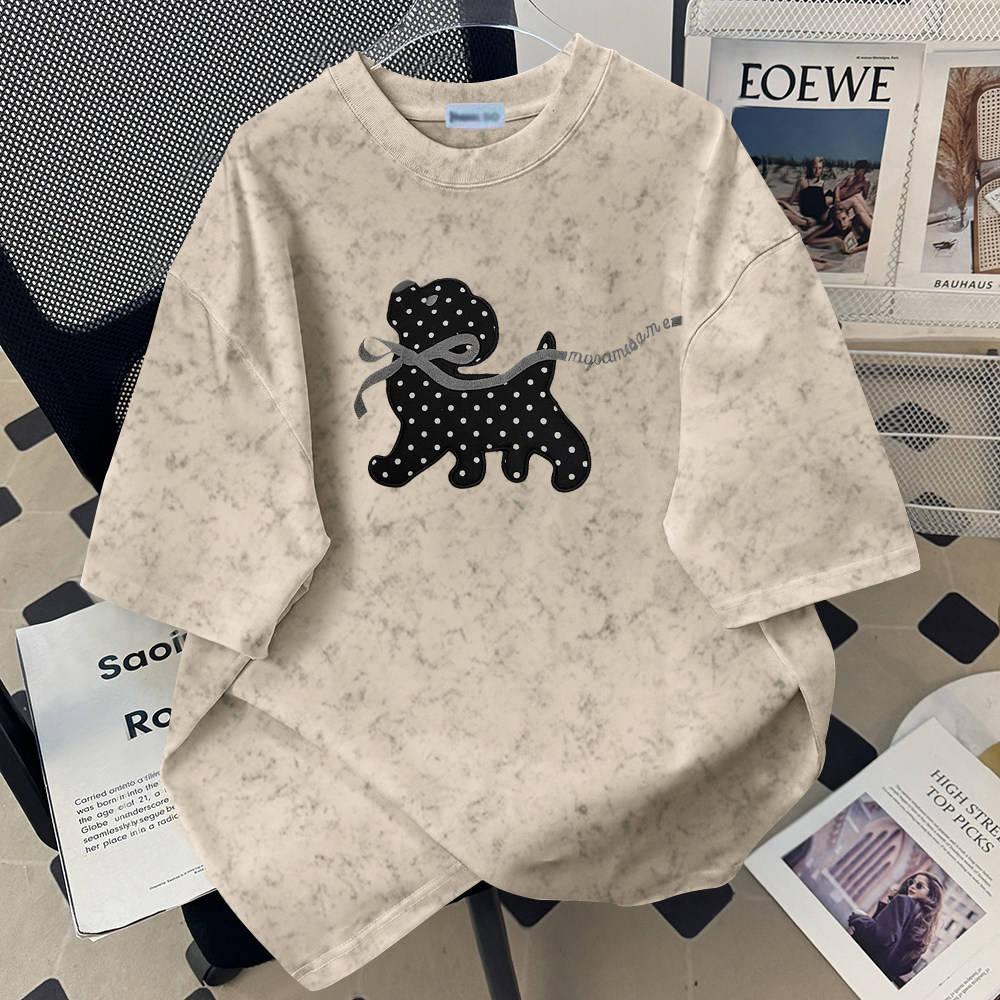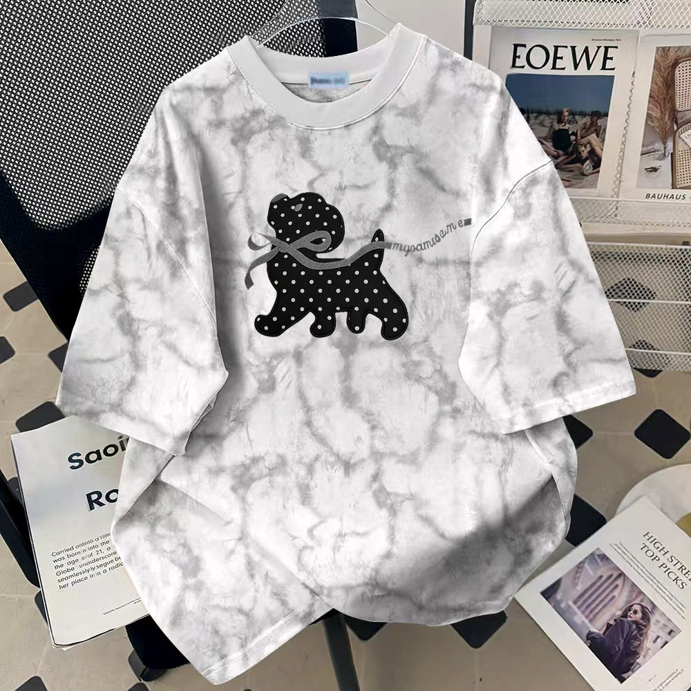 新款时尚休闲简约宽松潮流气质高级感扎染男女短袖复古慵懒风上衣