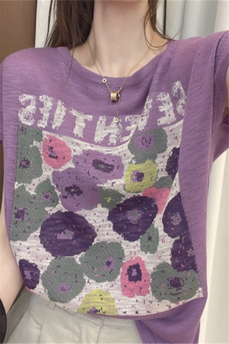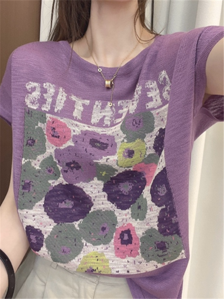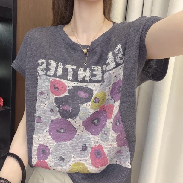 妈妈夏装洋气上衣2024新款字母印花T恤女士短袖圆领时尚宽松小衫