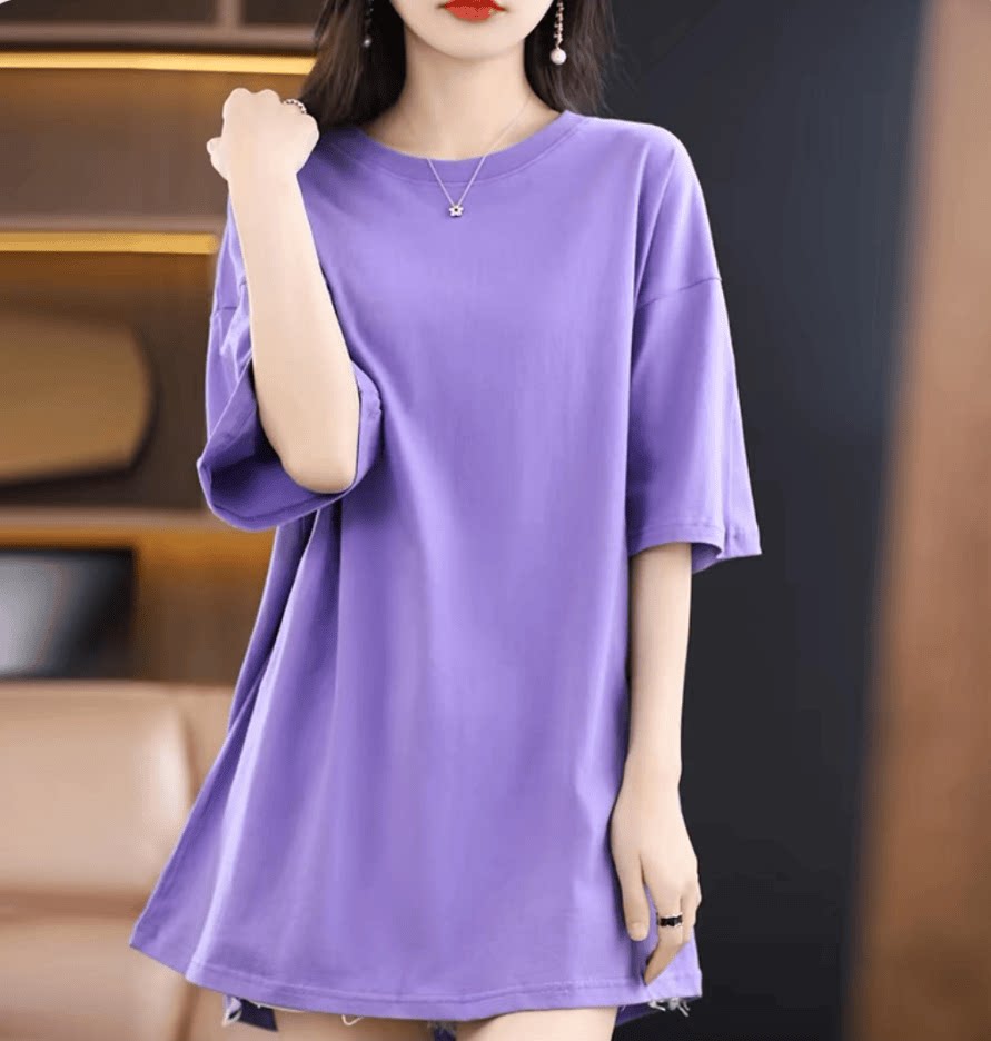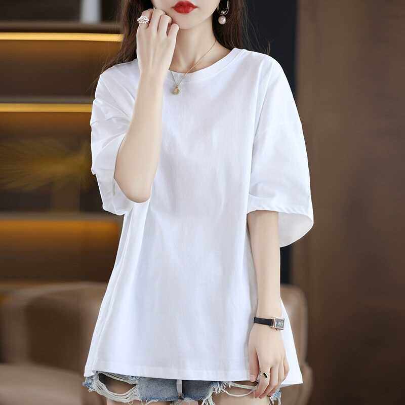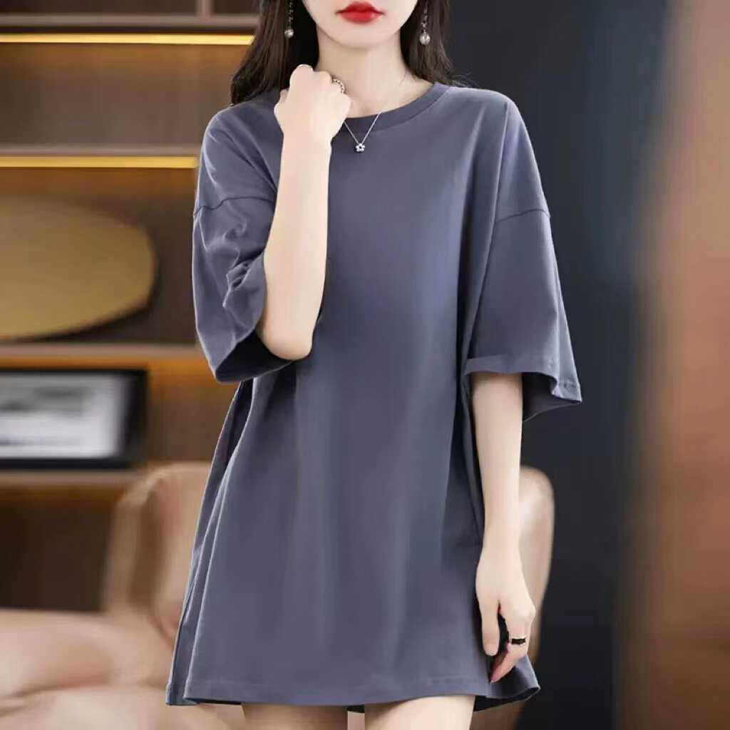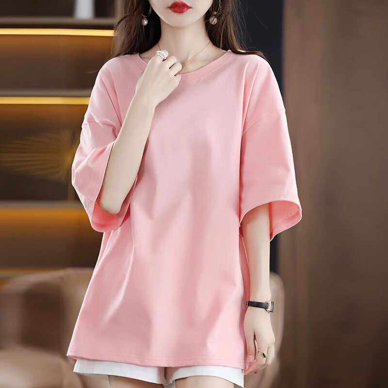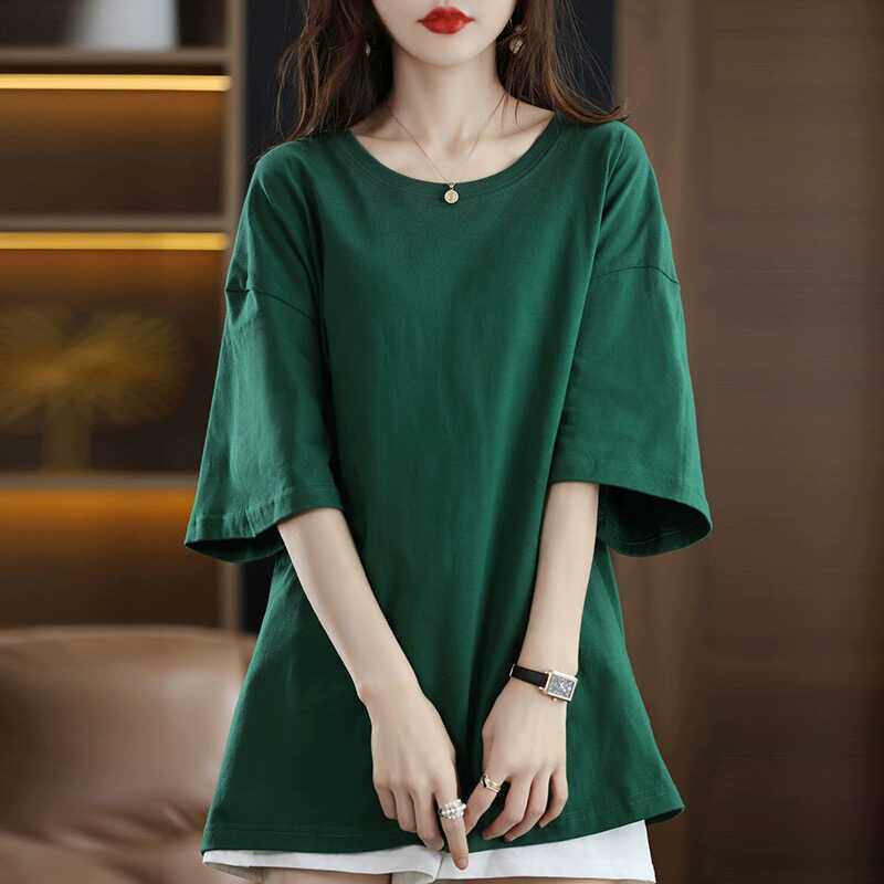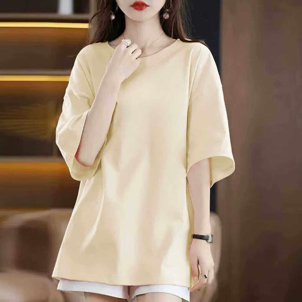 清仓捡漏~高档剪标减龄短袖T恤女宽松大码中长款中袖体恤打底衫