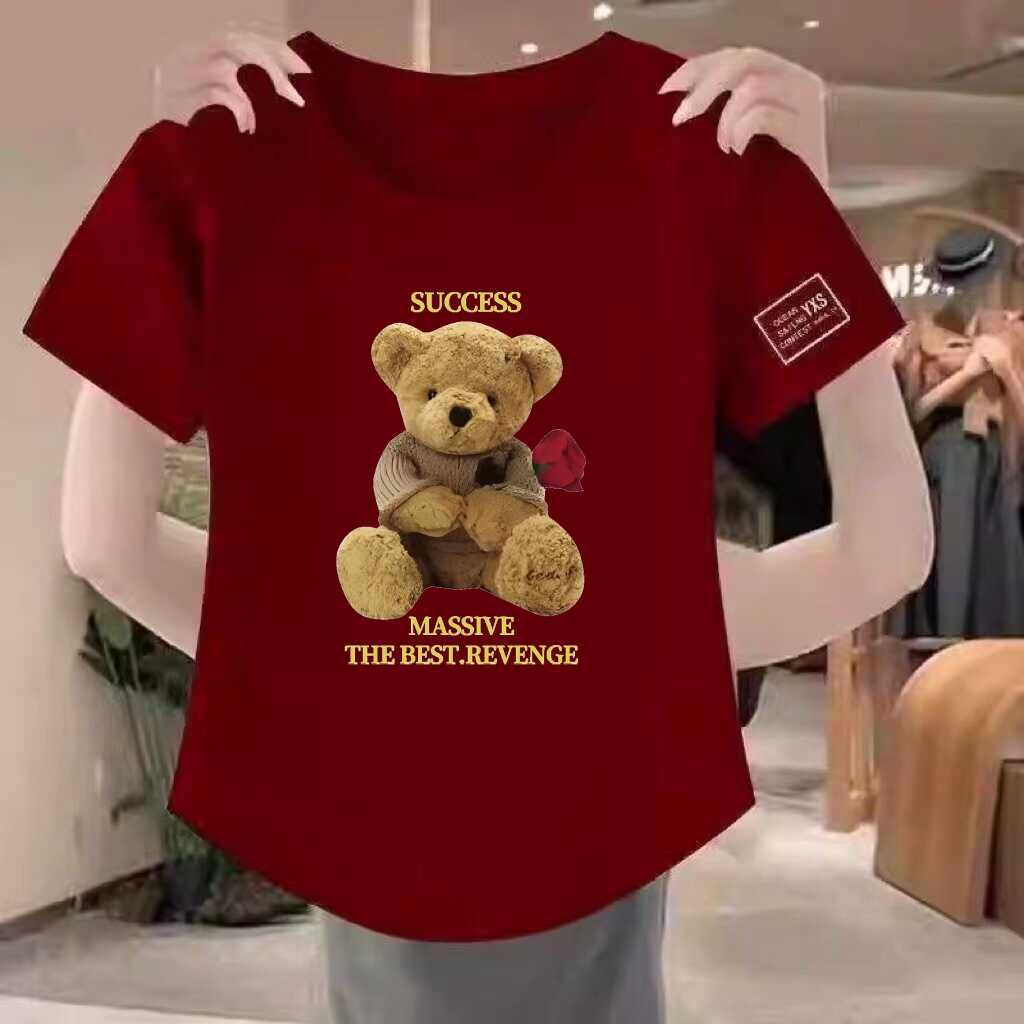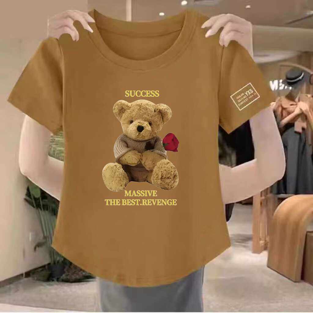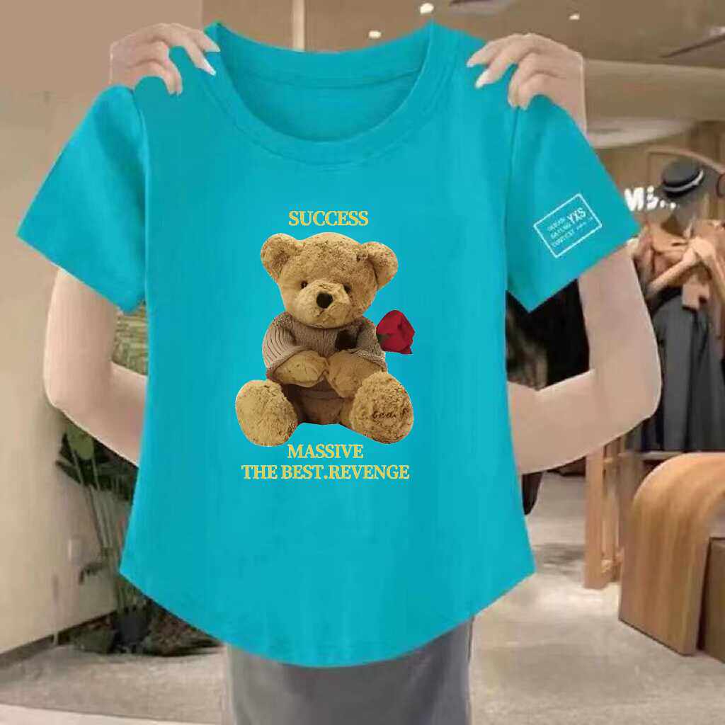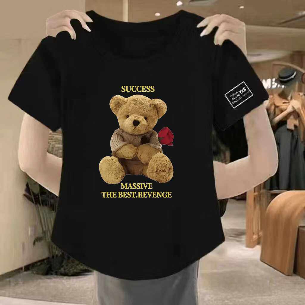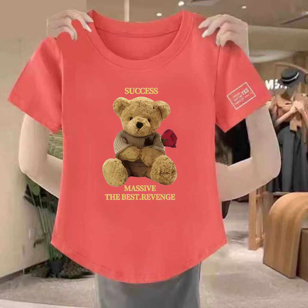 清仓捡漏~高档折扣圆领印花上衣女妈妈短袖宽松T恤夏季百搭打底衫