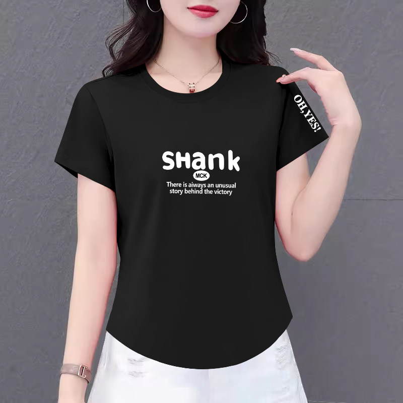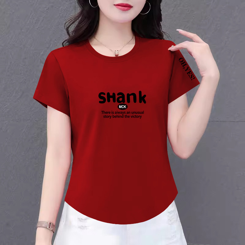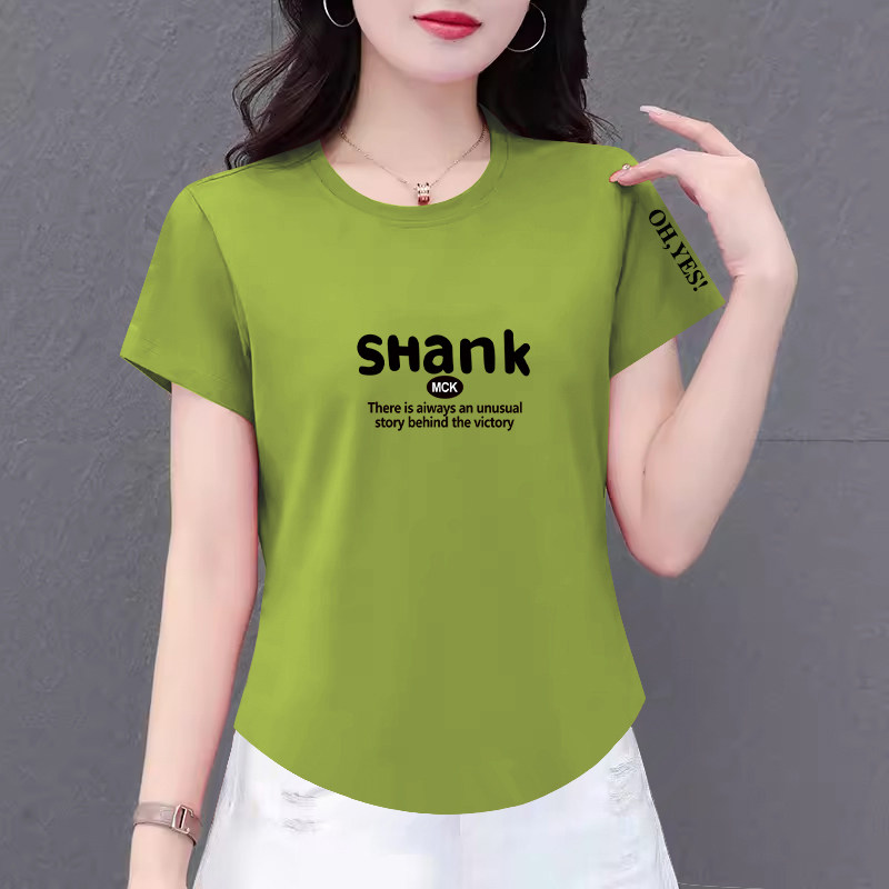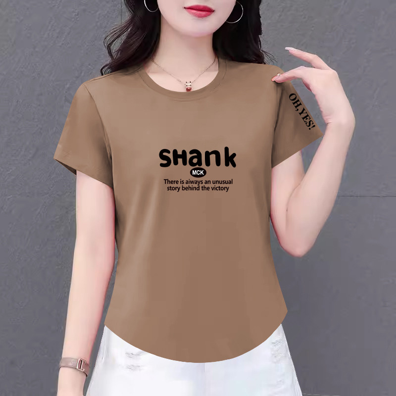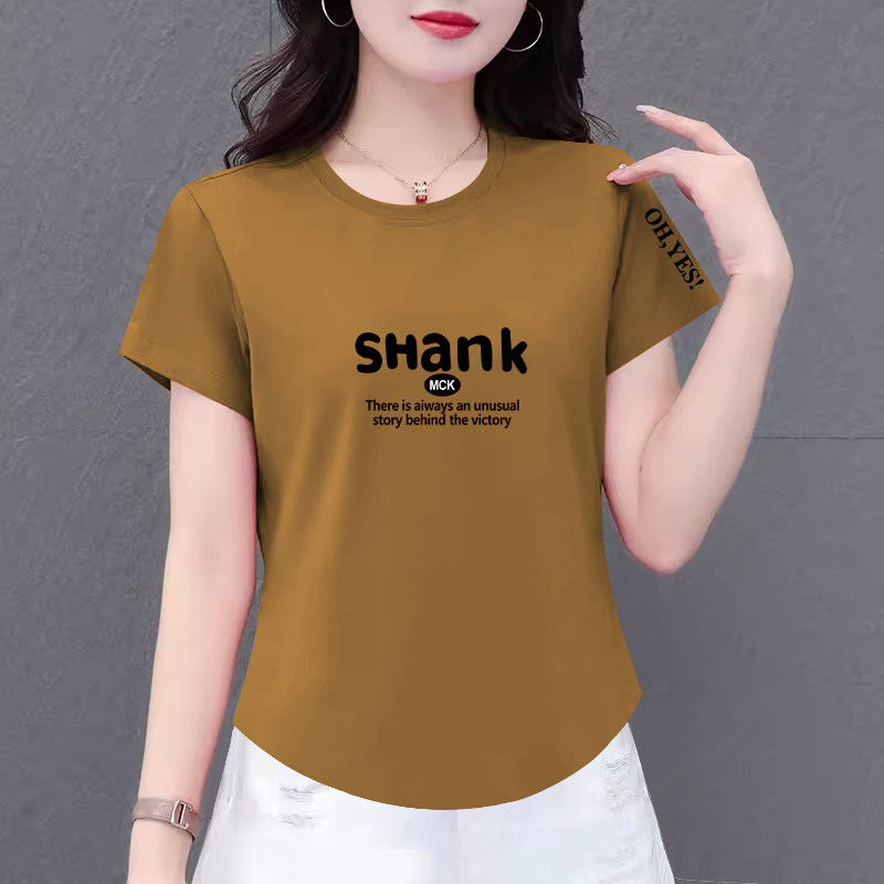 纯棉女士t恤短袖2025夏装新款韩版上衣遮肉妈妈圆领洋气百搭时尚