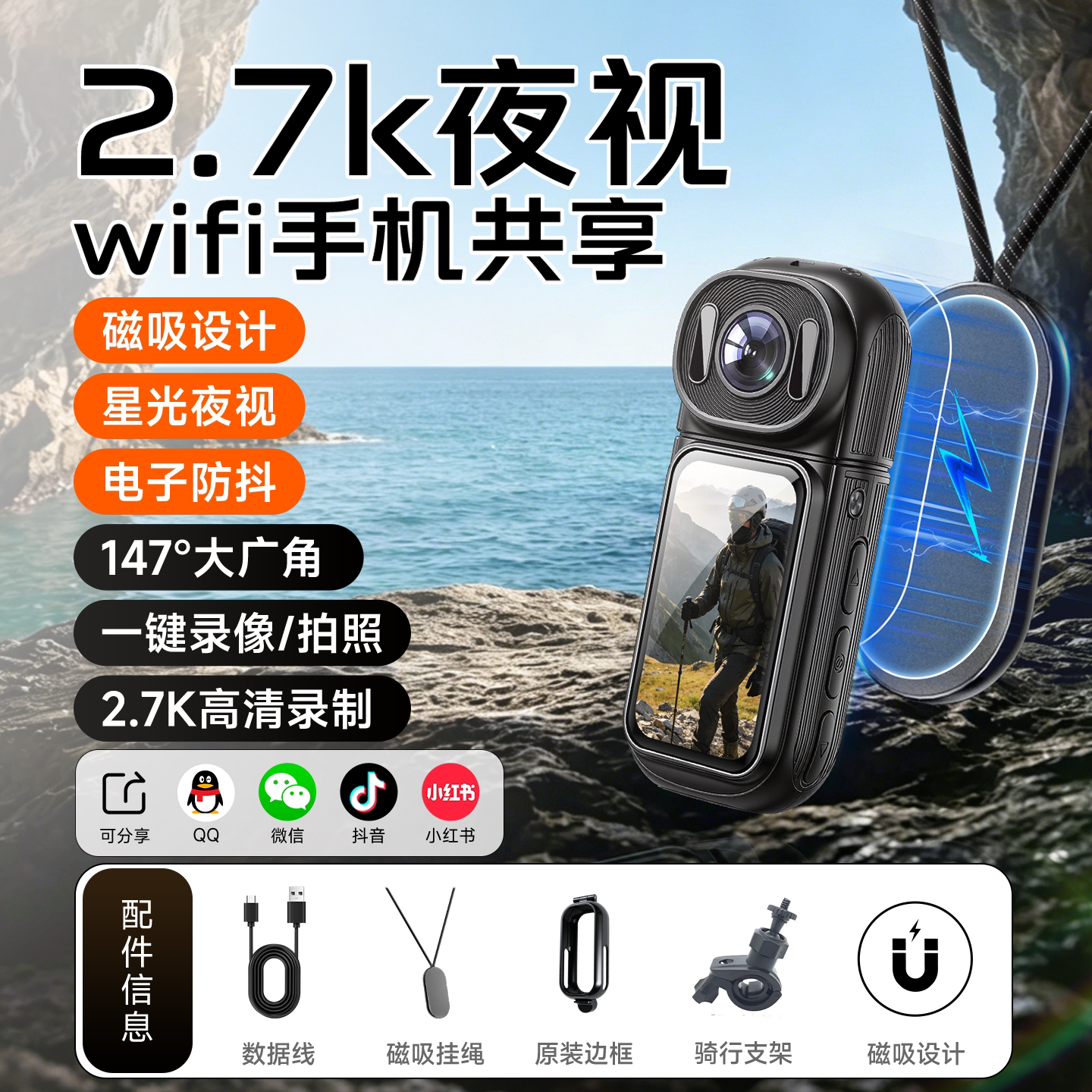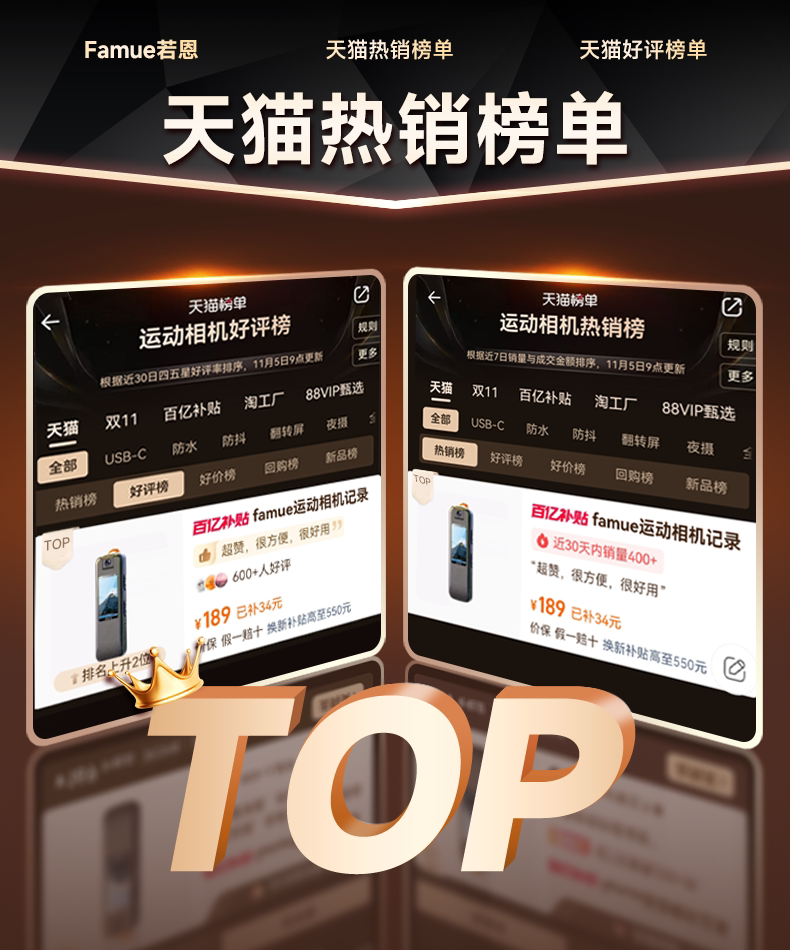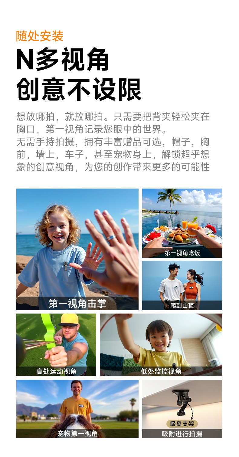 Famue 运动相机拇指记录仪高清摩托电动专用行车胸前拍随摄录像机