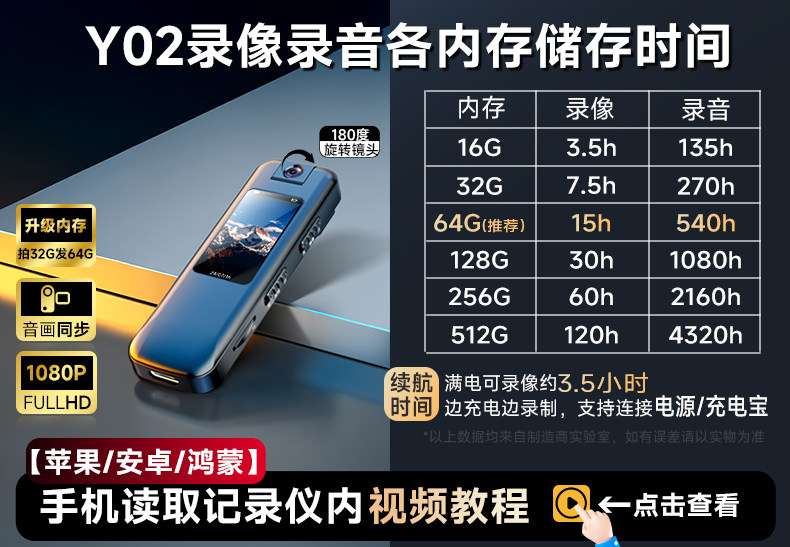【高清平面夜视版.】 / 16G内存【录音录像一体机】赠读卡器+包运费.