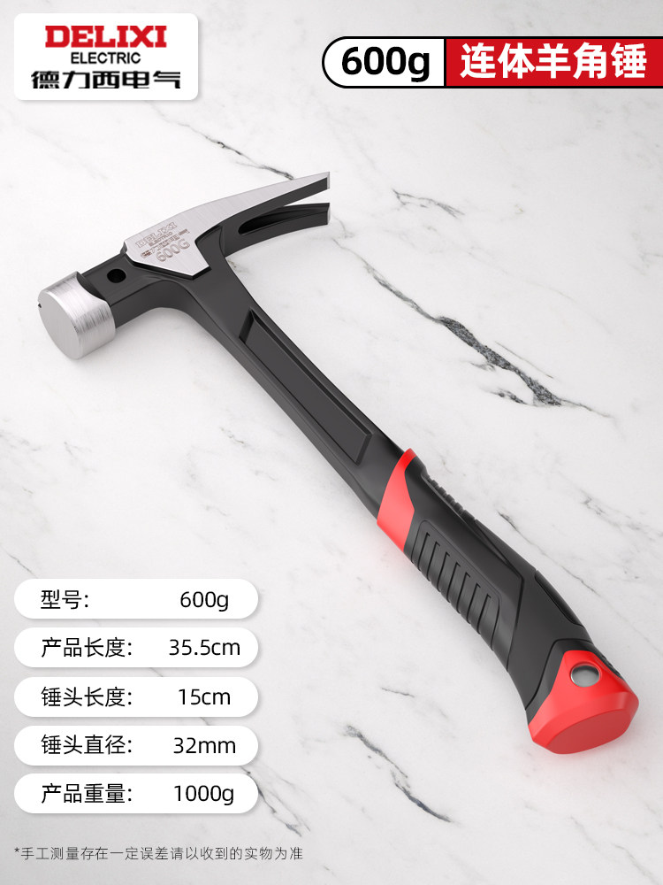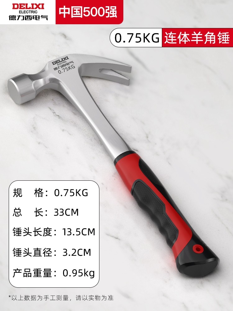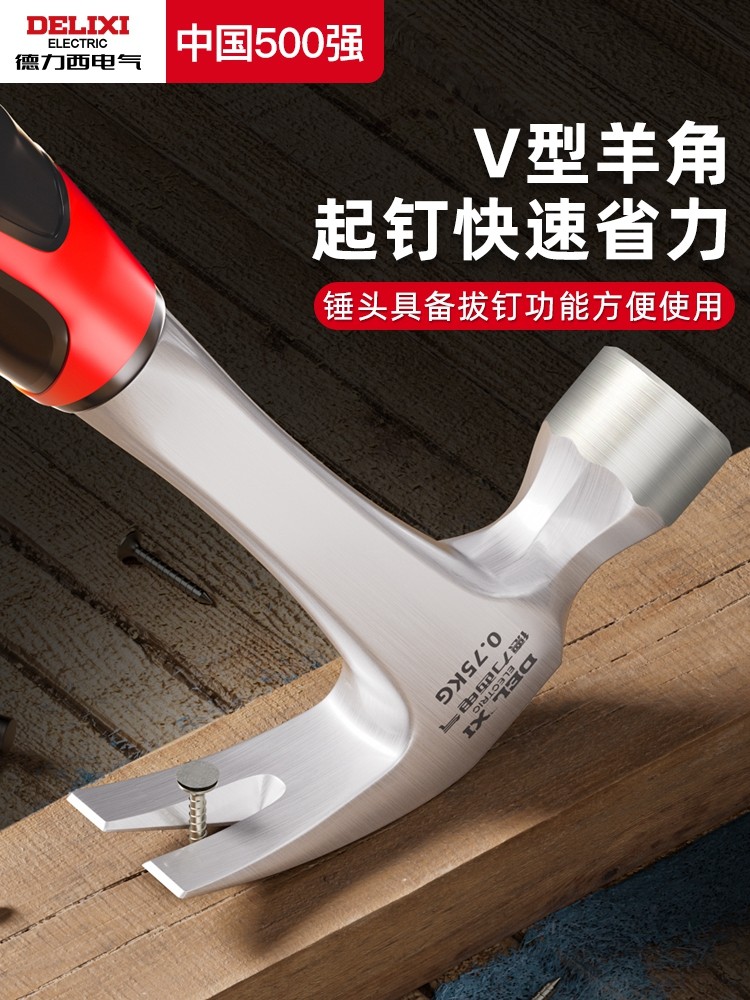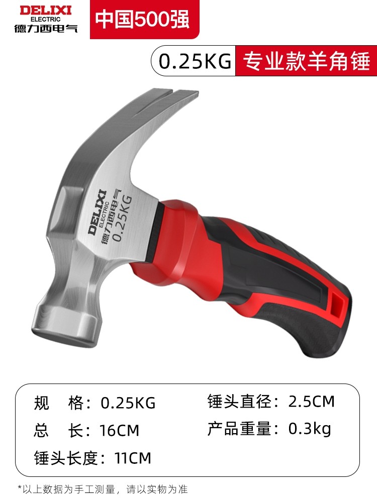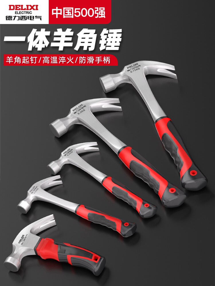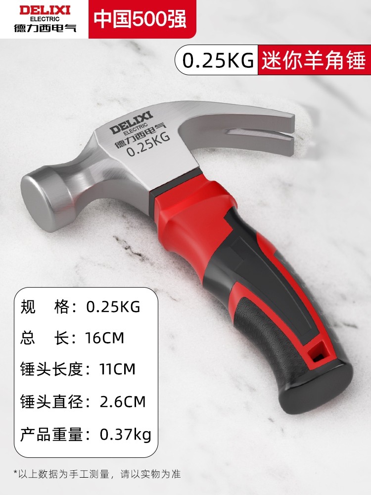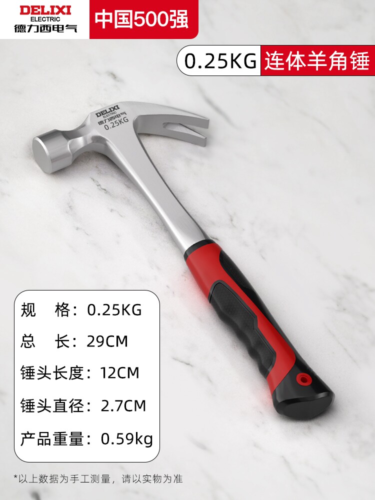 德力西电气锤子铁锤羊角锤家用榔头手工小钉锤木工专用一体成型锤