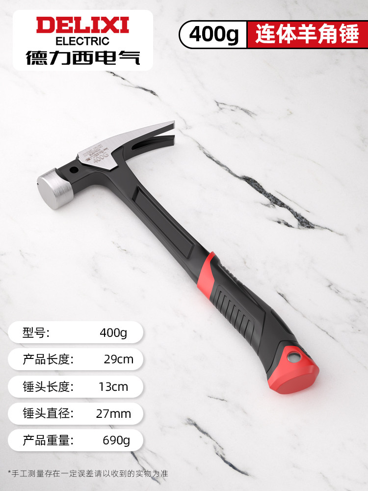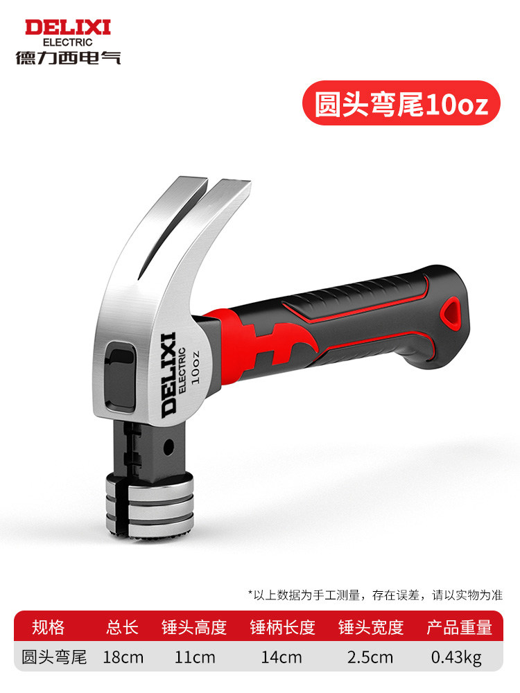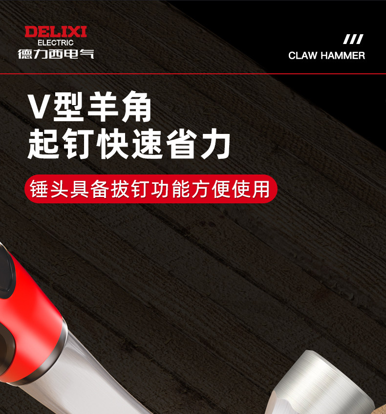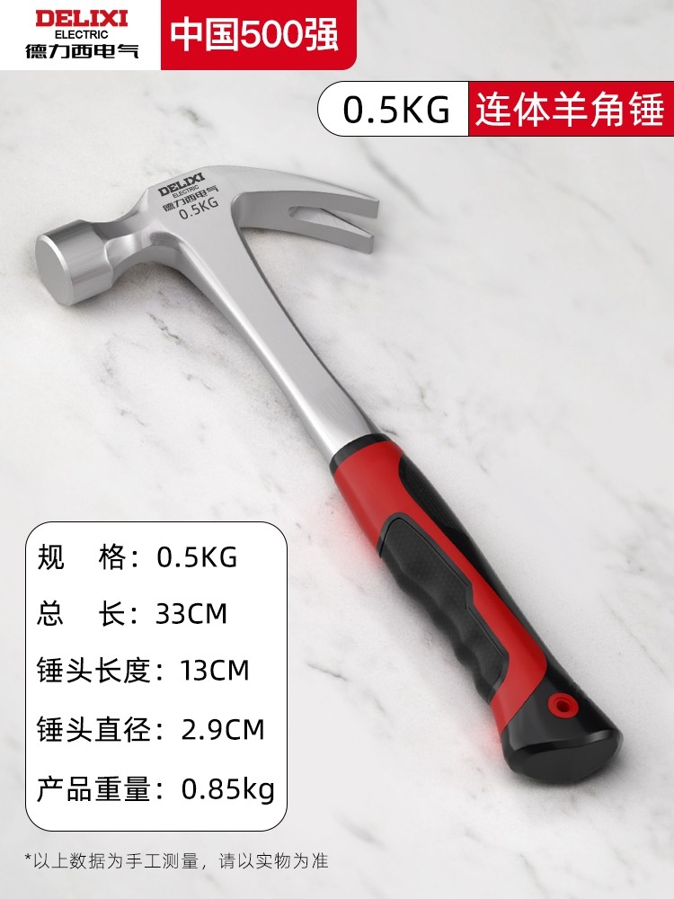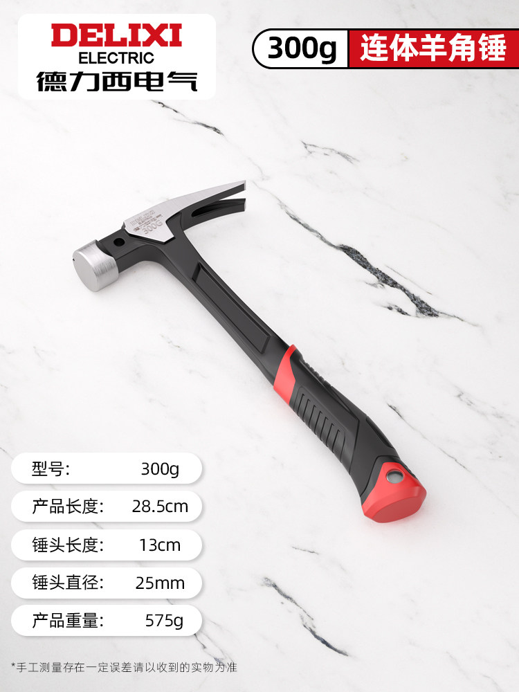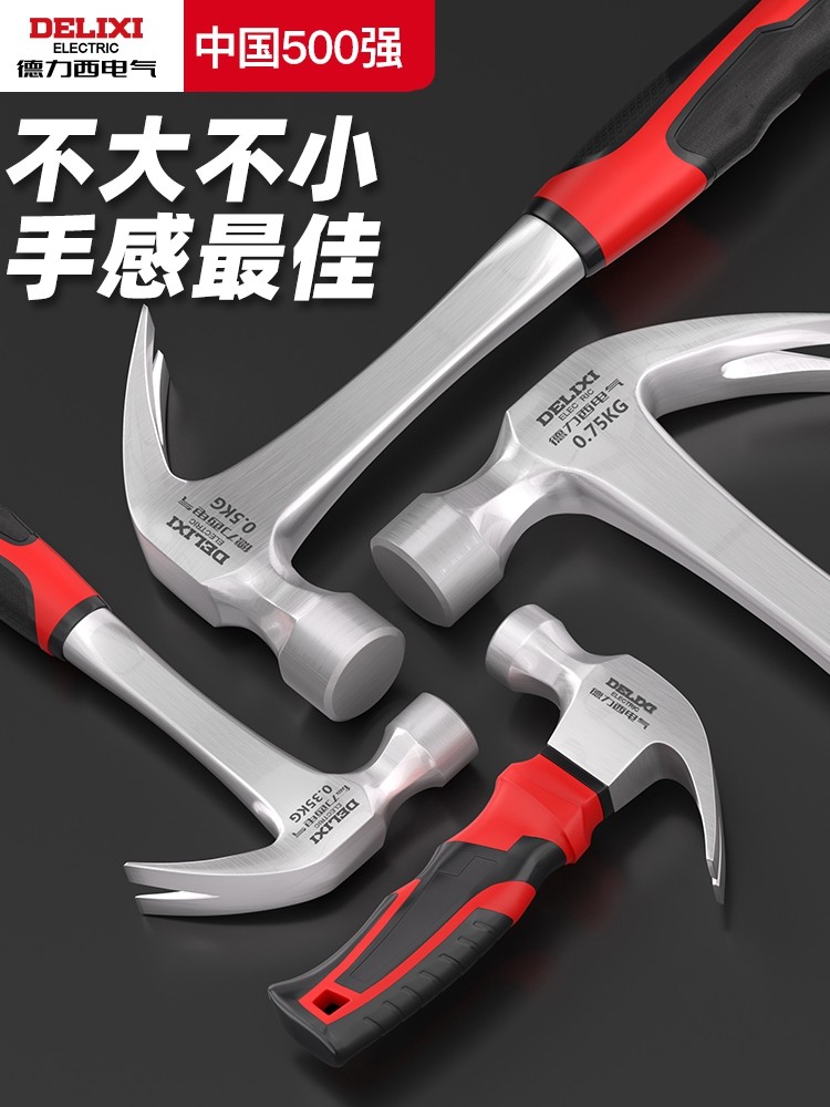 德力西电气锤子铁锤羊角锤家用榔头手工小钉锤木工专用一体成型锤