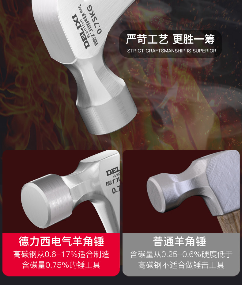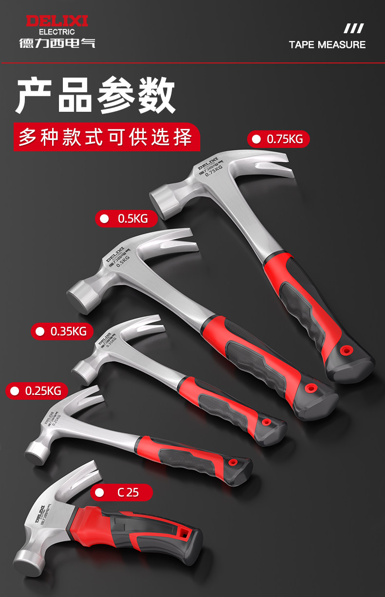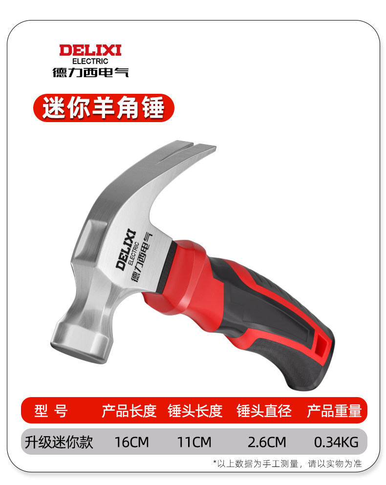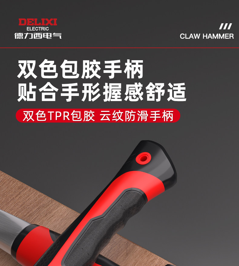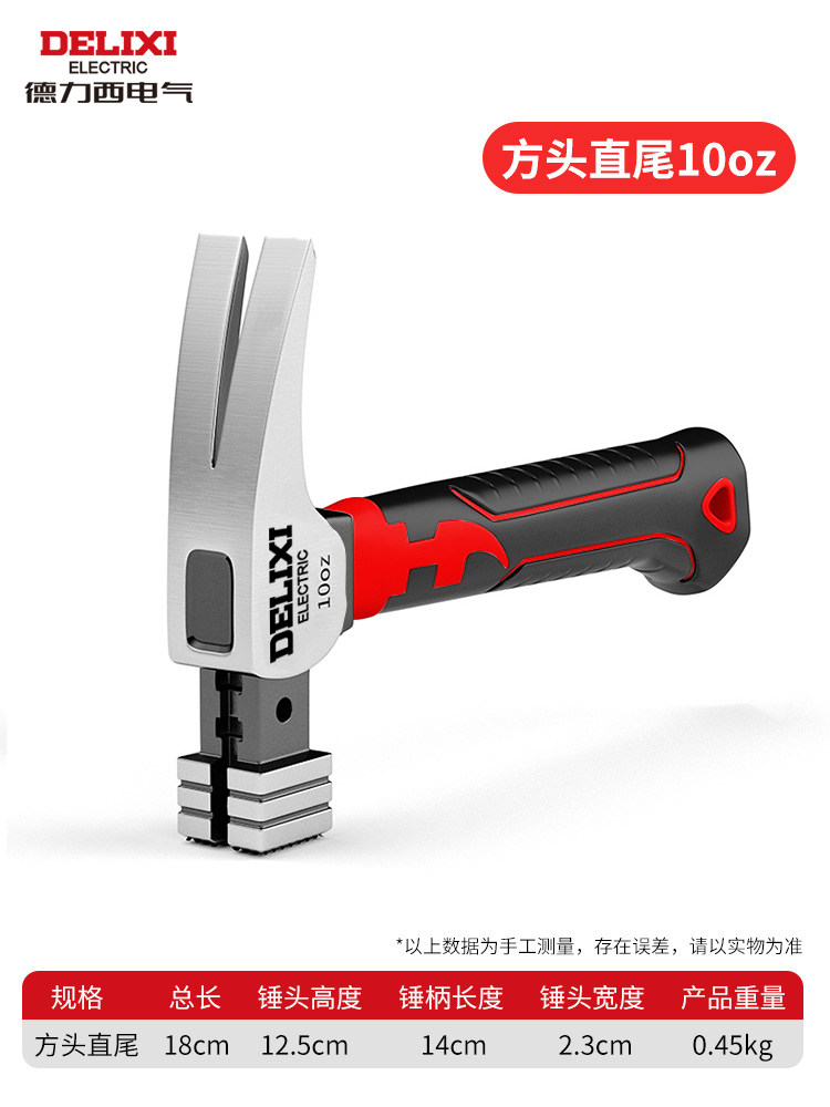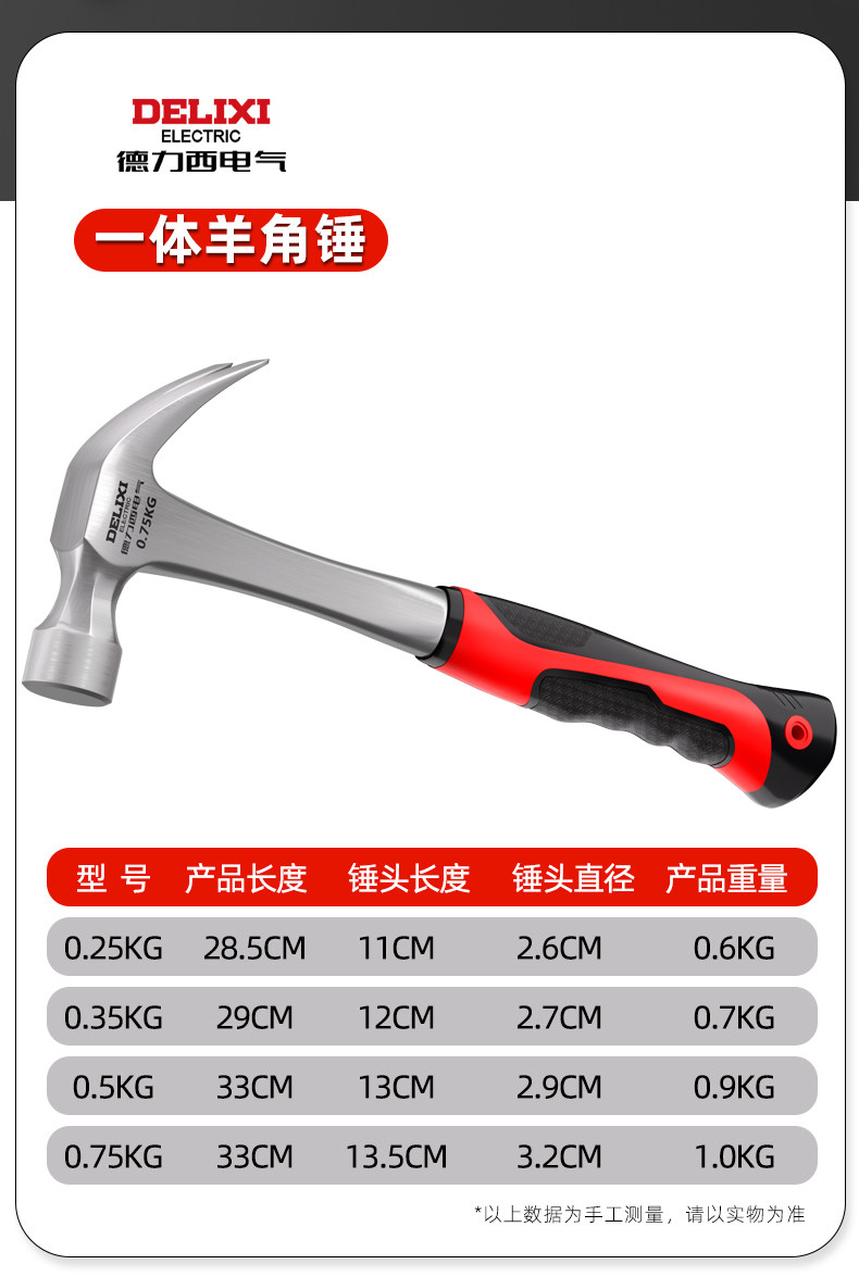 德力西电气锤子铁锤羊角锤家用榔头手工小钉锤木工专用一体成型锤