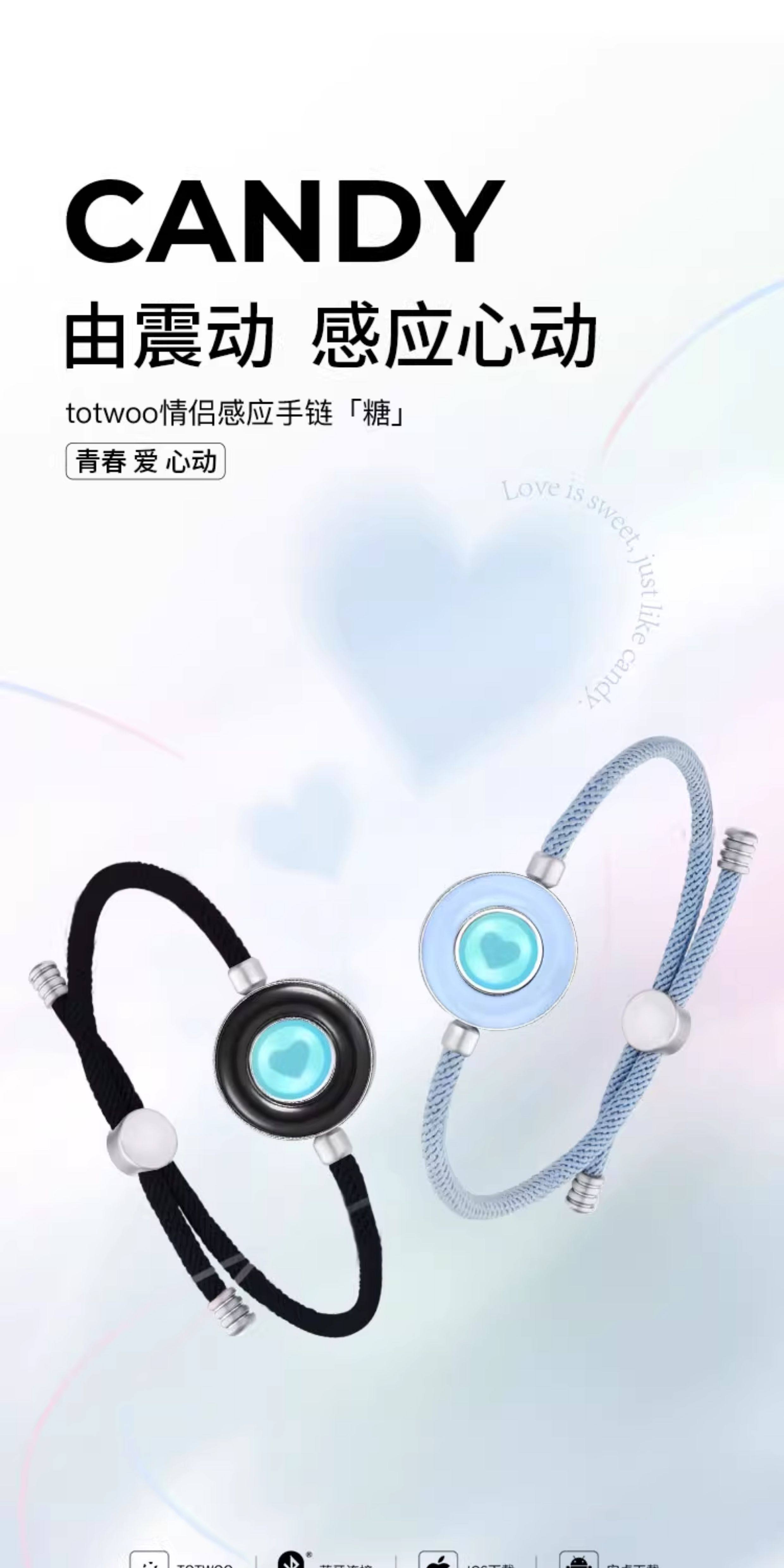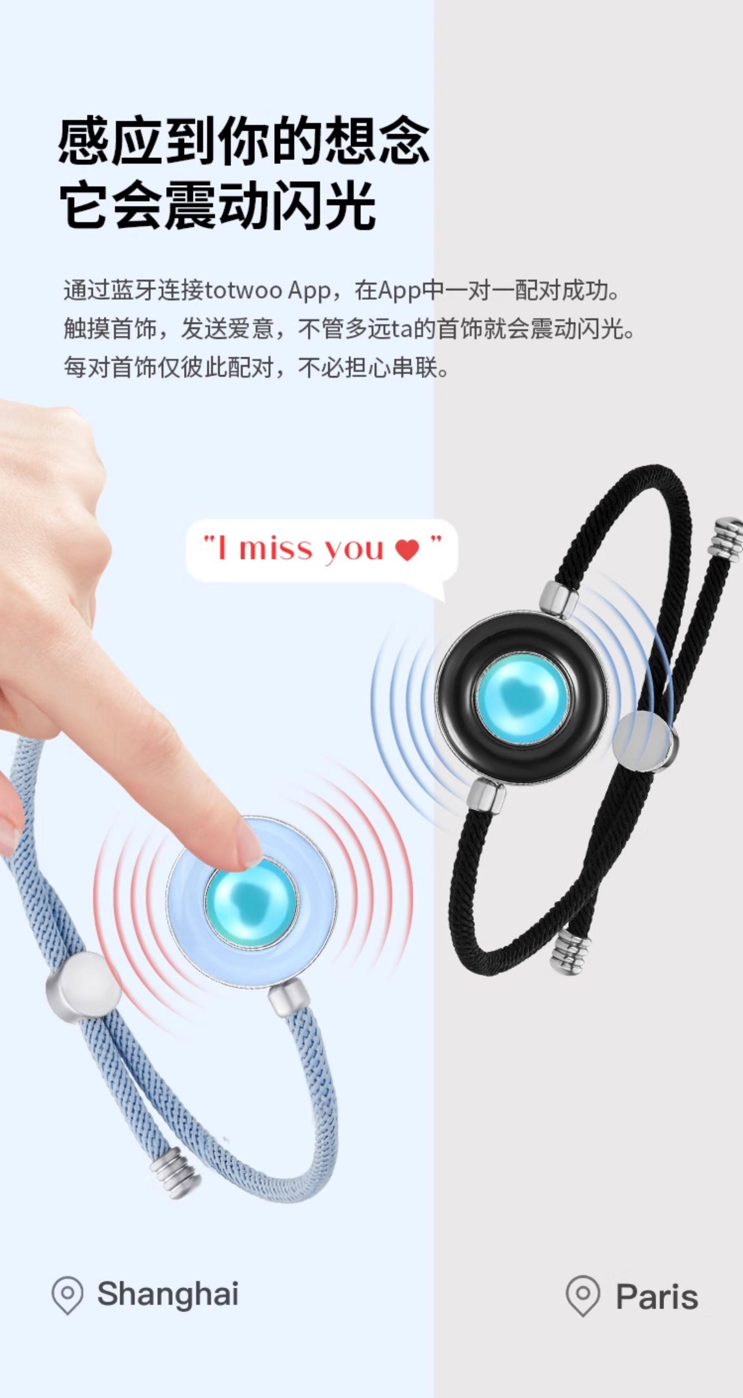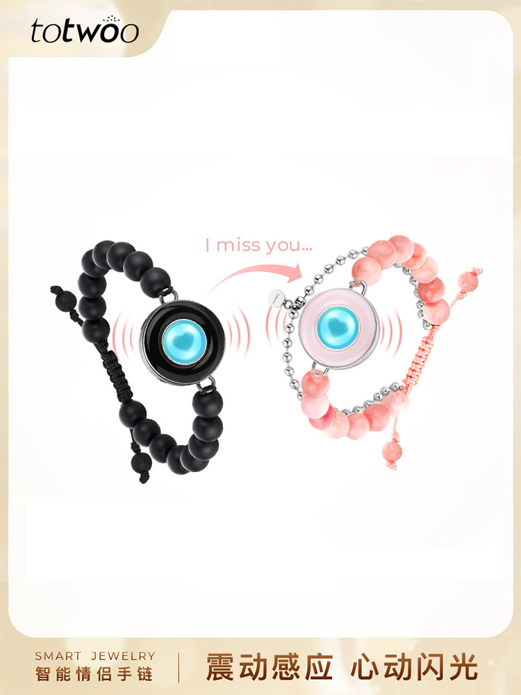 totwoo智能感应情侣手链一对高级感原创异地恋震动闪光送朋友礼品