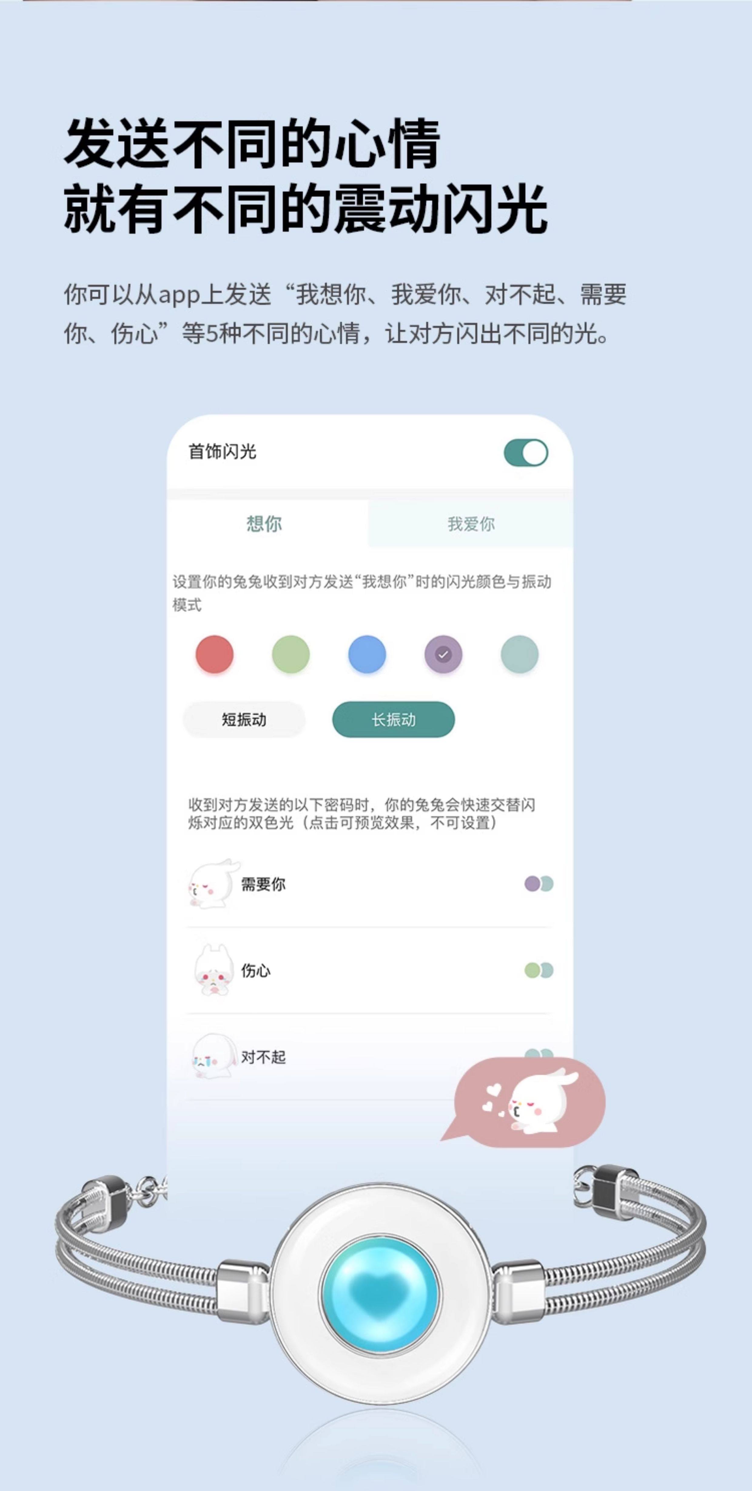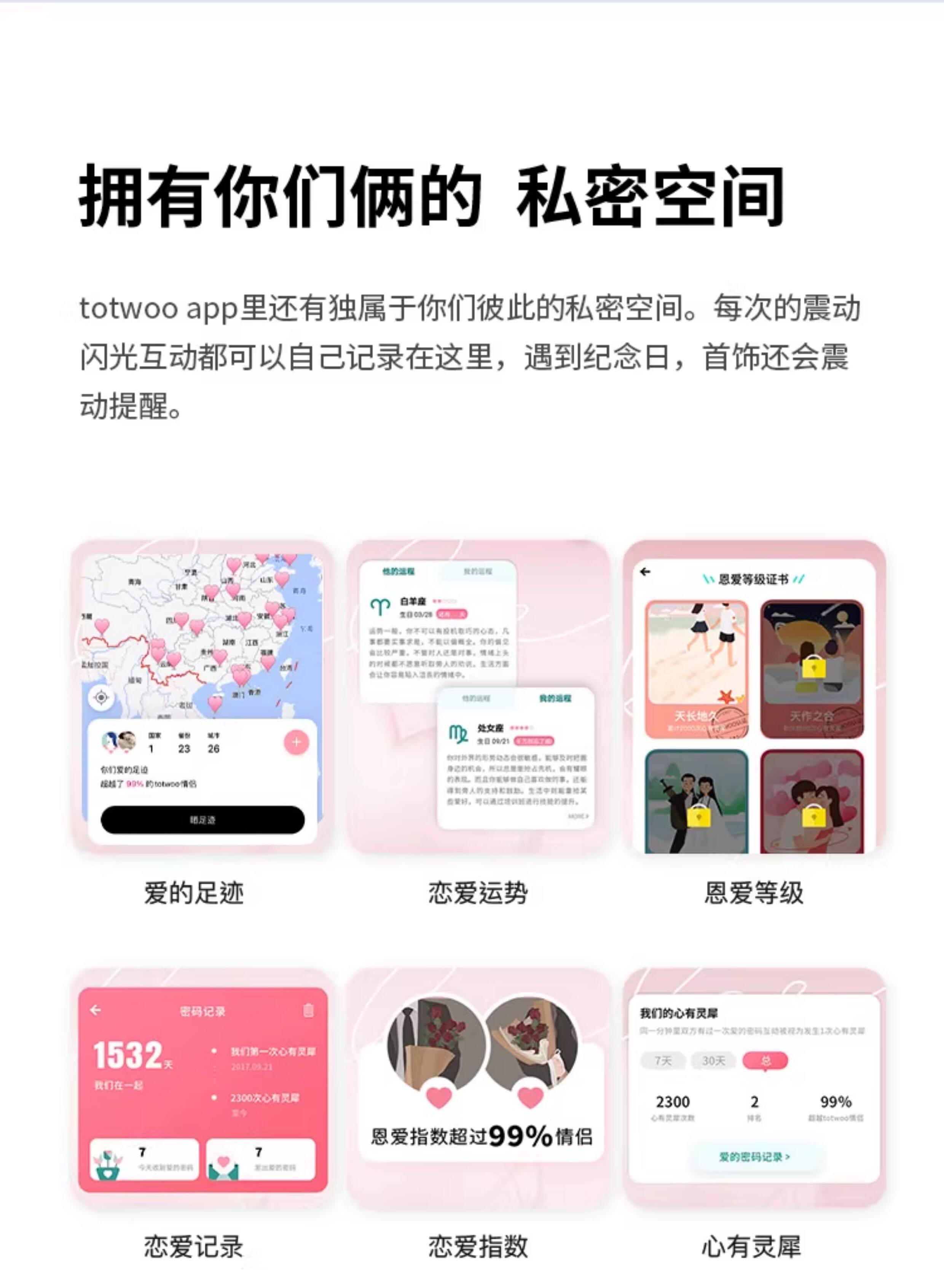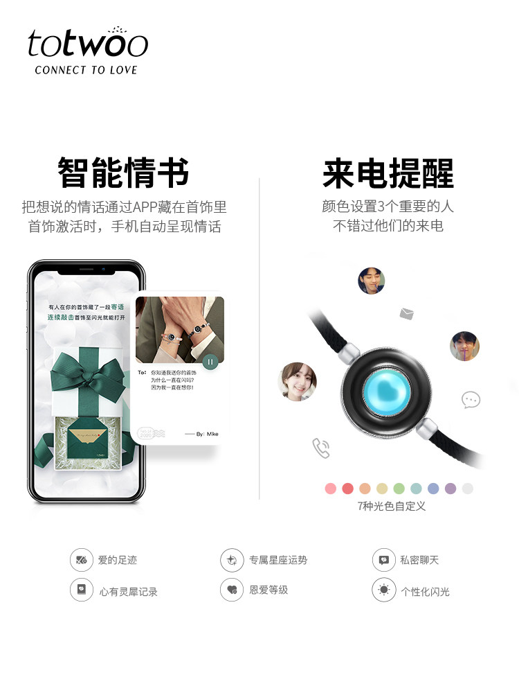 totwoo智能感应情侣手链一对高级感原创异地恋震动闪光送朋友礼品