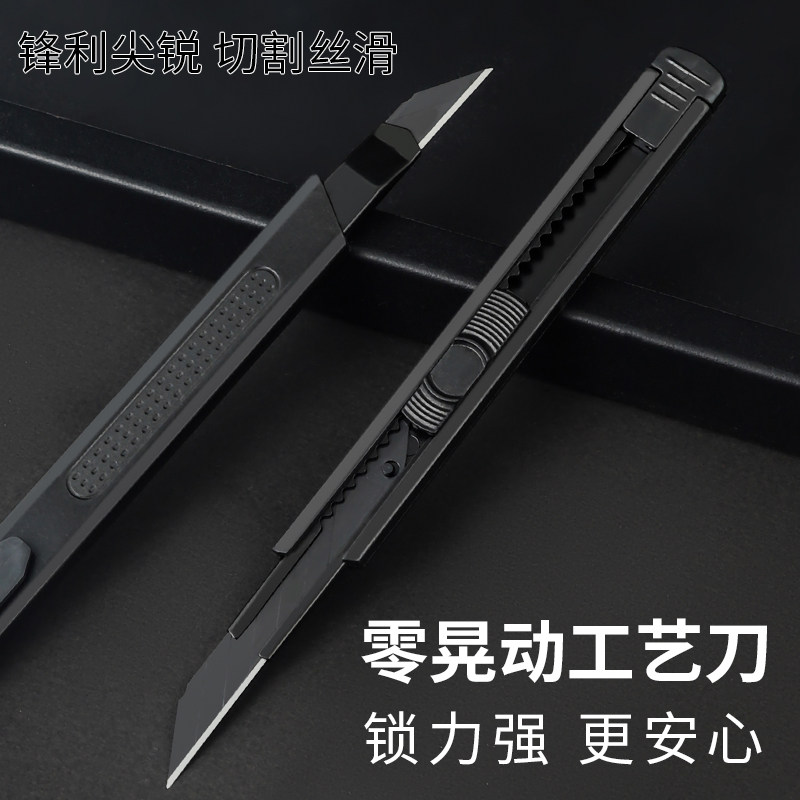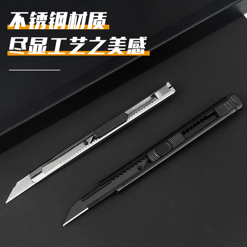 美工刀加厚小型小刀刀片重型多功能黑色不锈钢耐用高颜值壁纸刀拆快递刀架便携美术生迷你小号刻刀