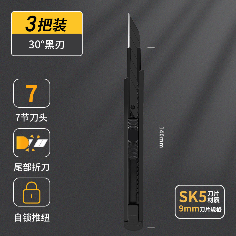 HomeProducts美工刀加厚小型小刀刀片重型多功能黑色不锈钢耐用高颜值壁纸刀拆快递刀架便携美术生迷你小号刻刀