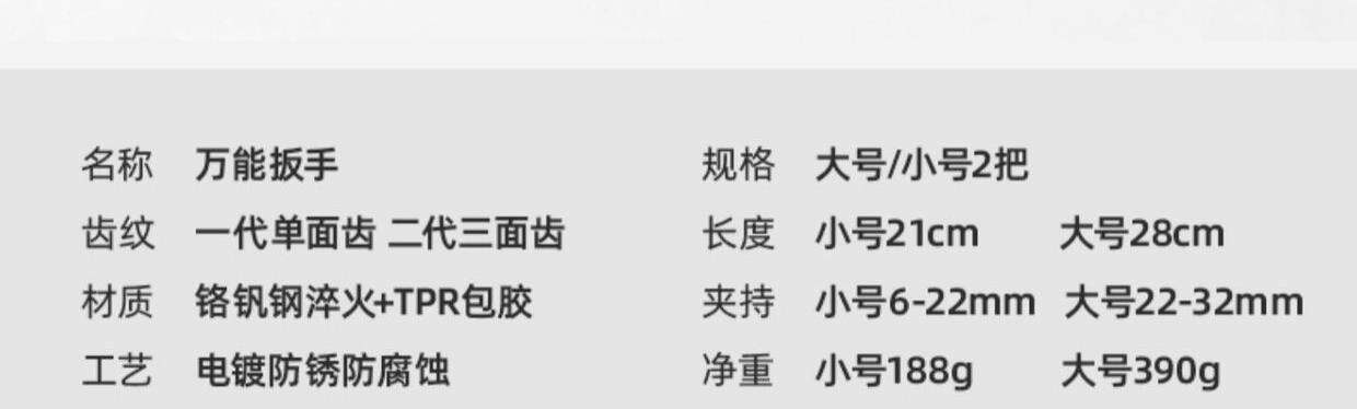 万能扳手工具大全管钳子全套管子钳高碳钢活口板小扳手套装多功能