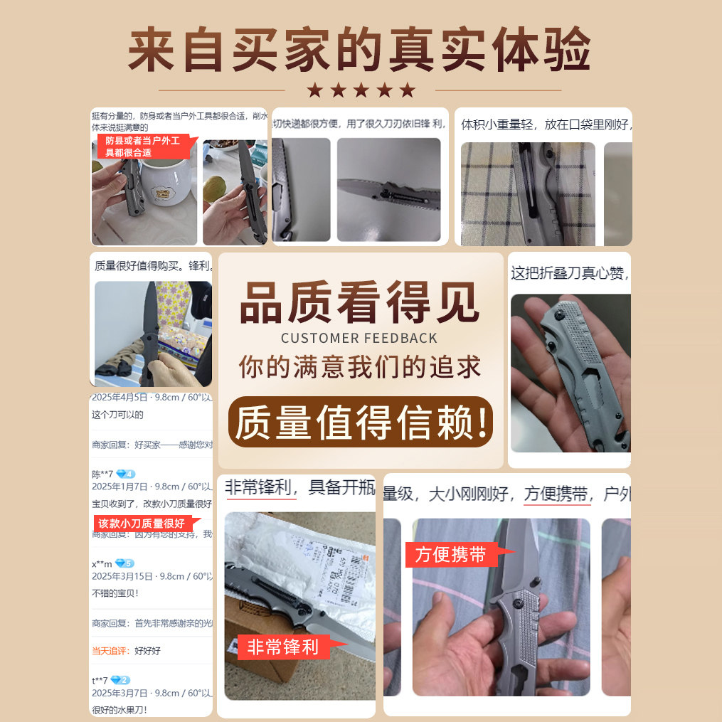 HomeProducts德国户外折叠小刀家用锋利高硬度水果刀具多功能便携防身刀冷兵器