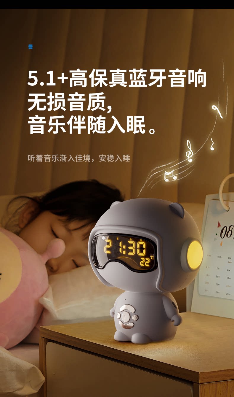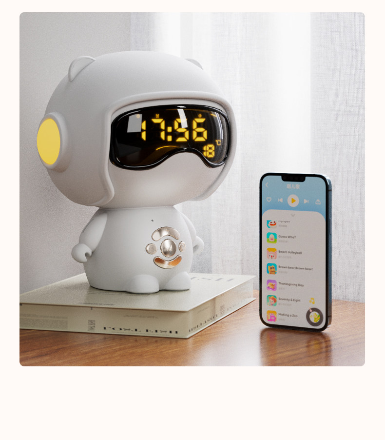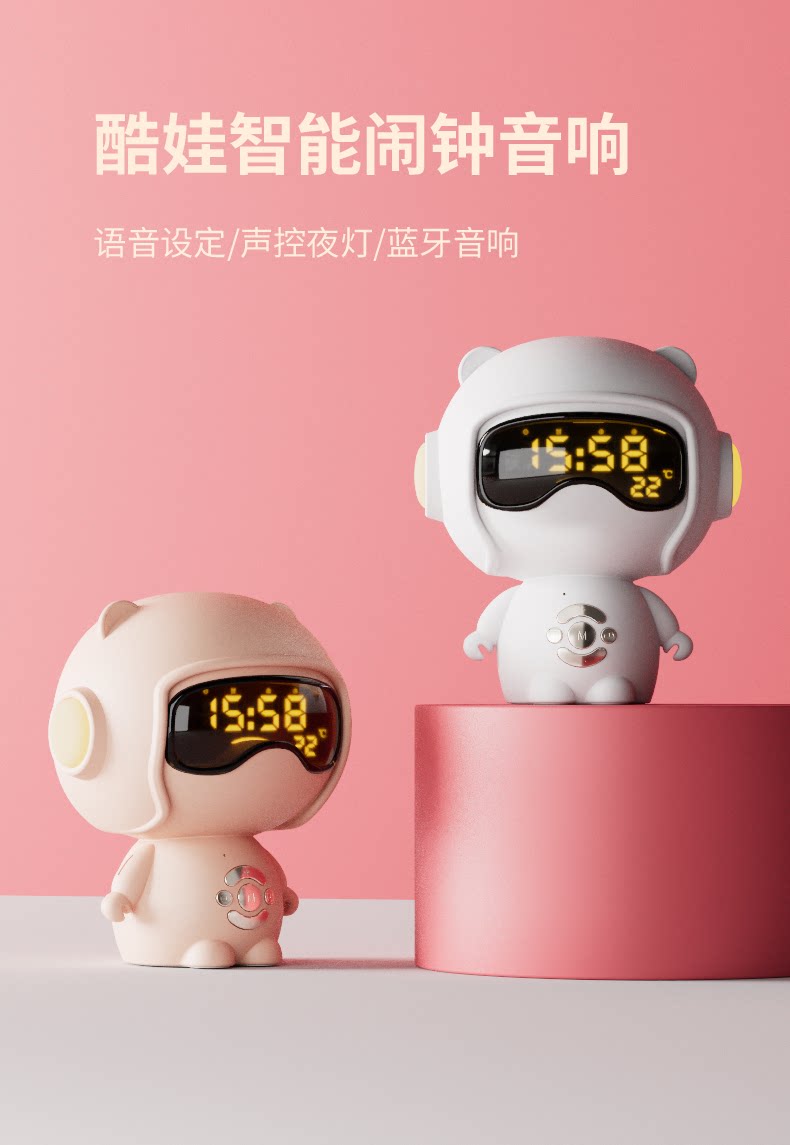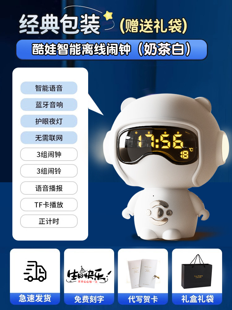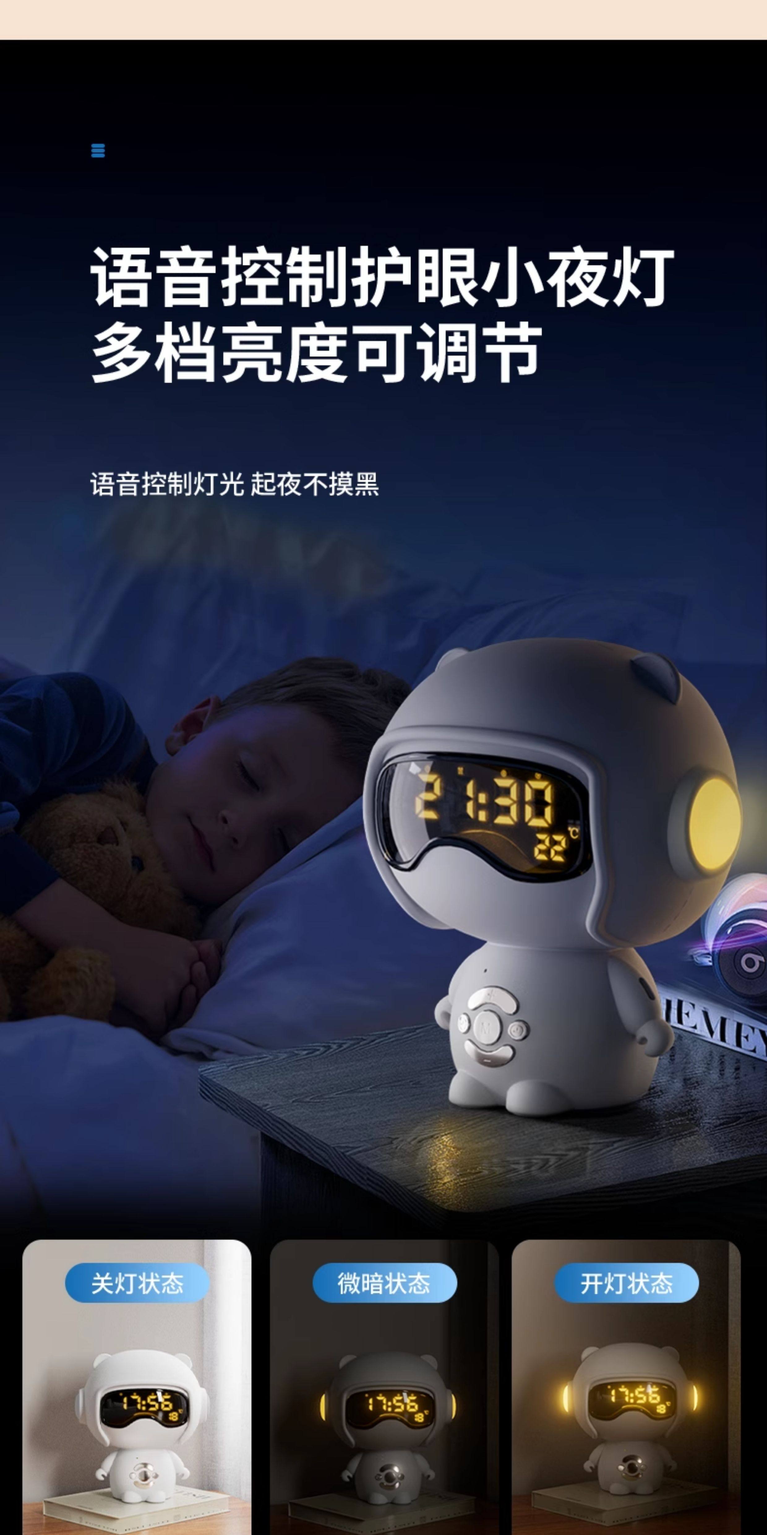 【奶茶白】离线语音+时钟闹钟+蓝牙音乐+助眠夜灯