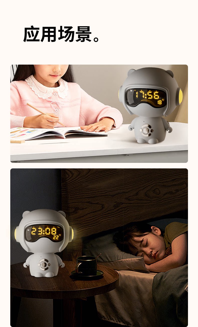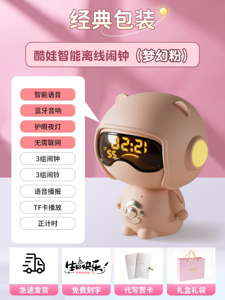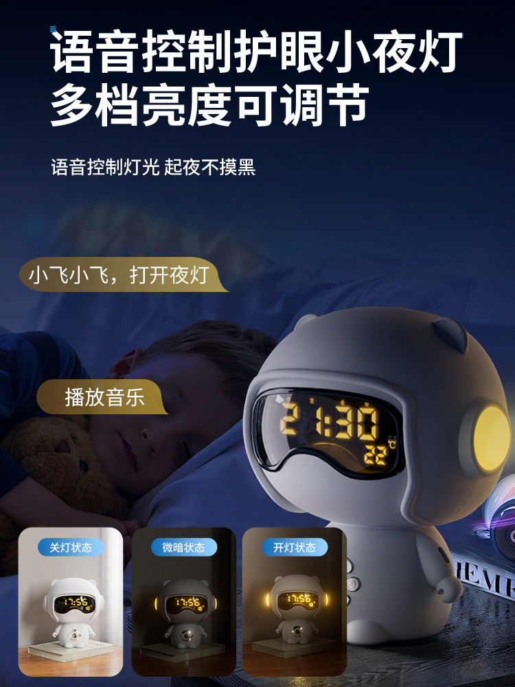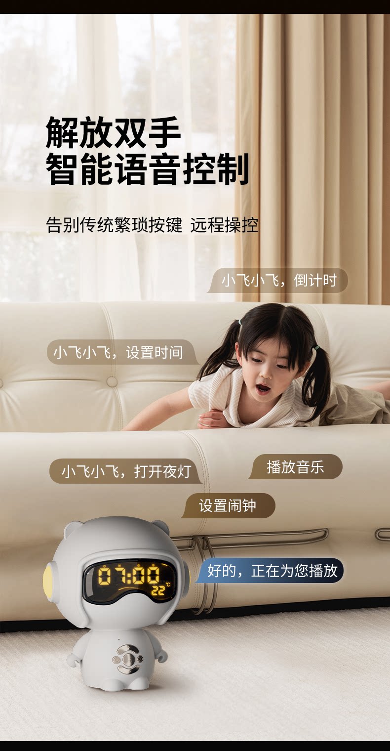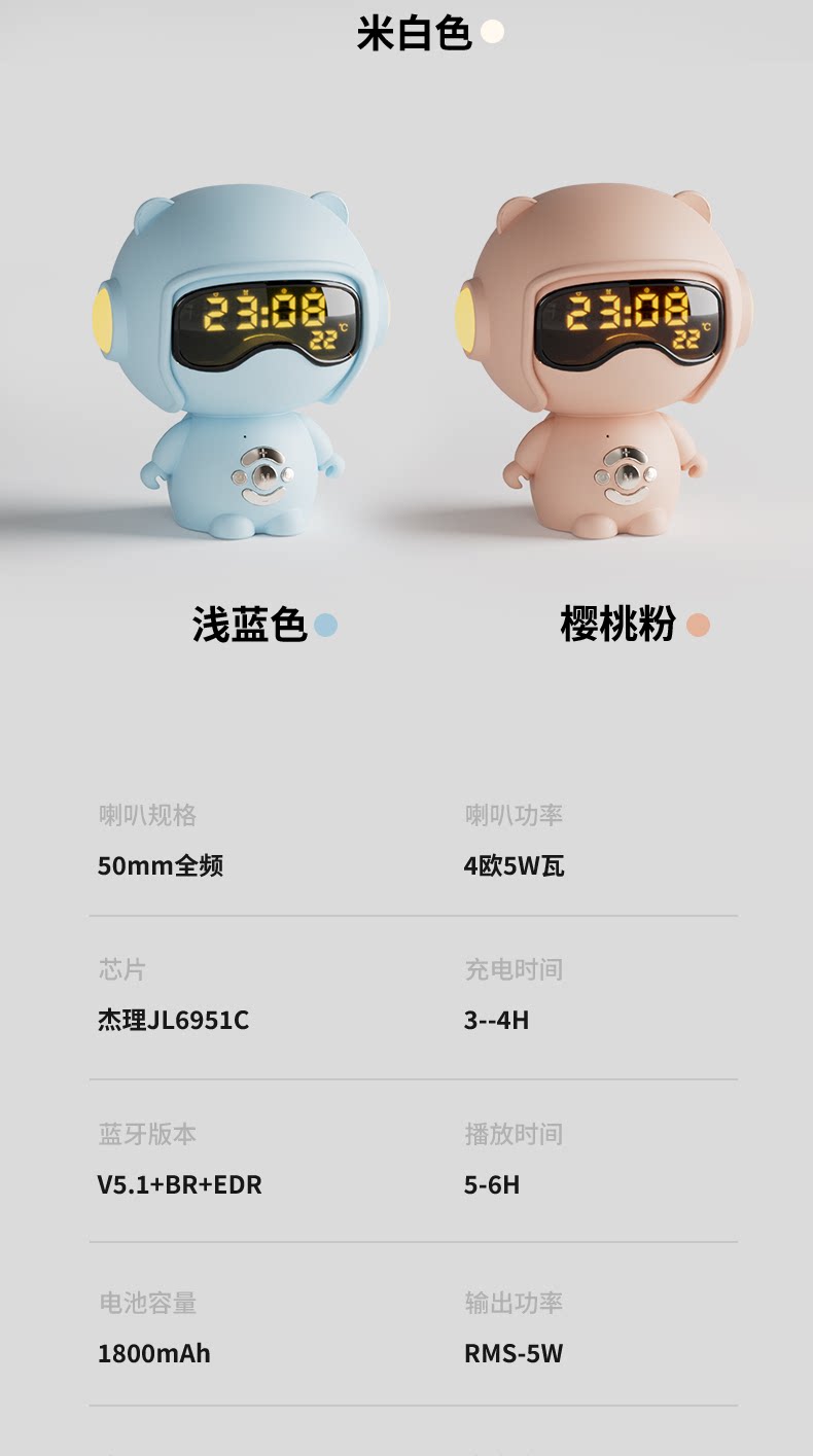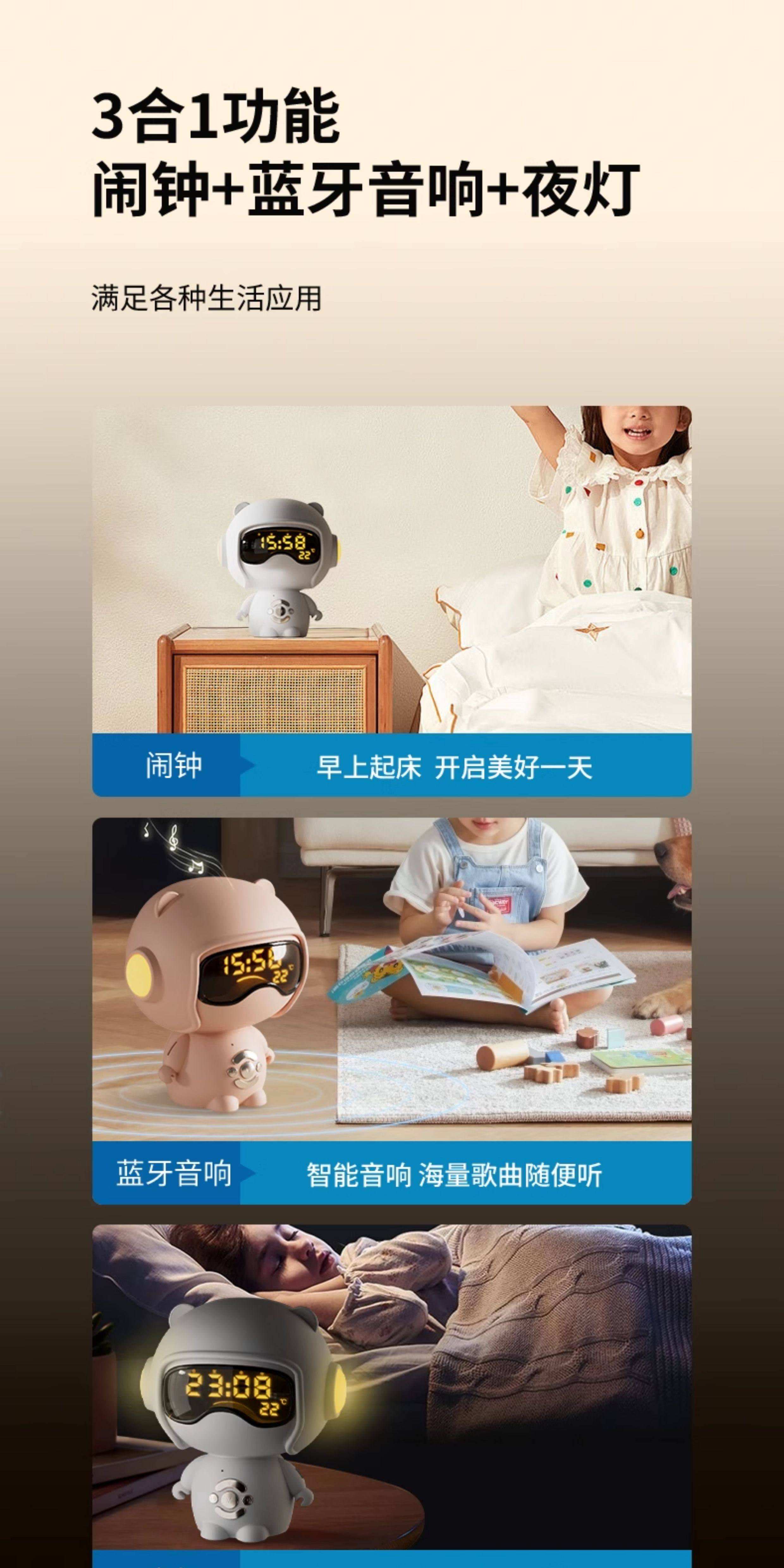 【奶茶白】离线语音+时钟闹钟+蓝牙音乐+助眠夜灯