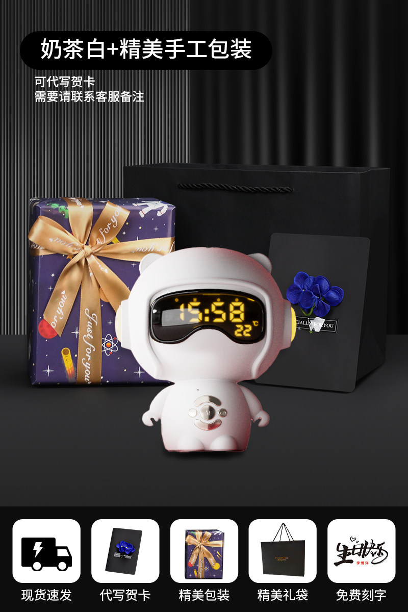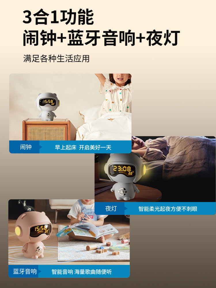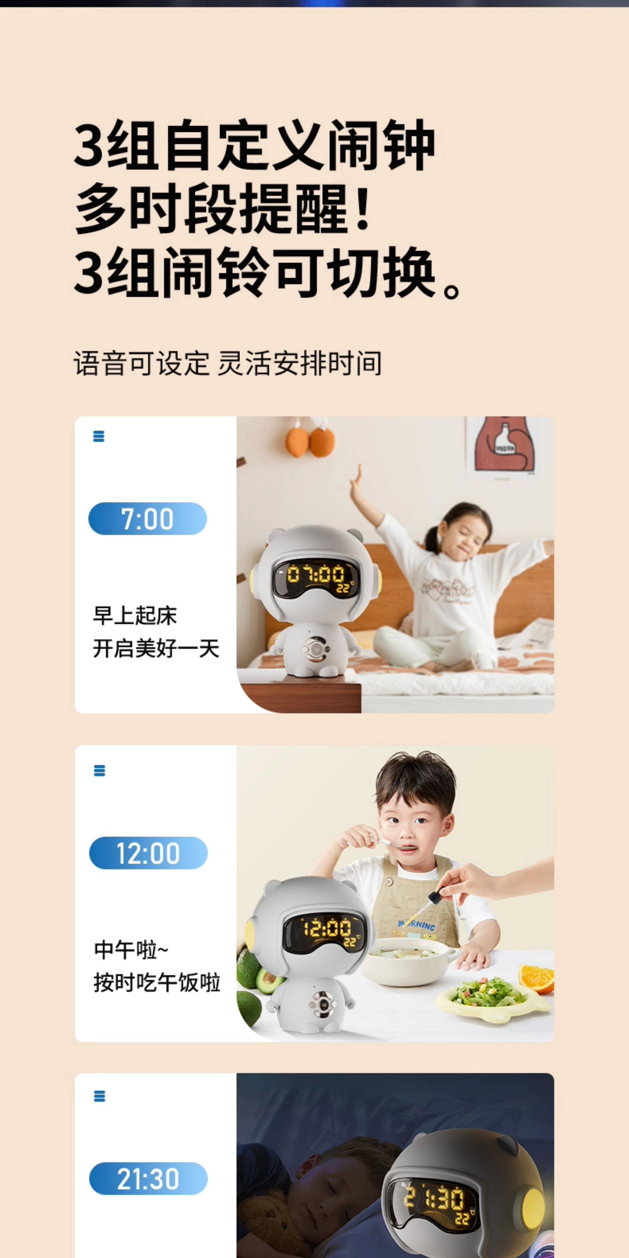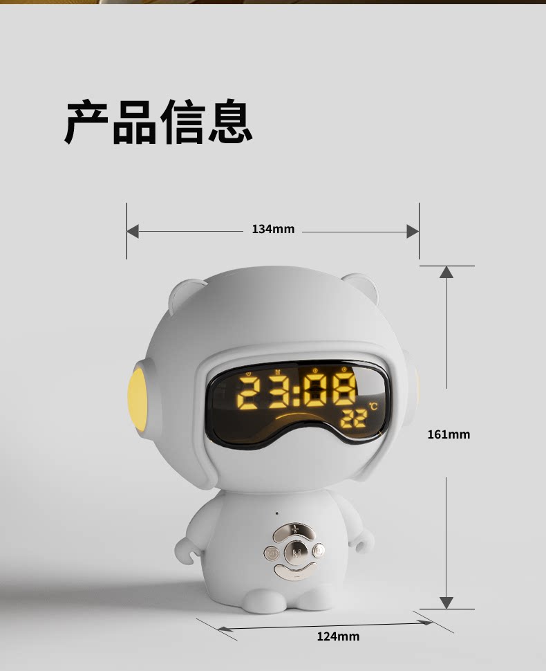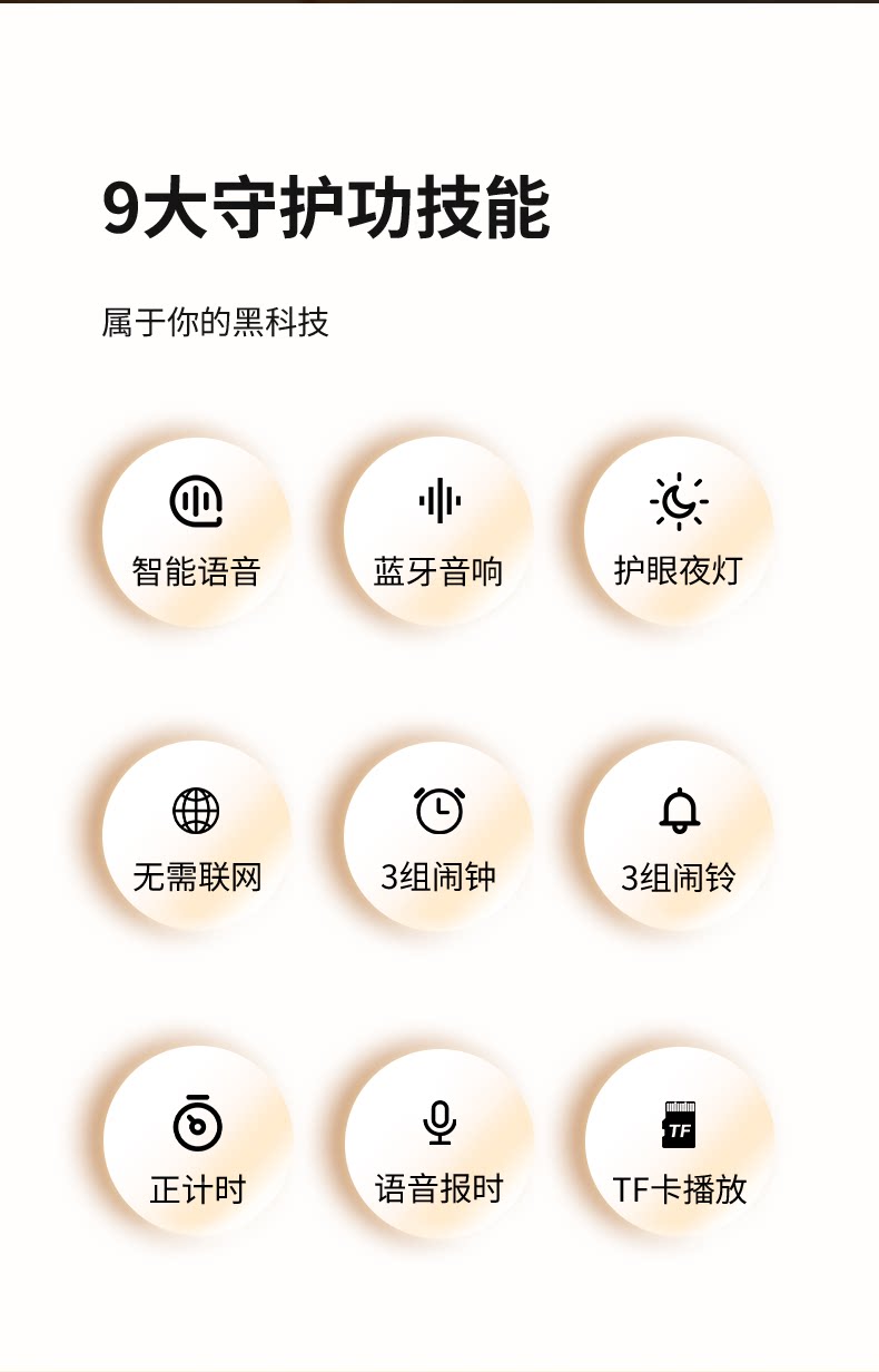 【奶茶白】离线语音+时钟闹钟+蓝牙音乐+助眠夜灯