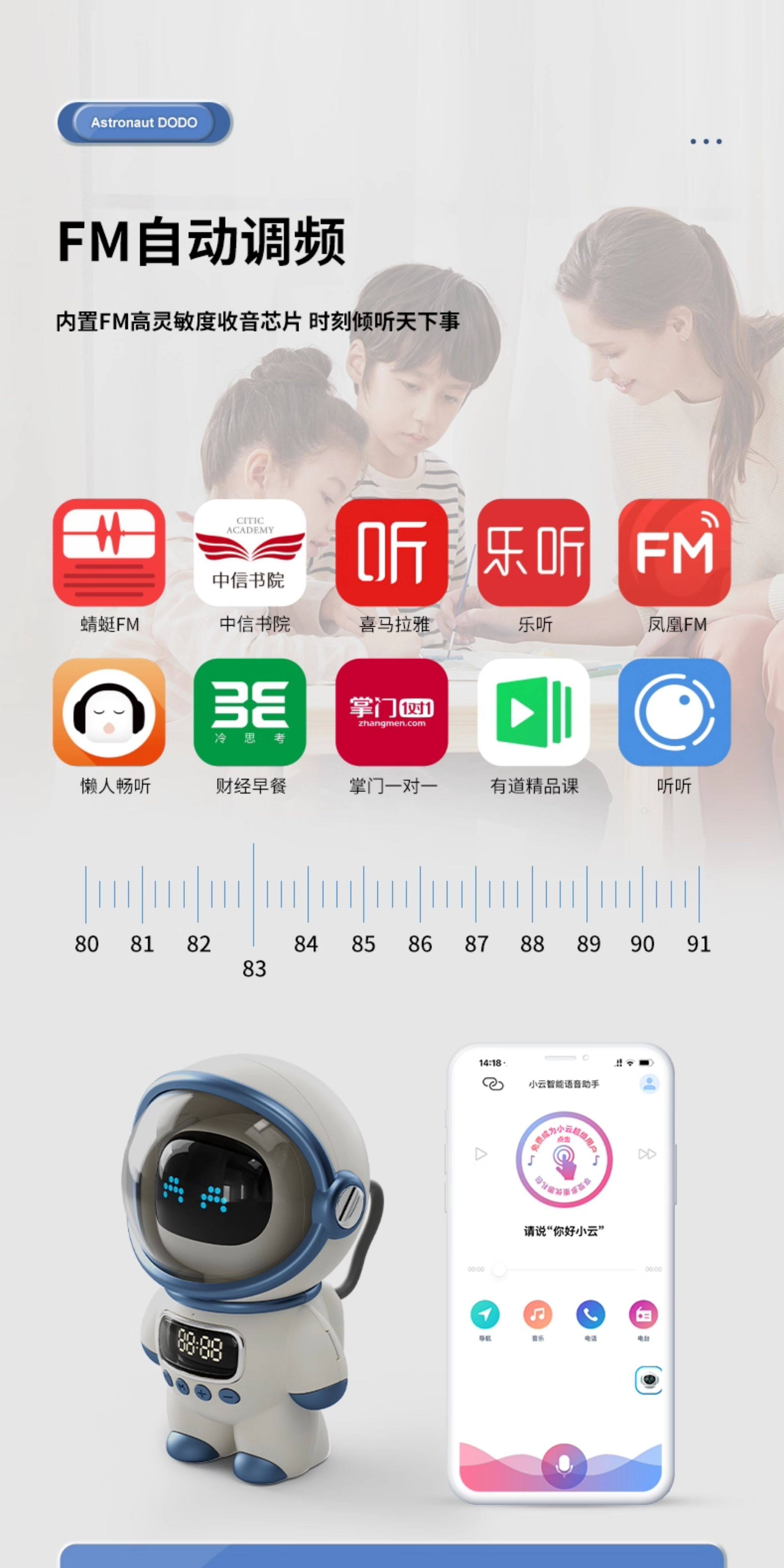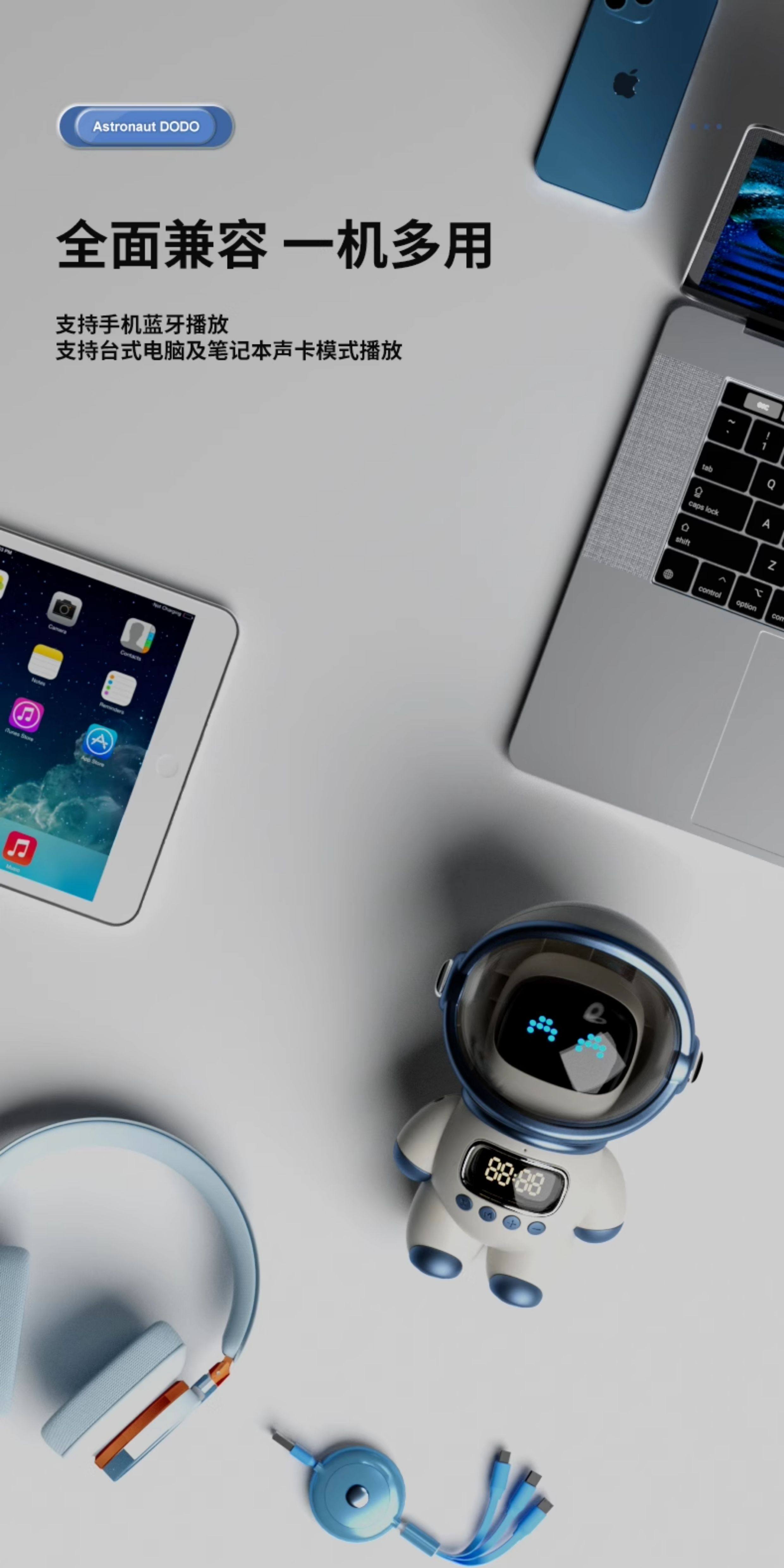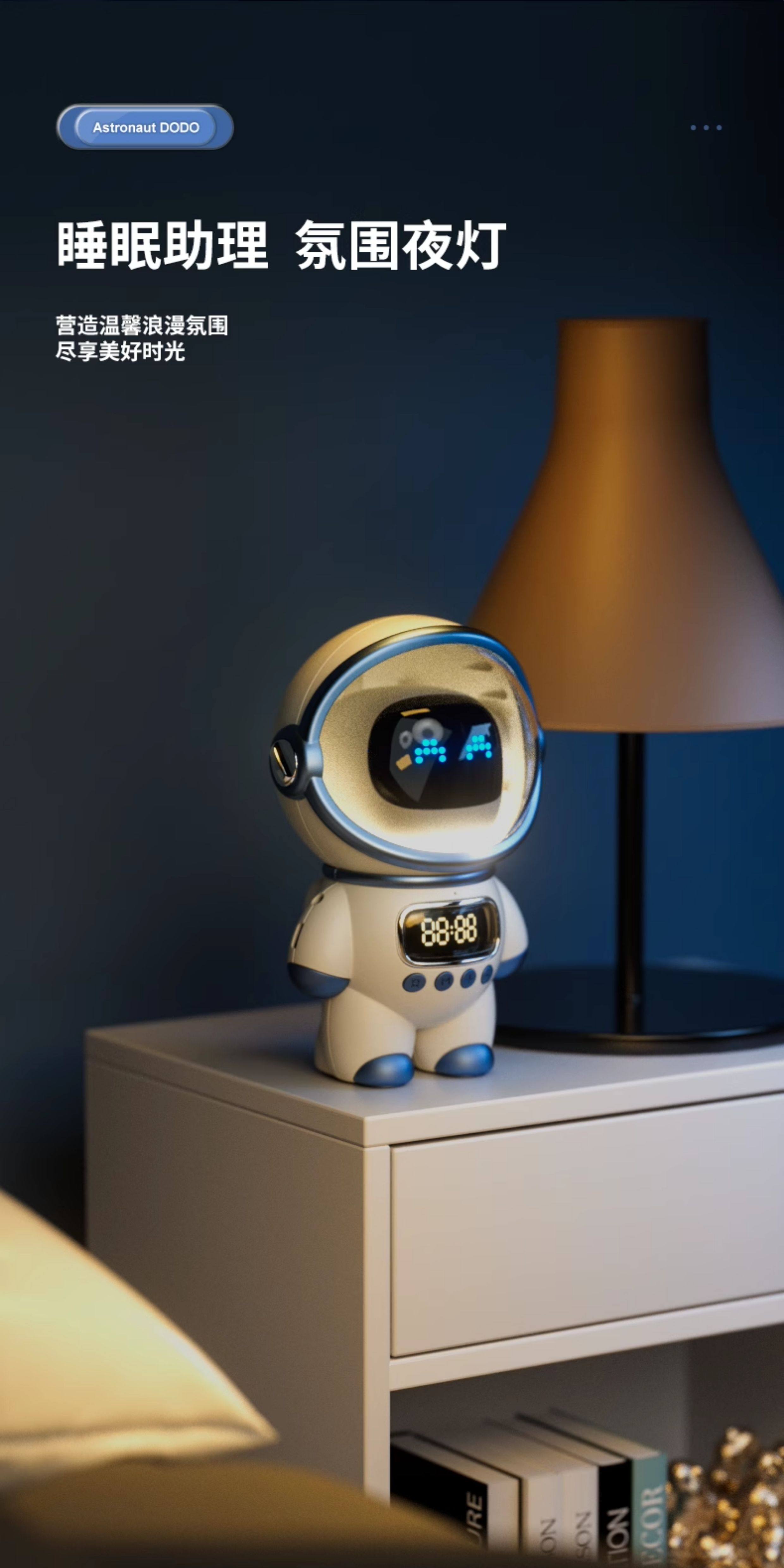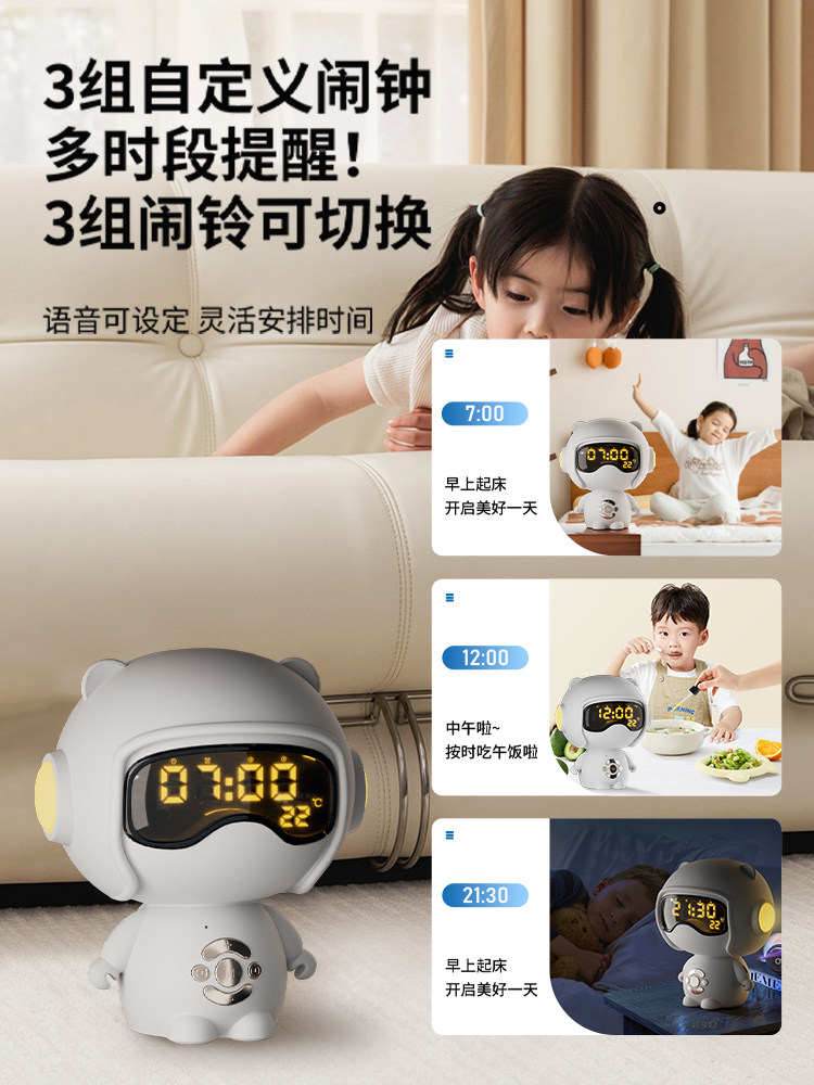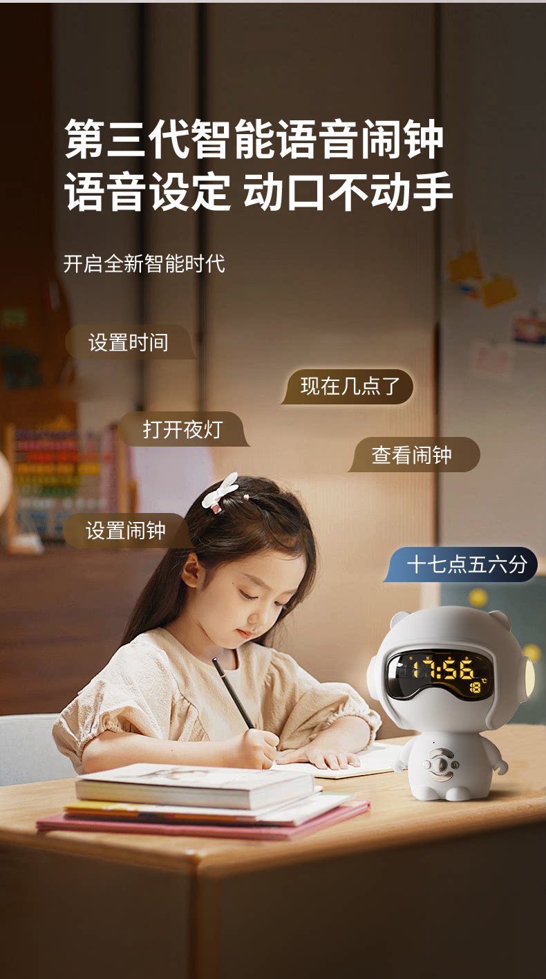 【奶茶白】离线语音+时钟闹钟+蓝牙音乐+助眠夜灯