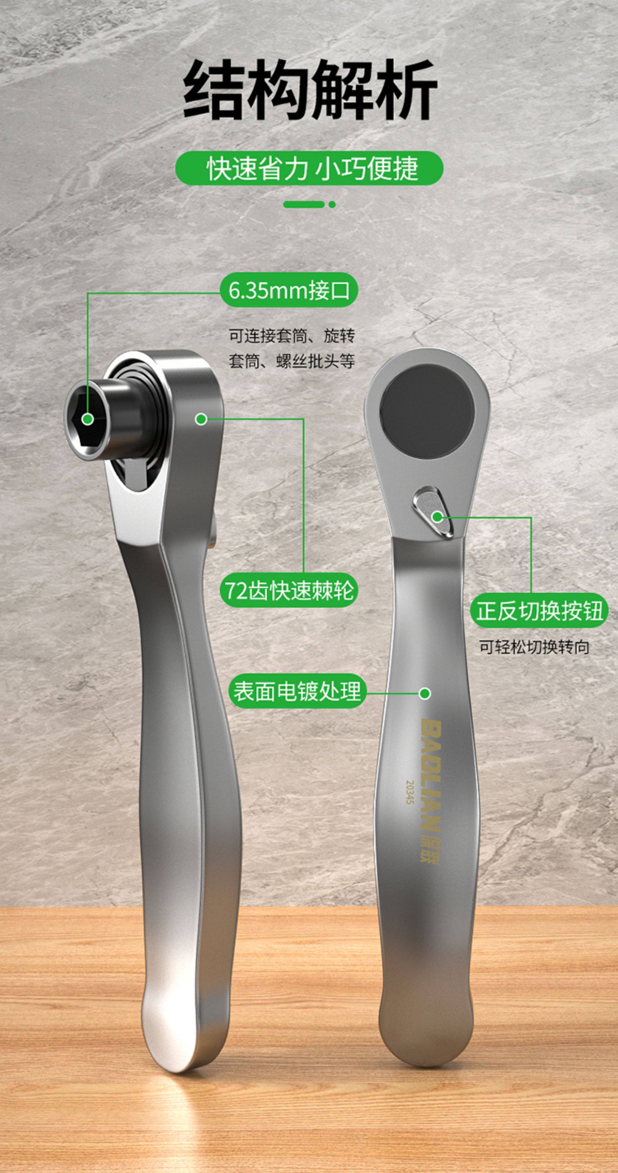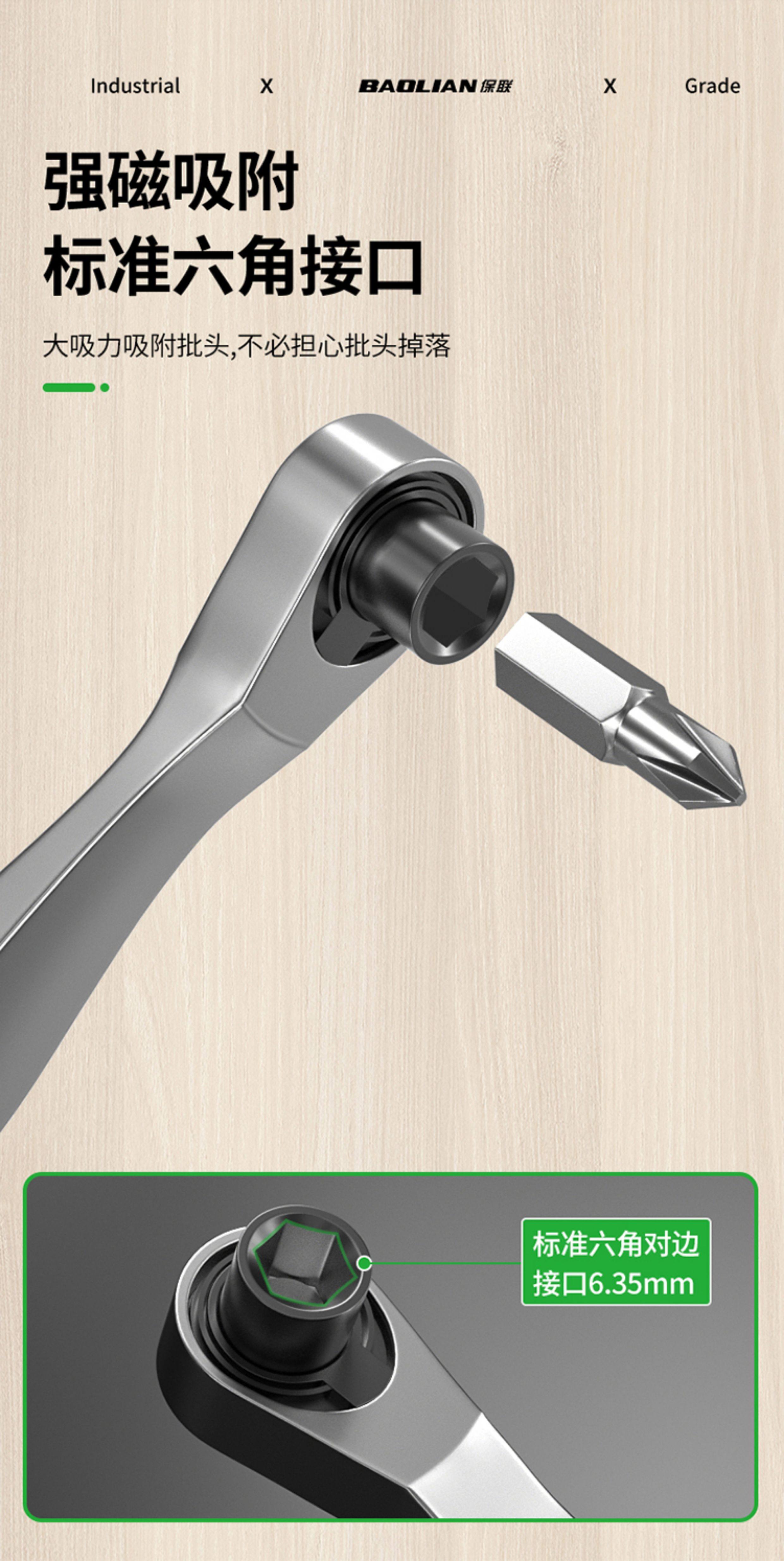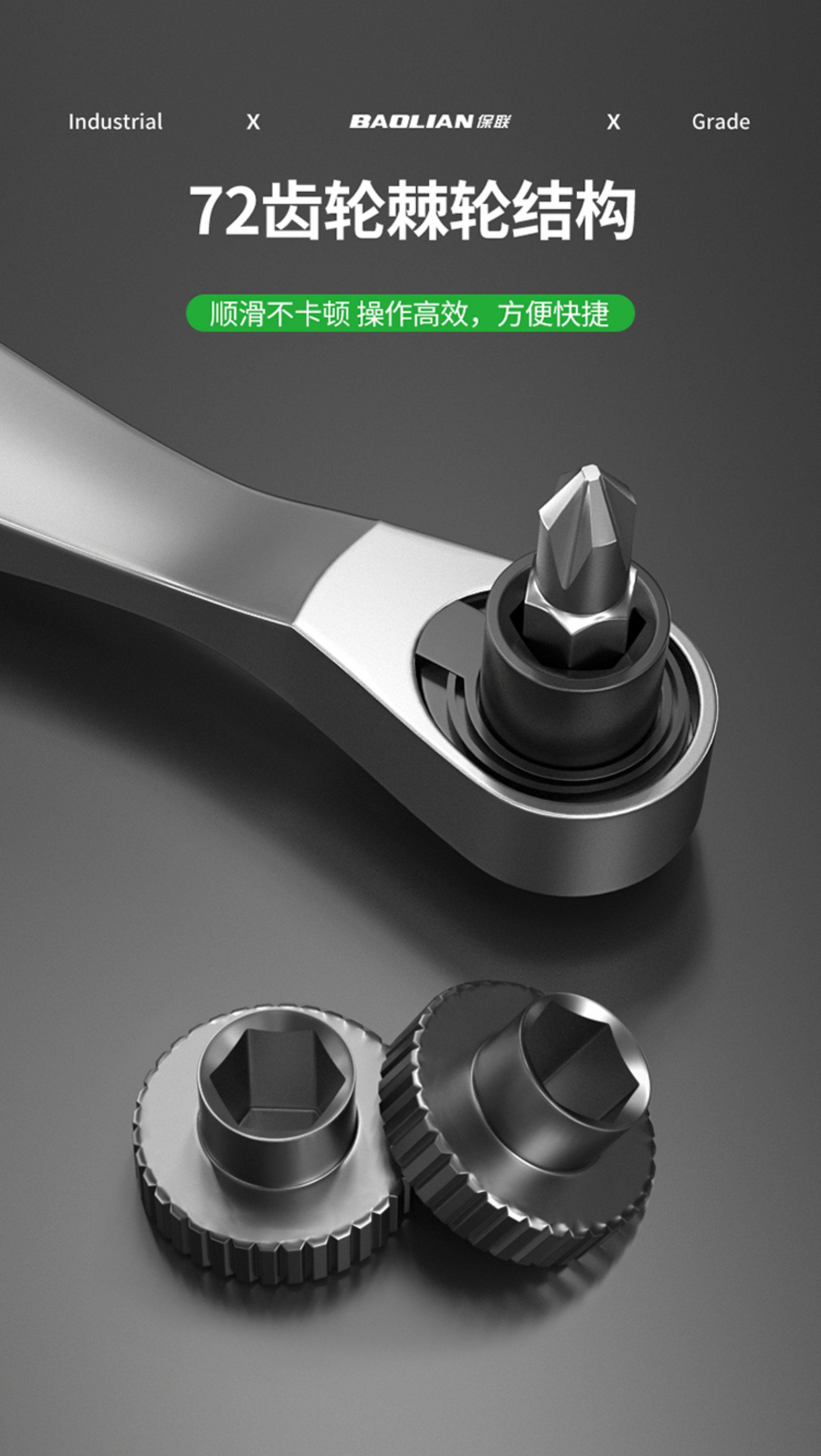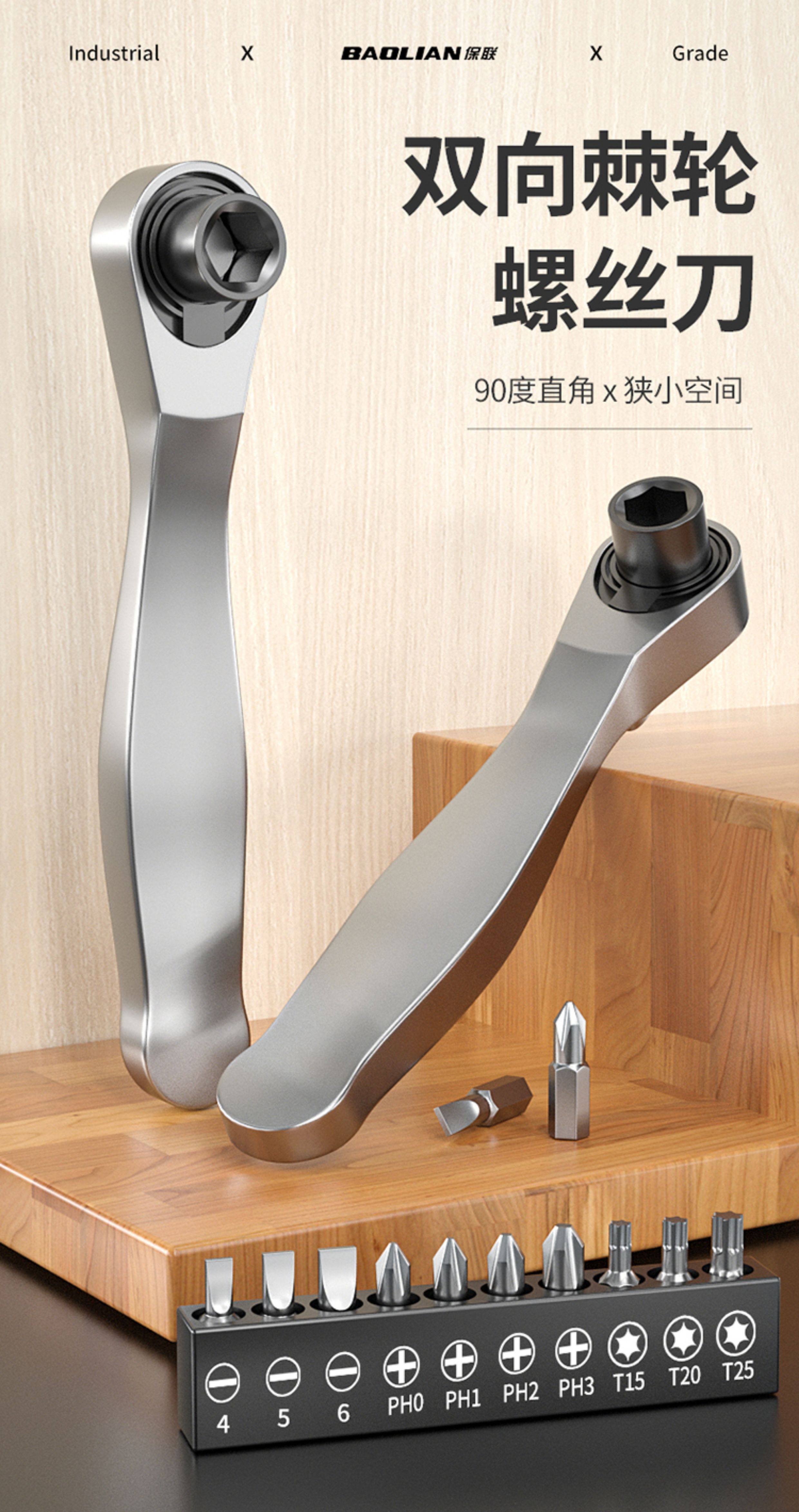 保联迷你棘轮小飞扳手双向正反快速两用螺丝刀十字一字批头组套装