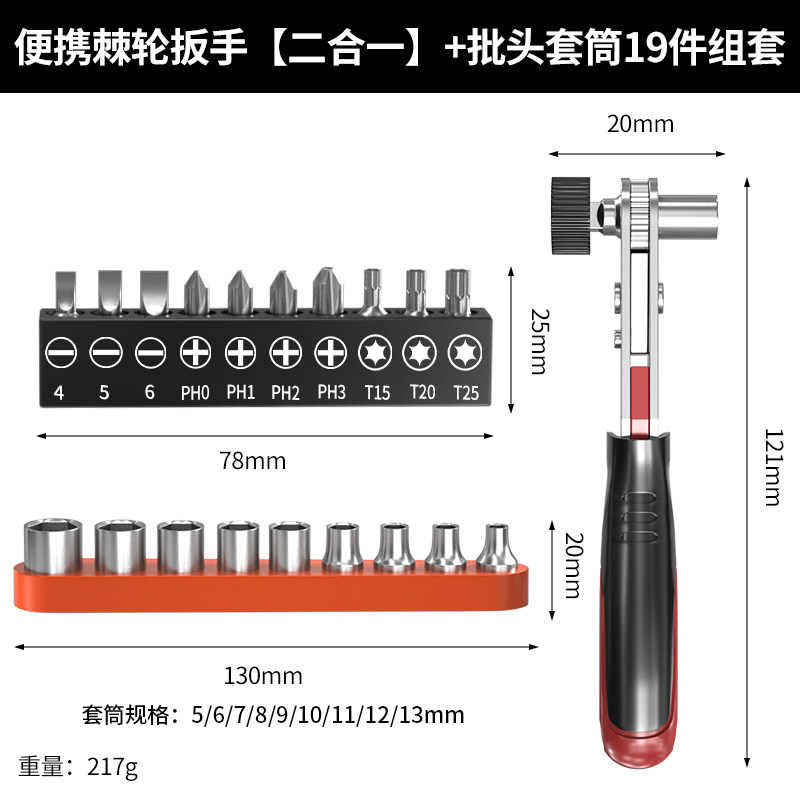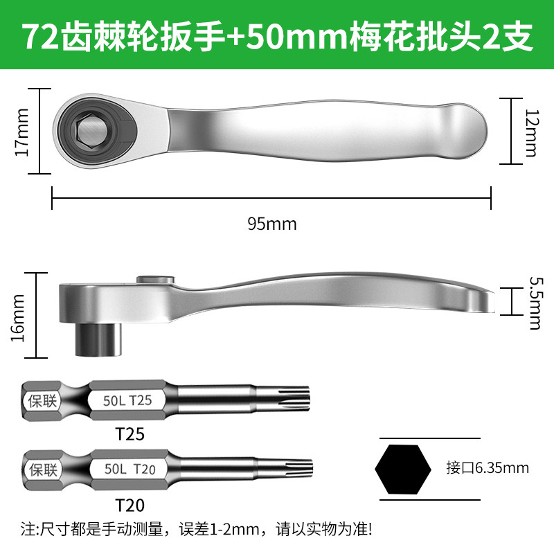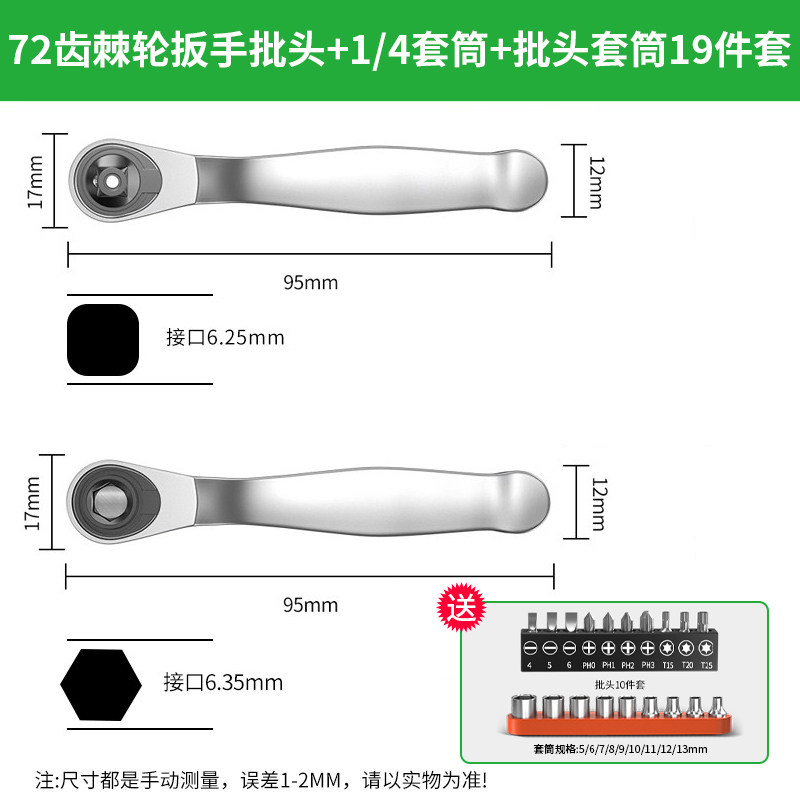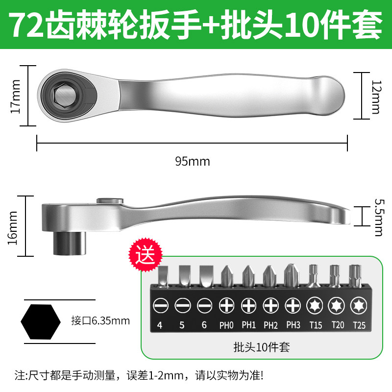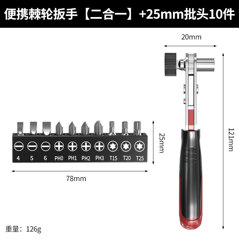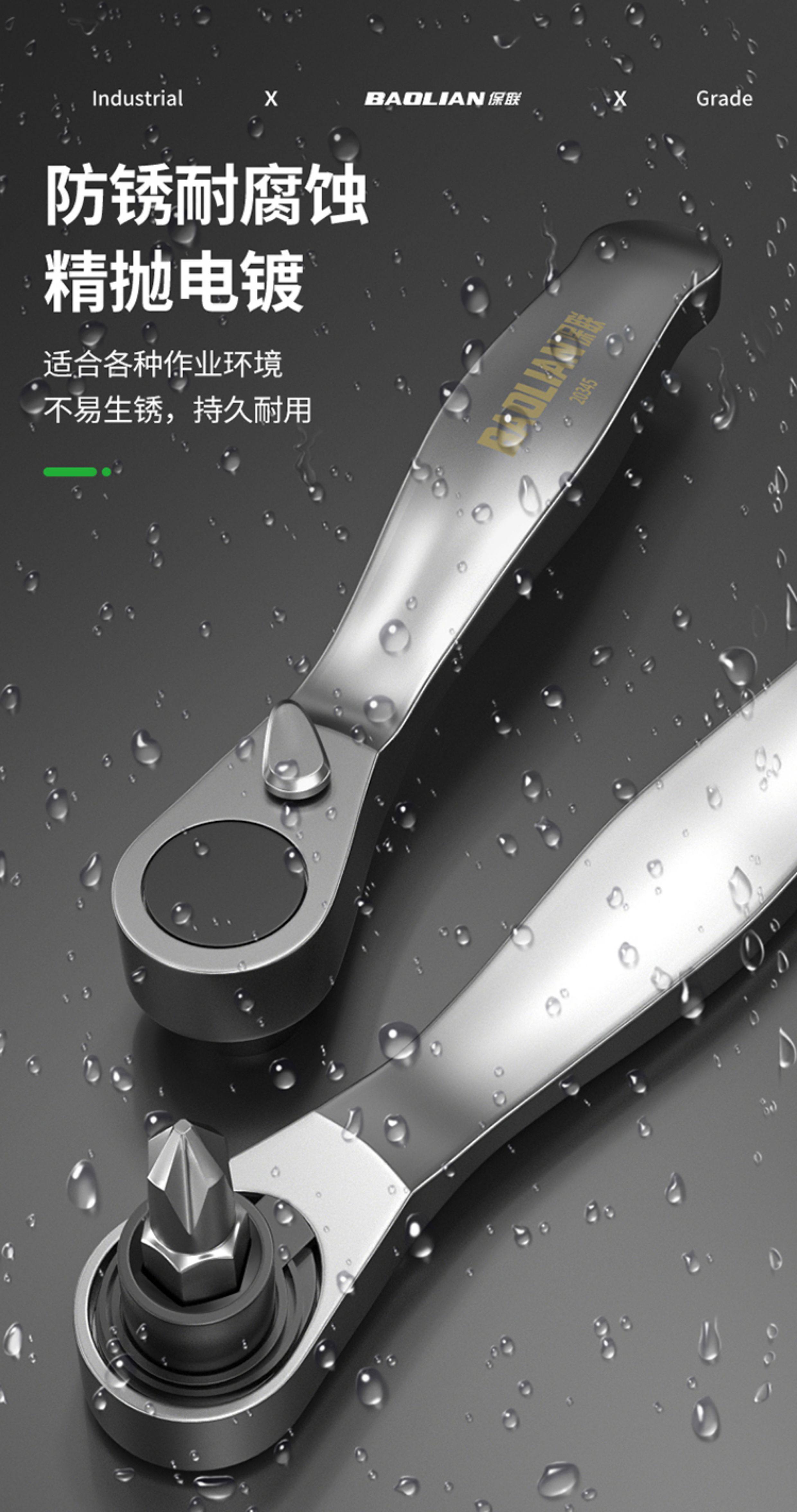 保联迷你棘轮小飞扳手双向正反快速两用螺丝刀十字一字批头组套装